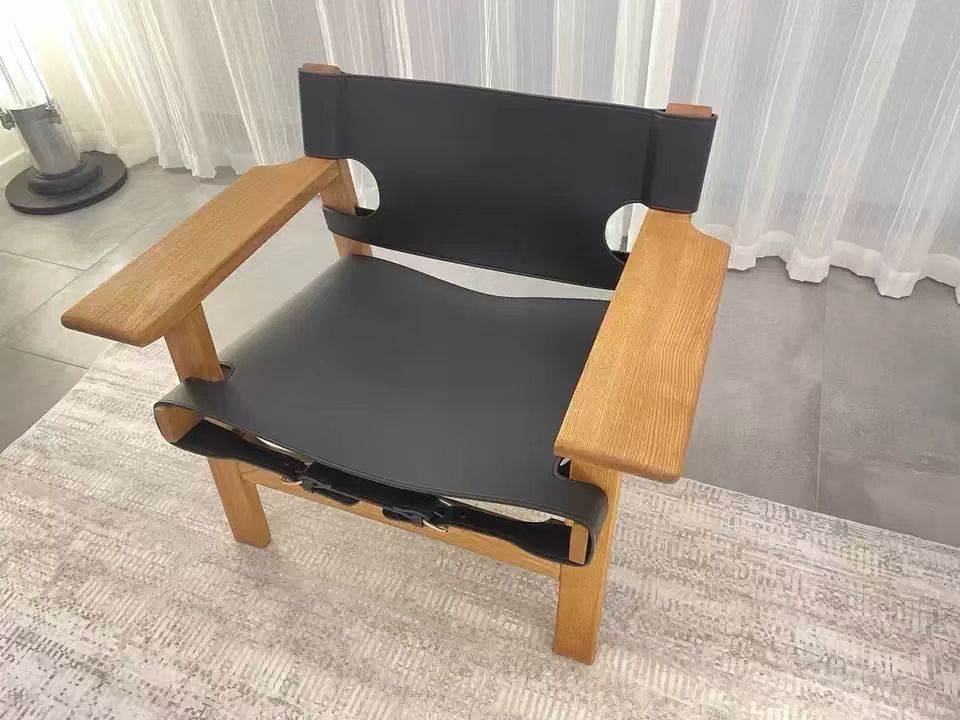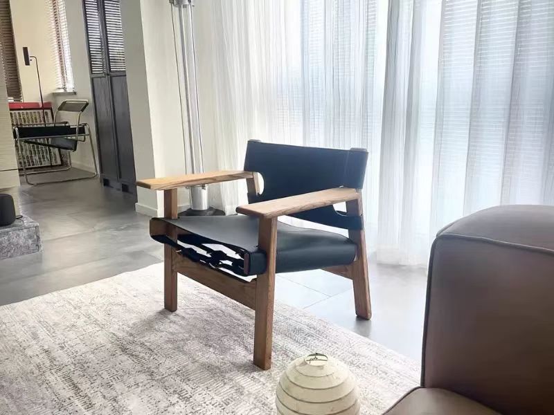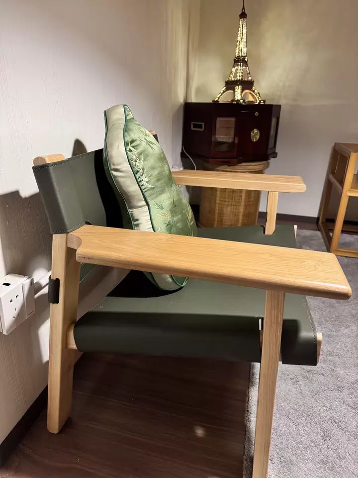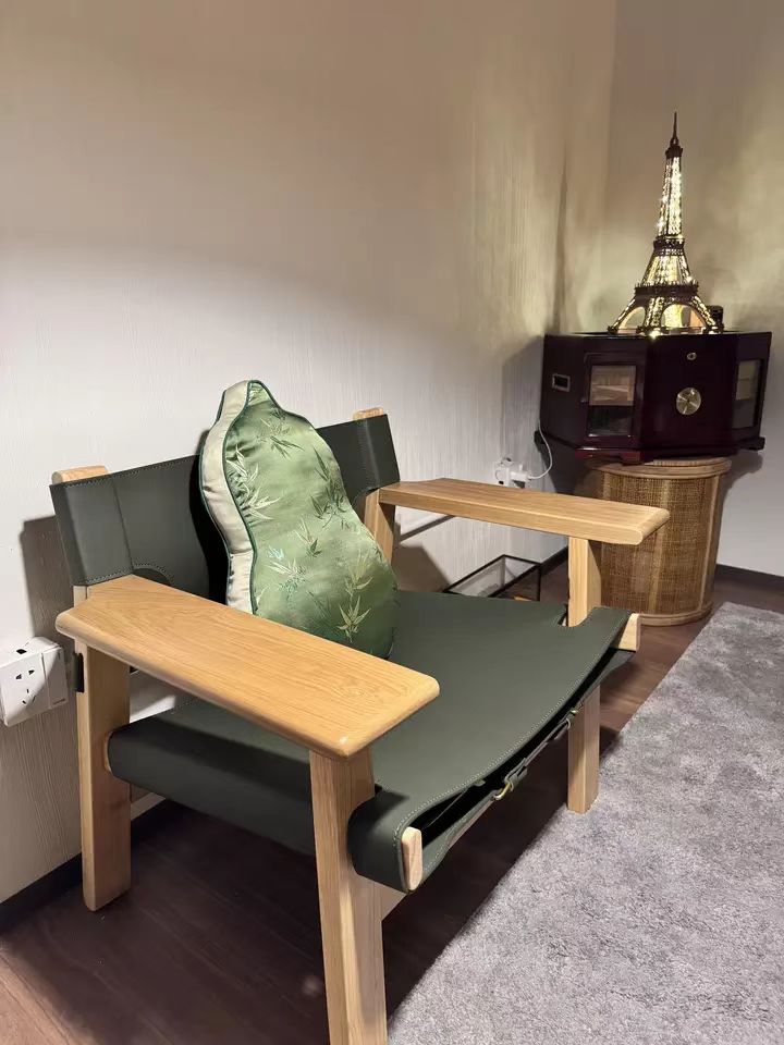 千匠一品 中古风格 白蜡木+马鞍皮 时尚简约休闲椅YL90-J