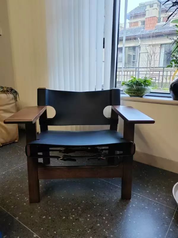 商品名称:千匠一品 中古风格 白蜡木+马鞍皮 时尚简约休闲椅YL90-J