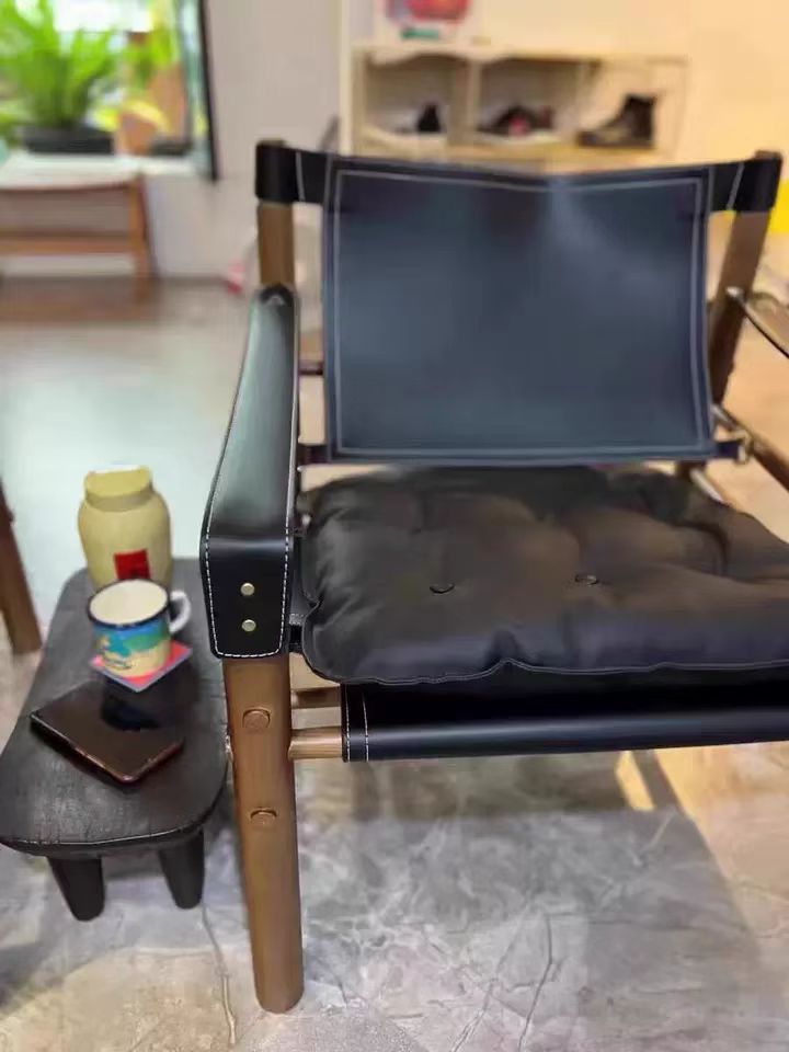 商品名称:千匠一品 中古风格 白蜡木+马鞍皮 时尚简约休闲椅YL91-J