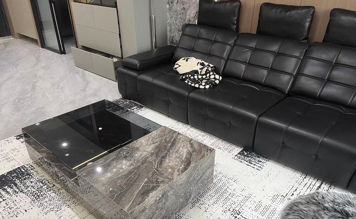 放在客厅特别显档次。岩板材质耐用又容易清洁,使用起来非常方便。整体质感很好,和家里的装修风格很搭。