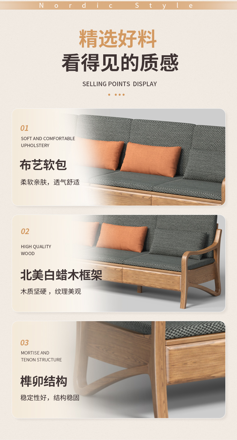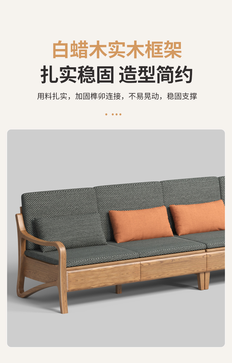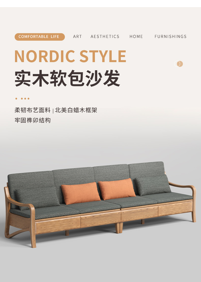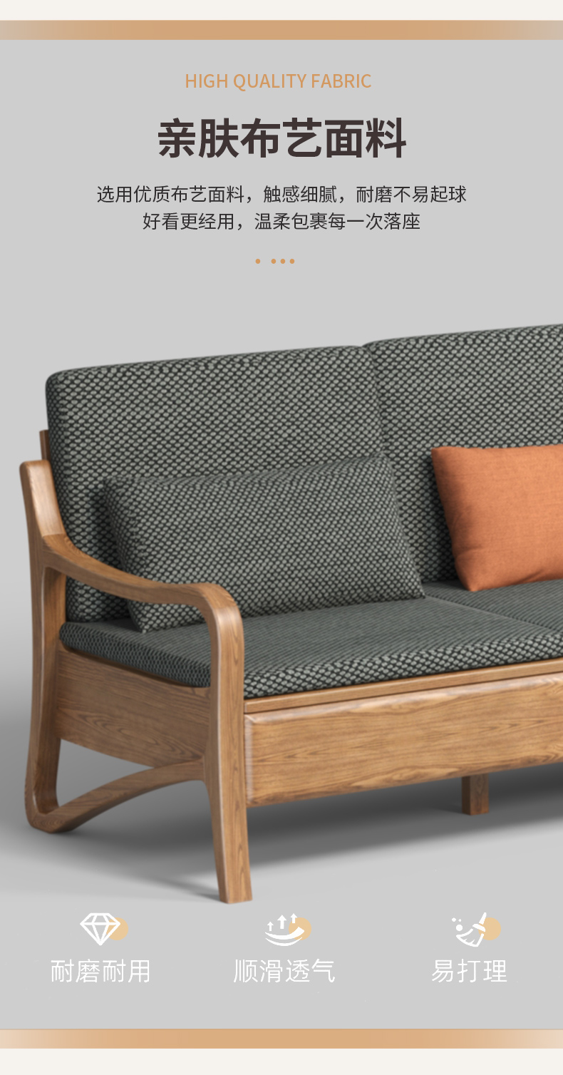 千匠一品 北欧风格 布艺面料+北美白蜡木+高密度海绵 时尚大气沙发W822-J