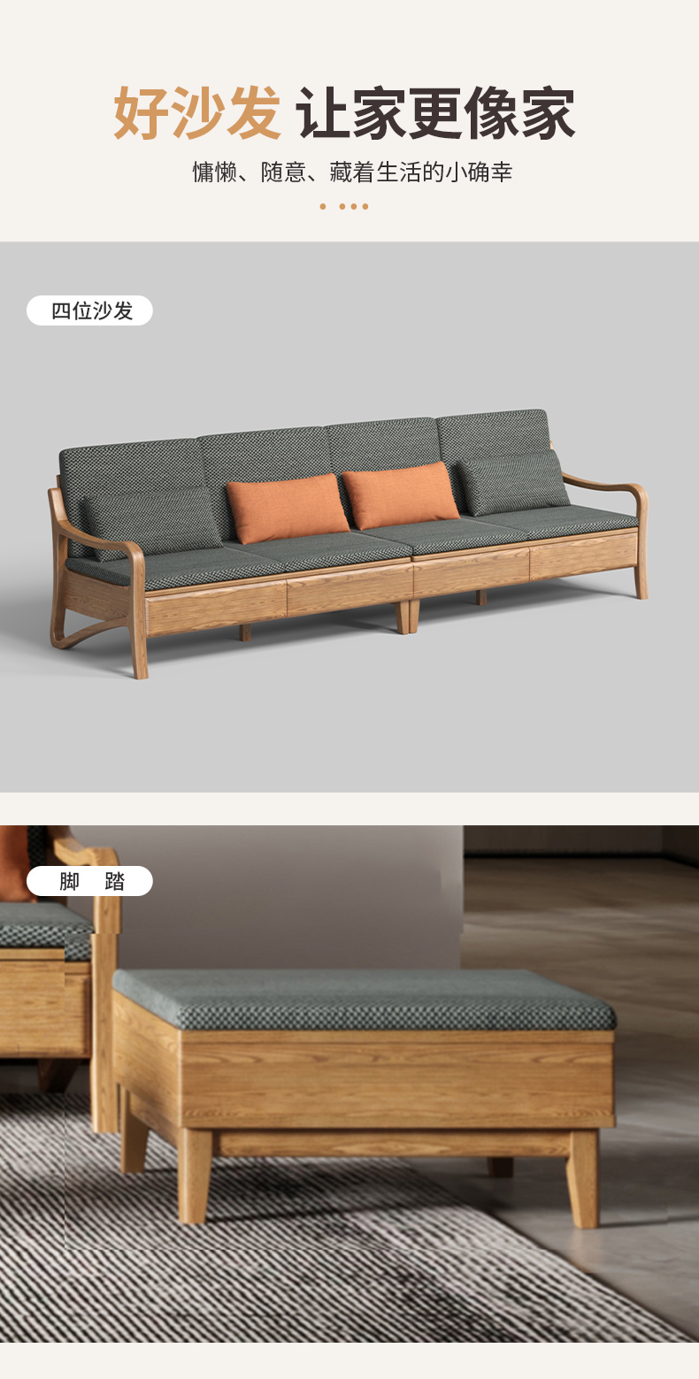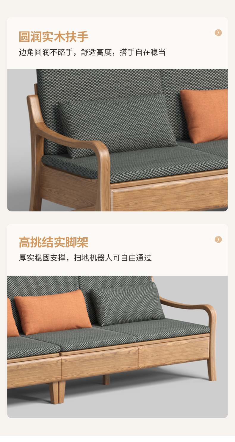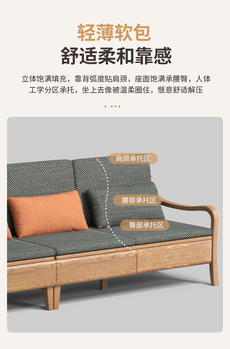 千匠一品 北欧风格 布艺面料+北美白蜡木+高密度海绵 时尚大气沙发W822-J