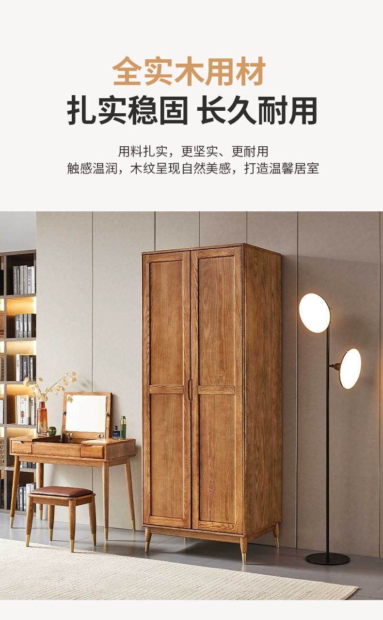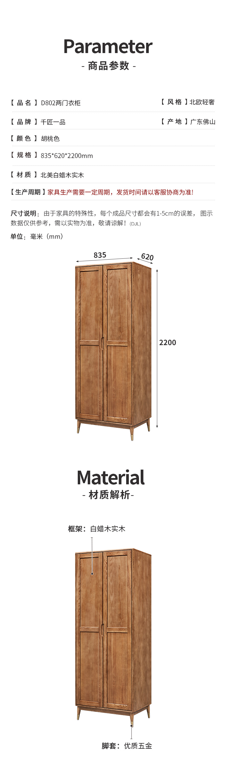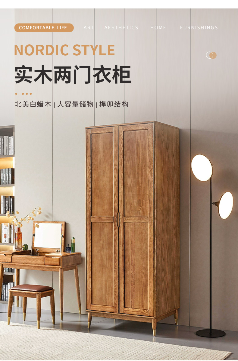 商品名称:千匠一品 北欧风格 北美白蜡木实木 时尚大气两门衣柜D802-J