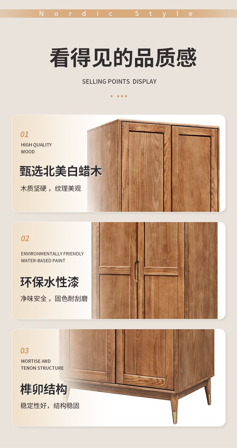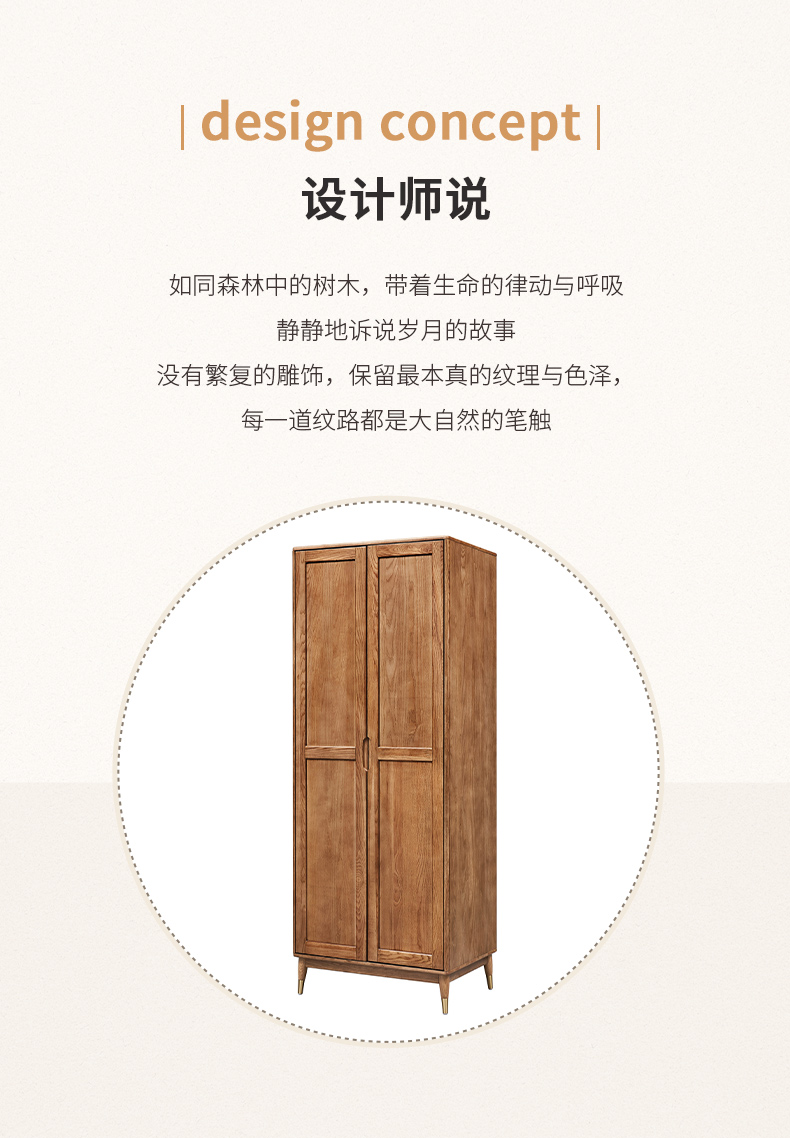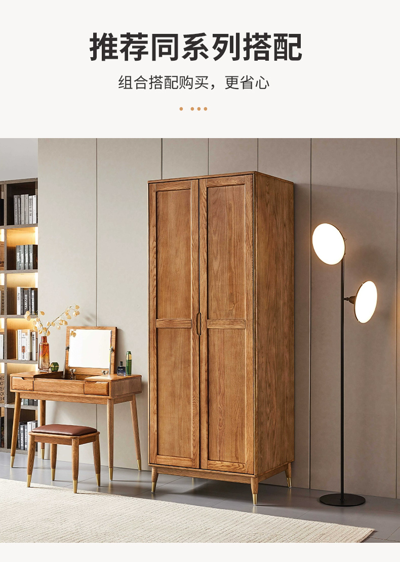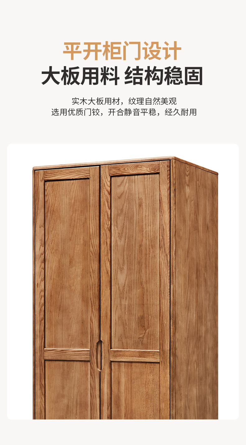 商品名称:千匠一品 北欧风格 北美白蜡木实木 时尚大气两门衣柜D802-J