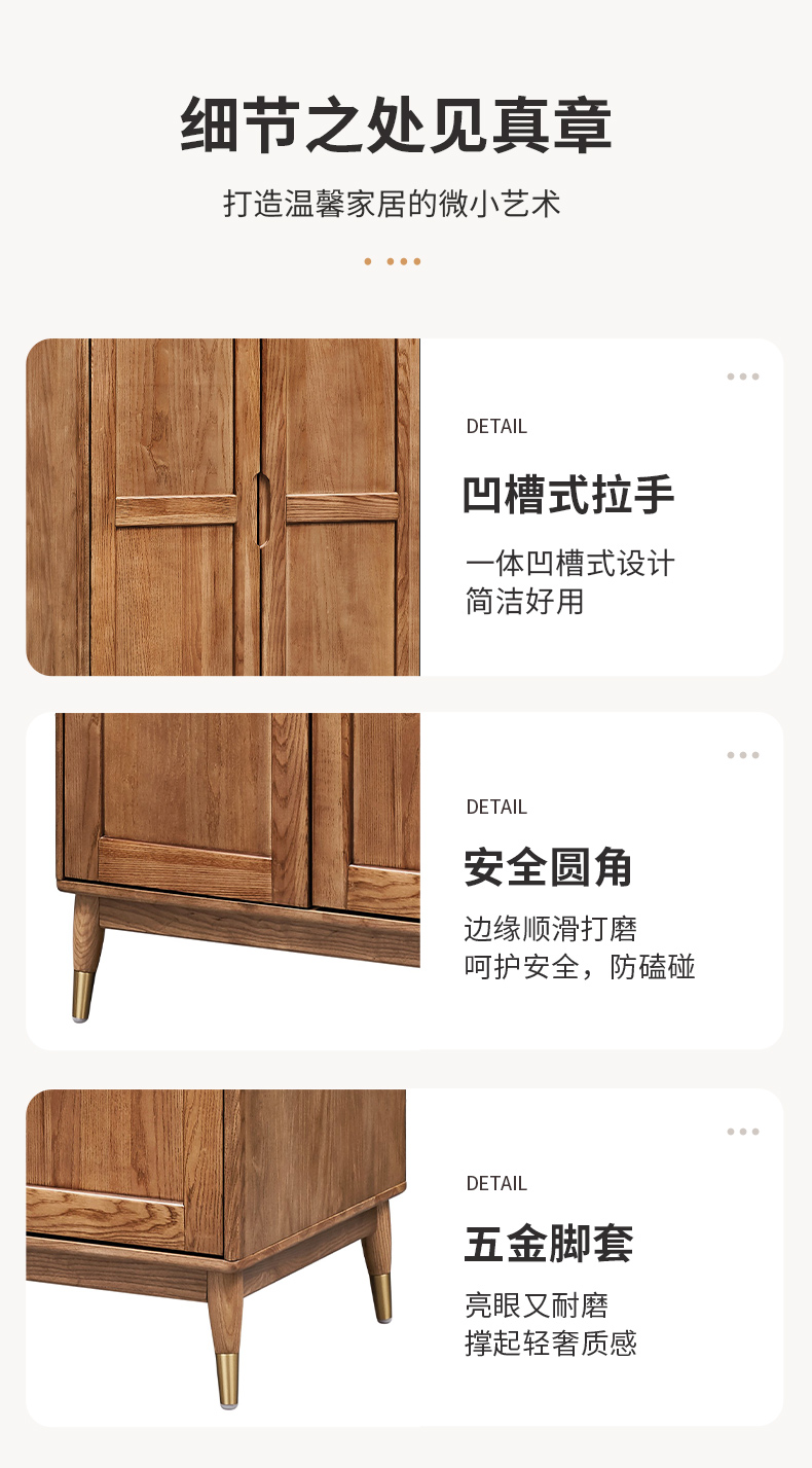 千匠一品 北欧风格 北美白蜡木实木 时尚大气三门衣柜D803-J