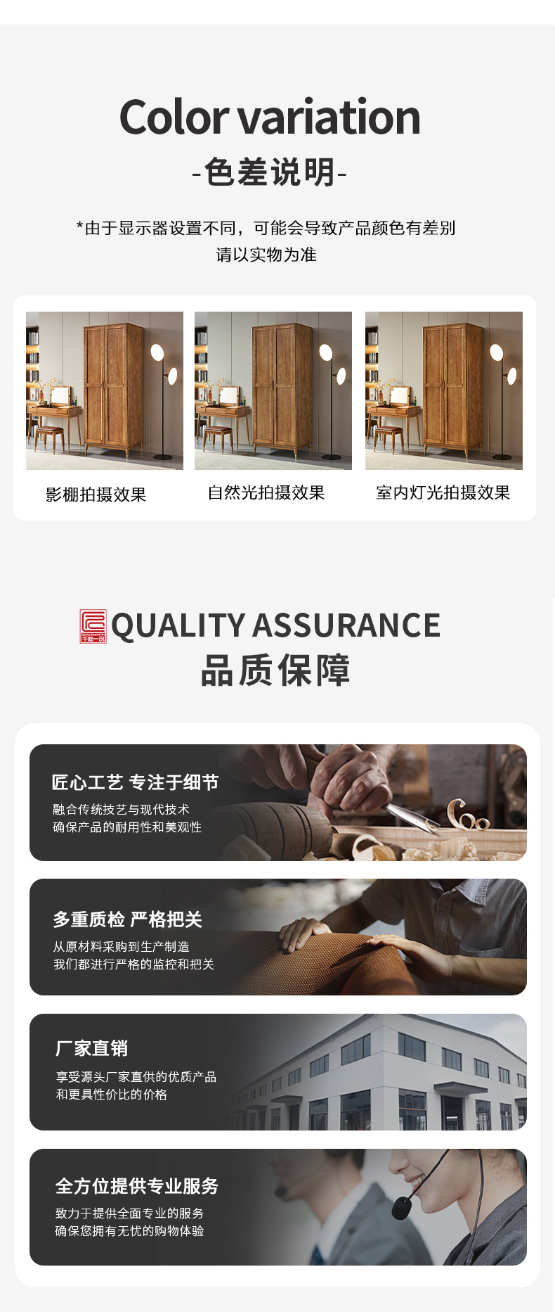 衣柜质量很好,做工精细,背板牢固,板材结实,款式美观大方。