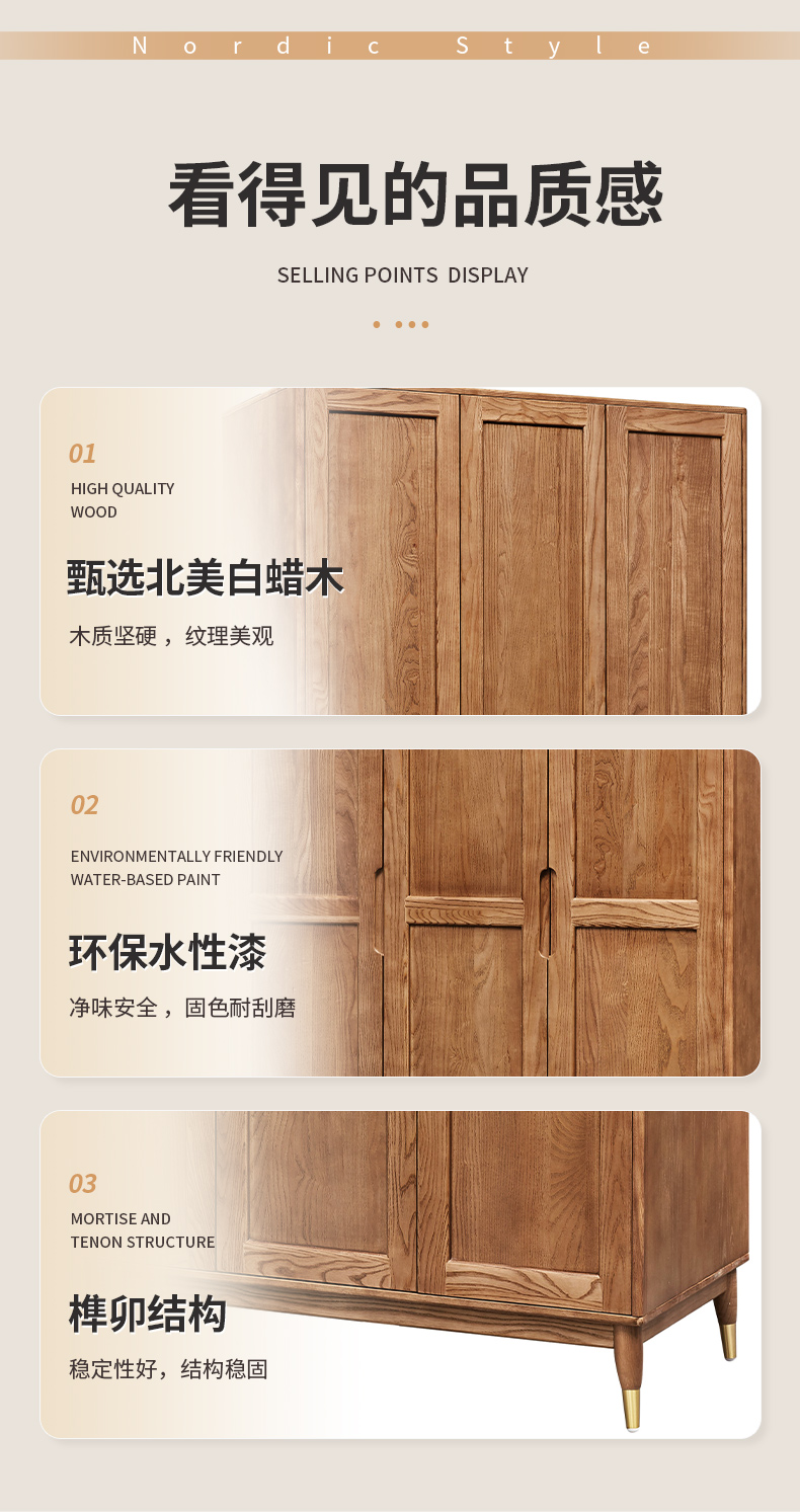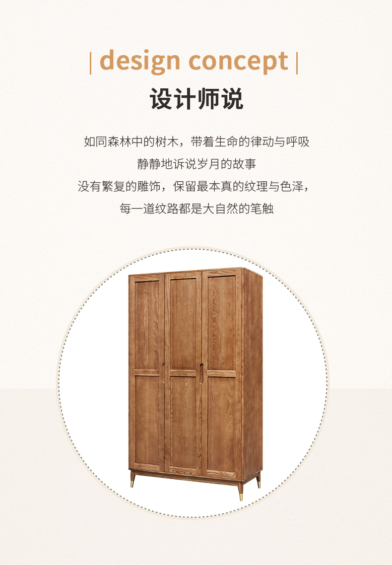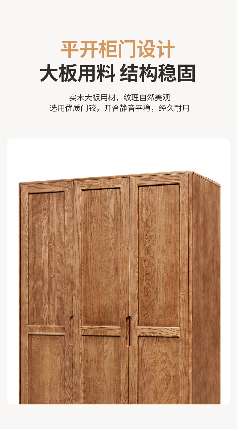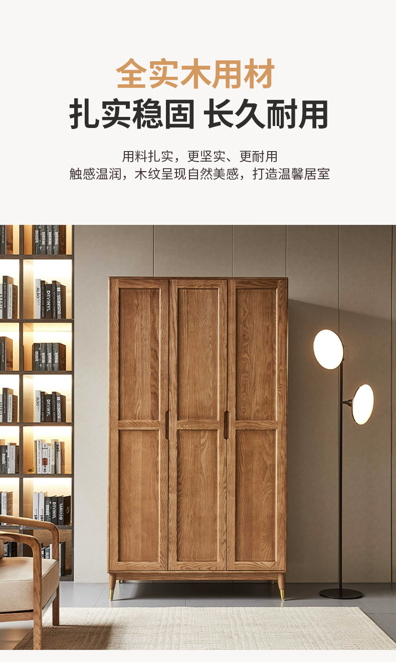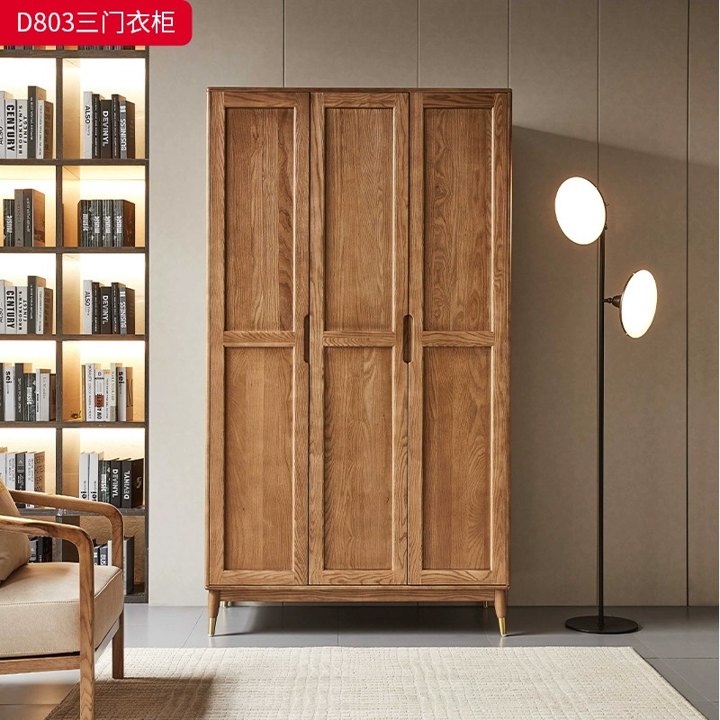 千匠一品 北欧风格 北美白蜡木实木 时尚大气三门衣柜D803-J