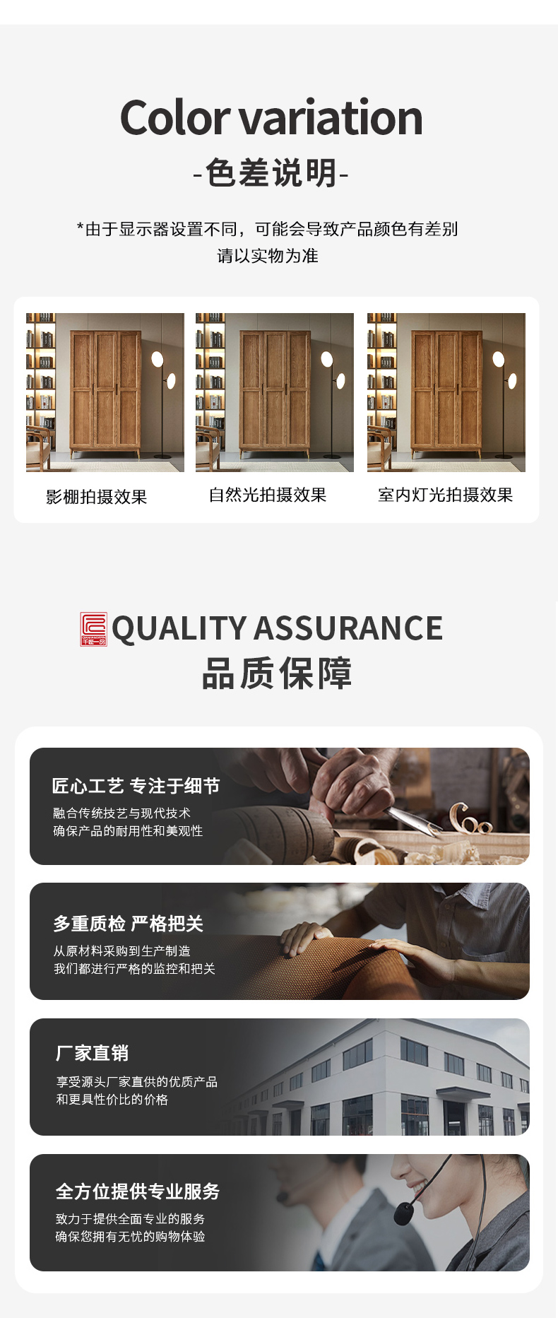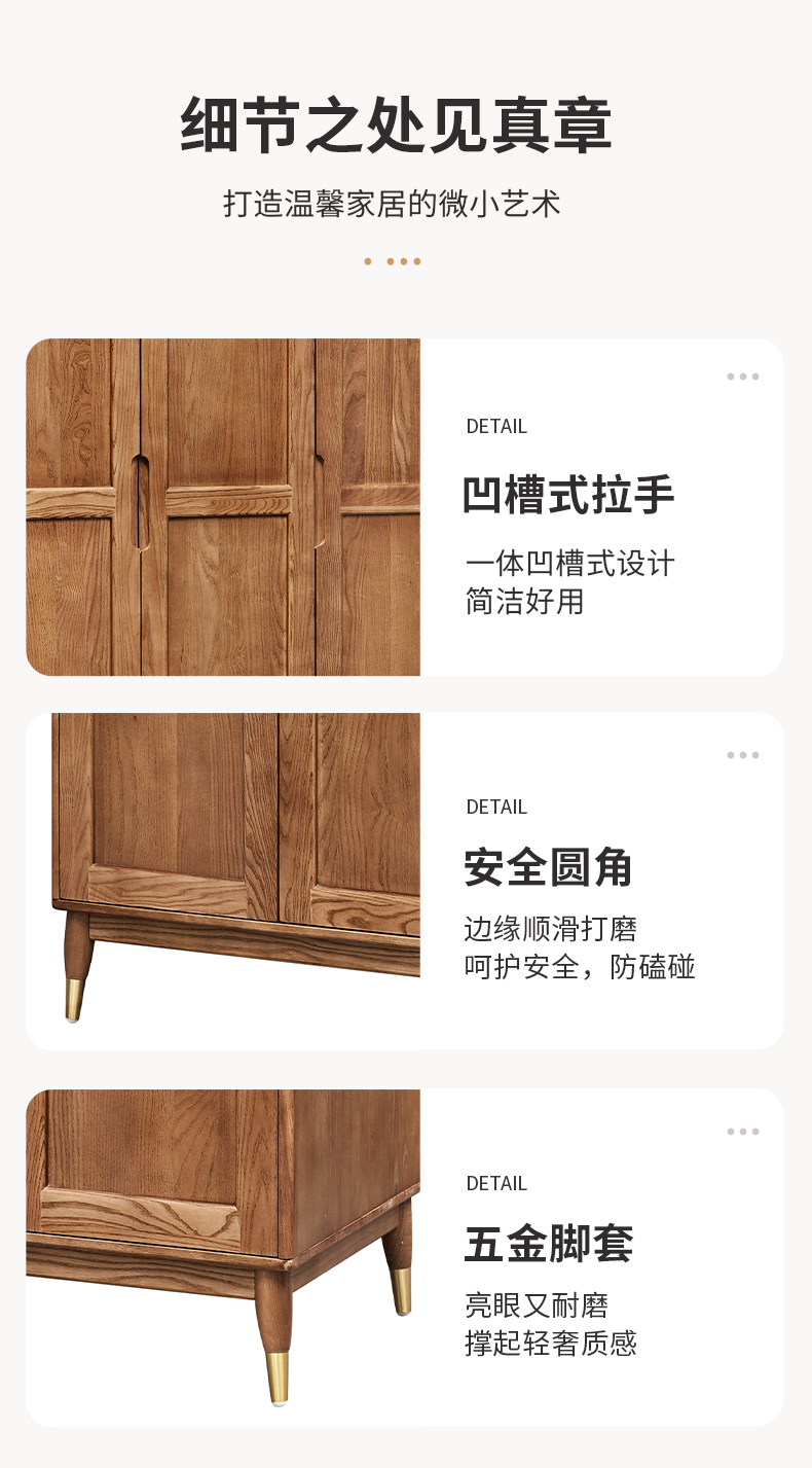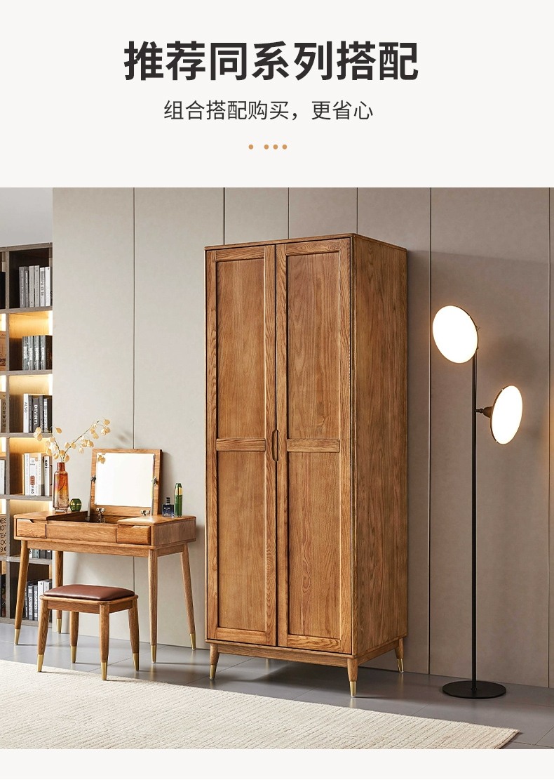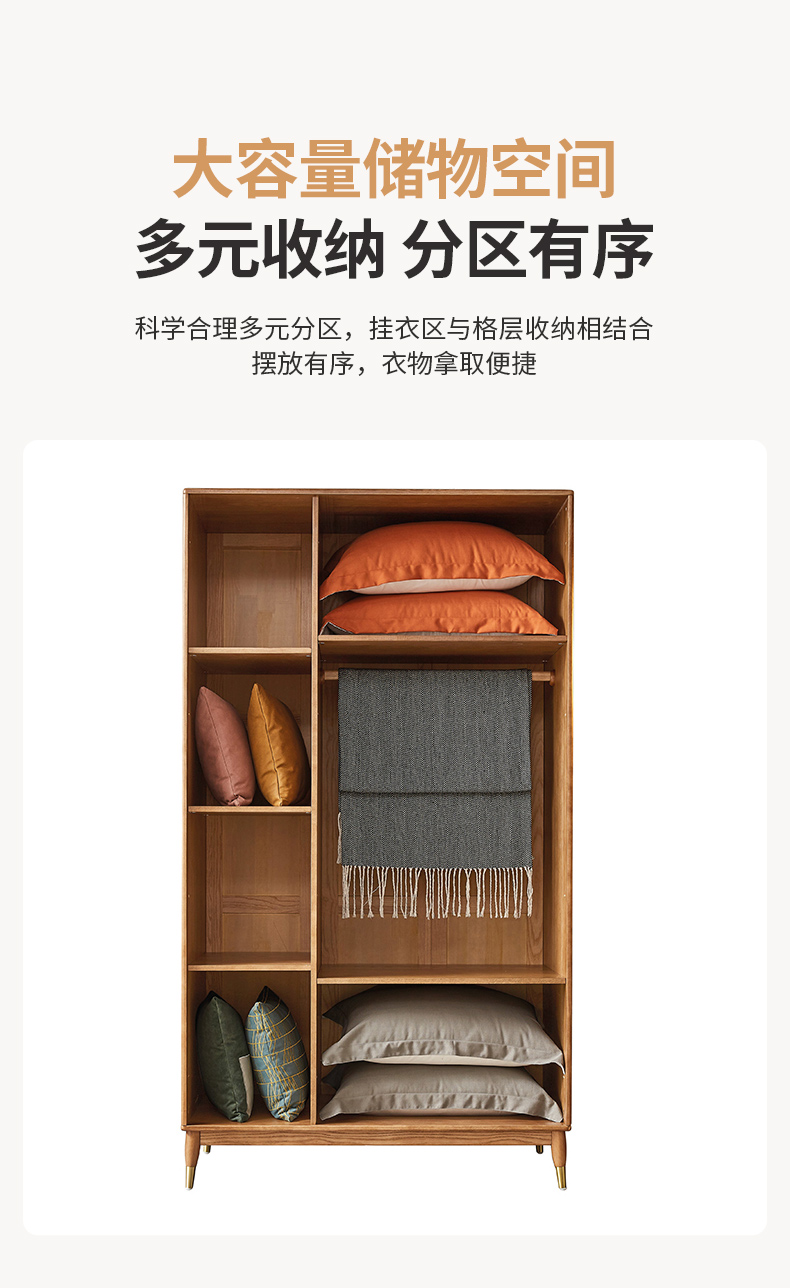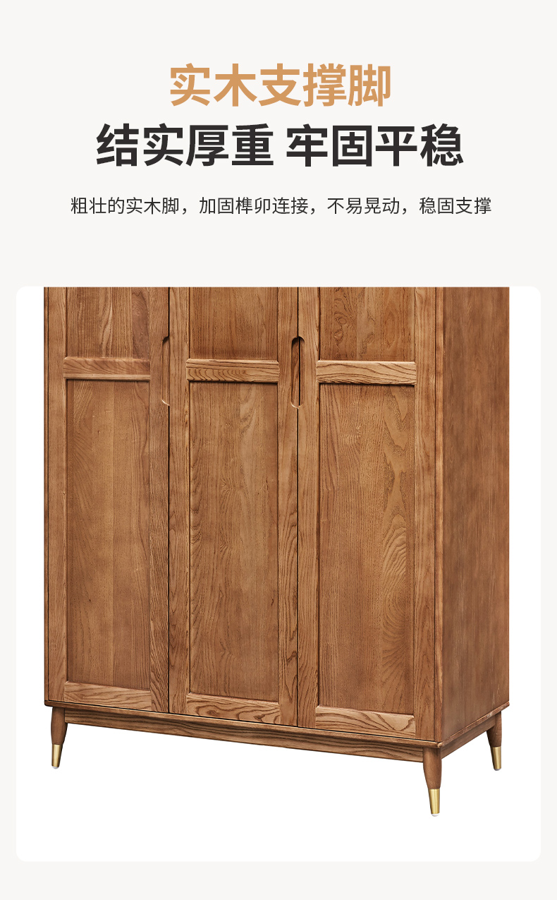 千匠一品 北欧风格 北美白蜡木实木 时尚大气三门衣柜D803-J