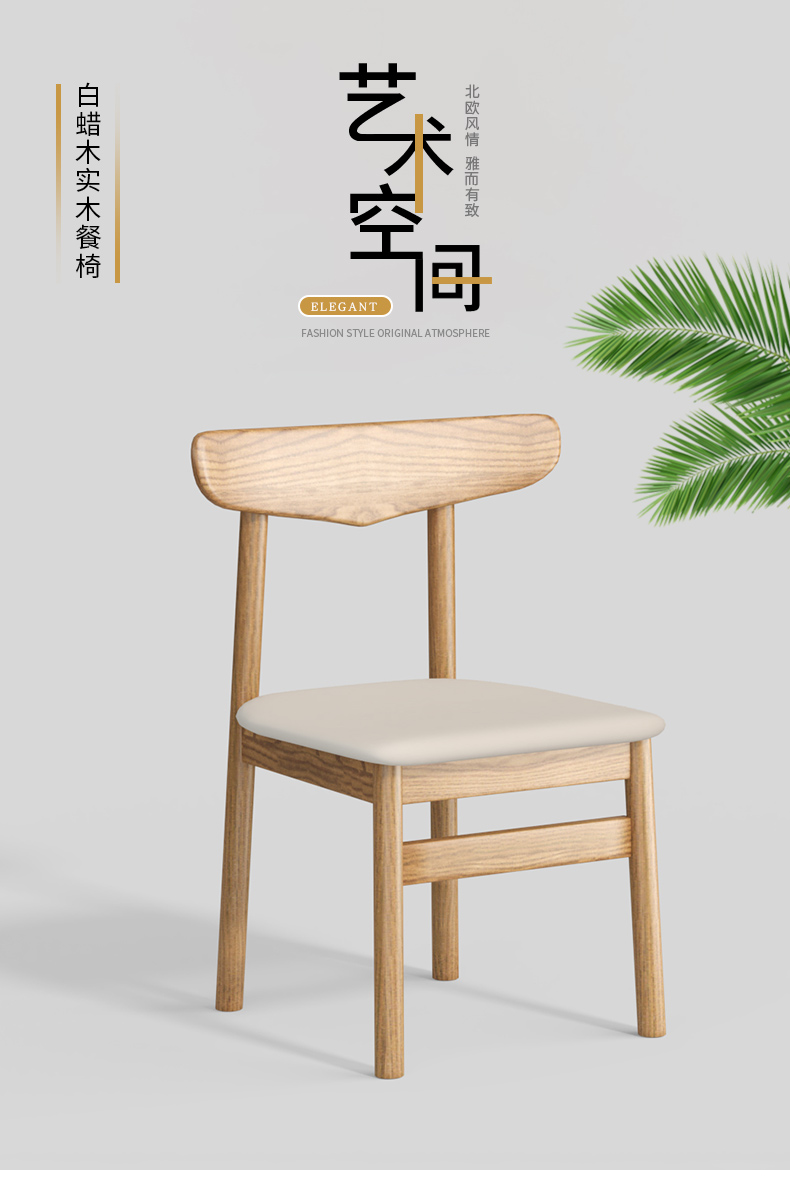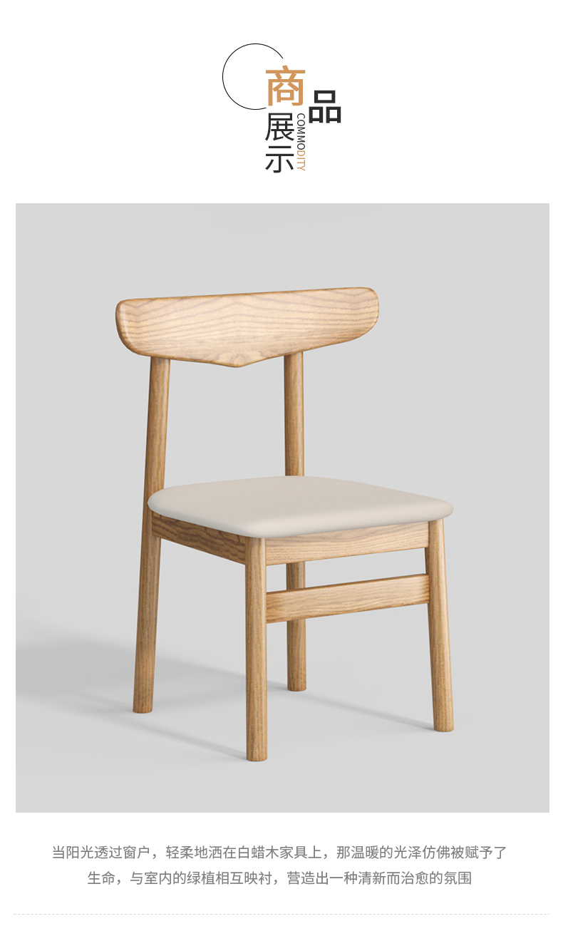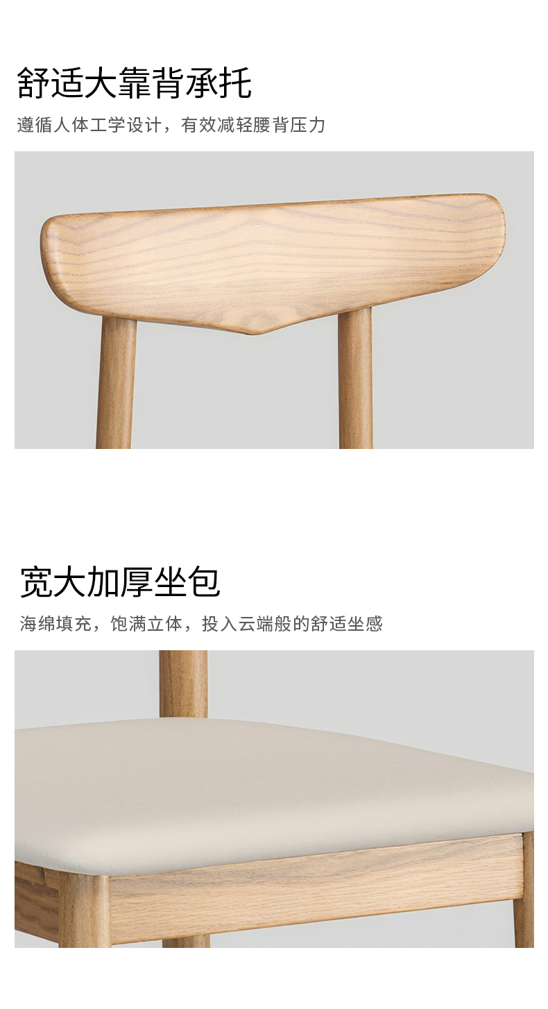 商品名称:千匠一品 北欧风格 北美白蜡木+皮艺面料+高密度海绵 时尚大气餐椅P816-1-L