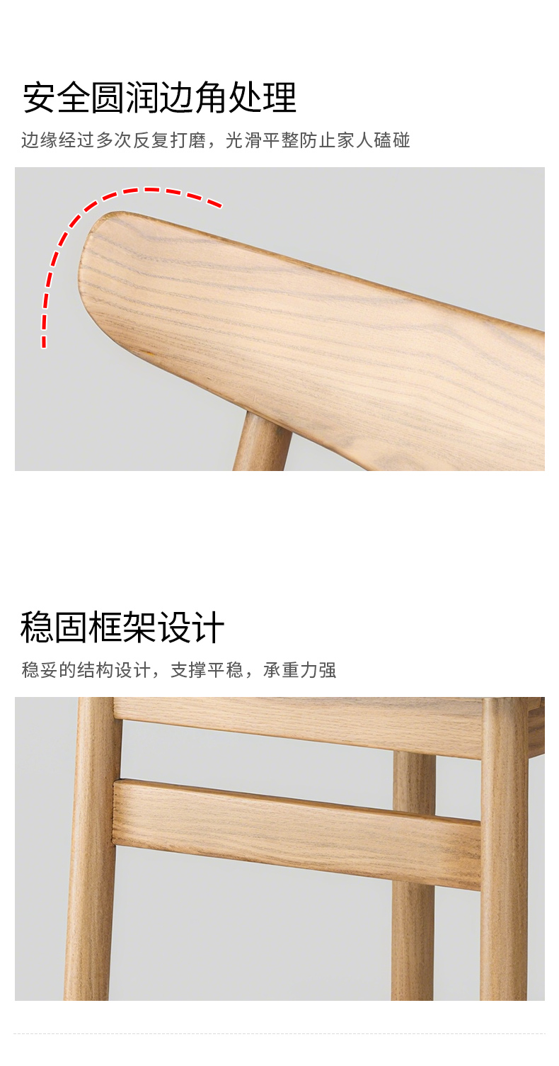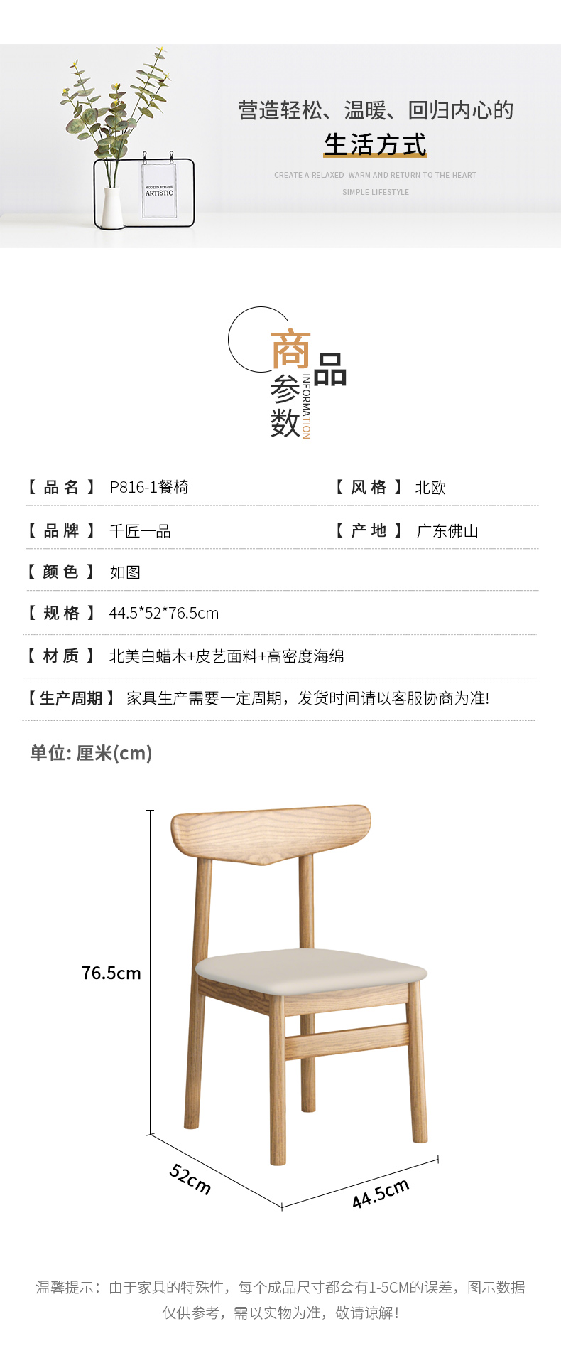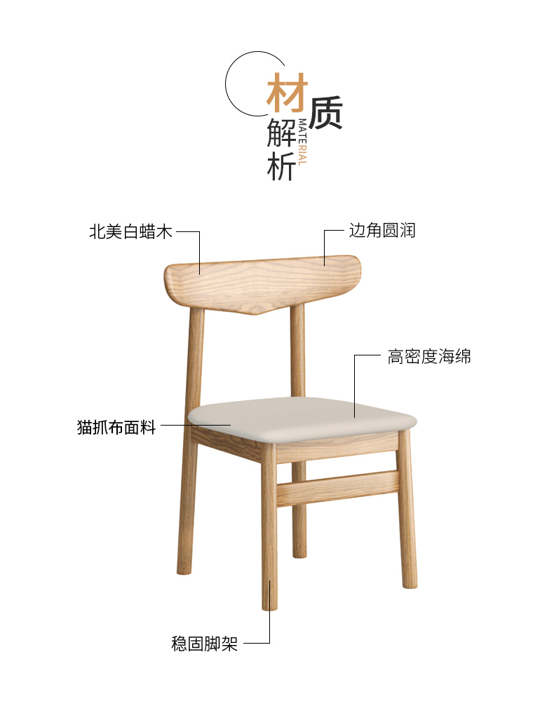 商品名称:千匠一品 北欧风格 北美白蜡木+皮艺面料+高密度海绵 时尚大气餐椅P816-1-L