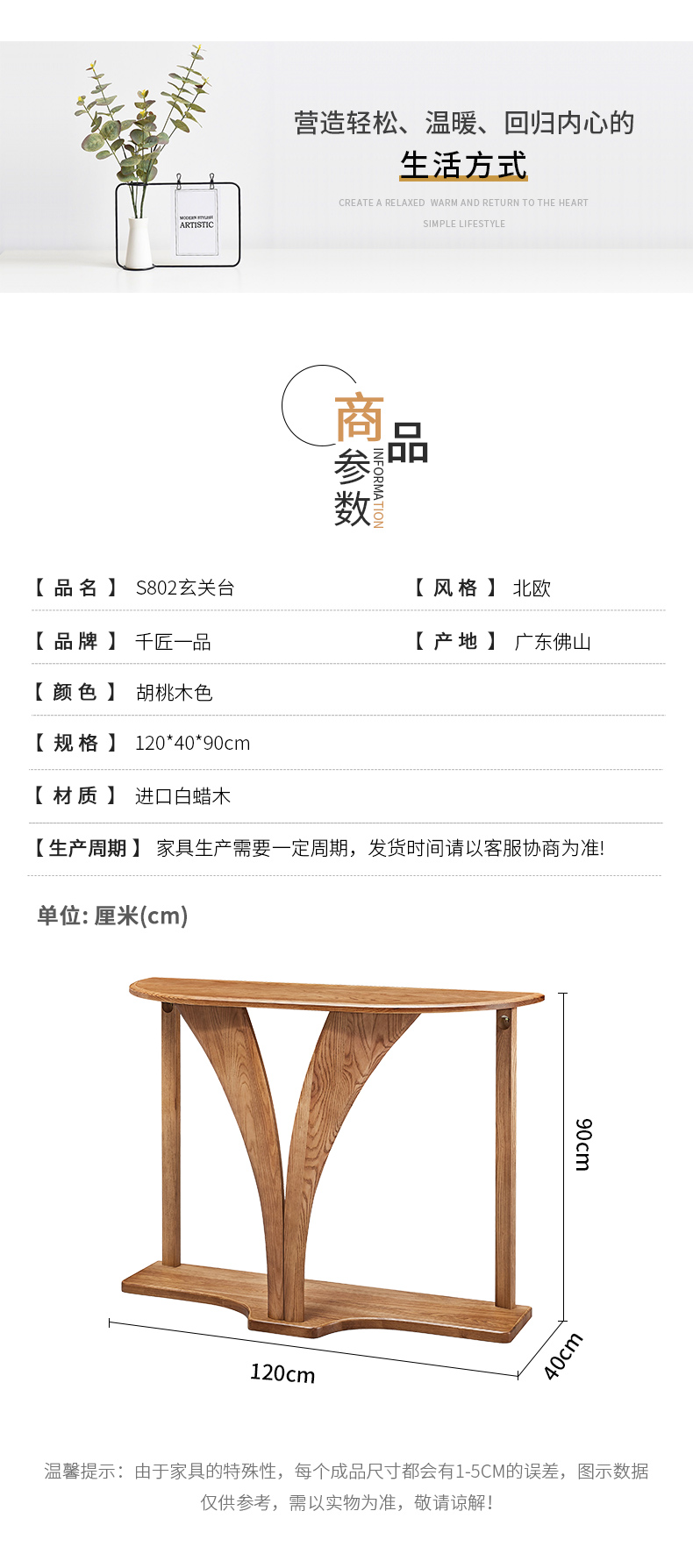 商品名称:千匠一品 北欧风格 进口白蜡木 时尚大气玄关台S802-L