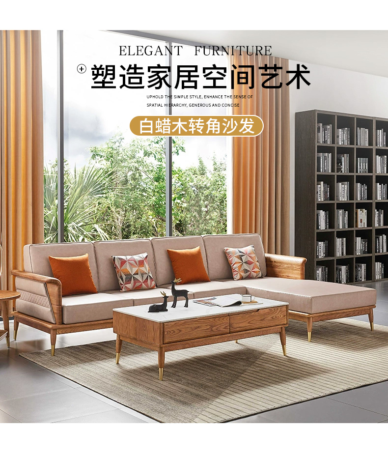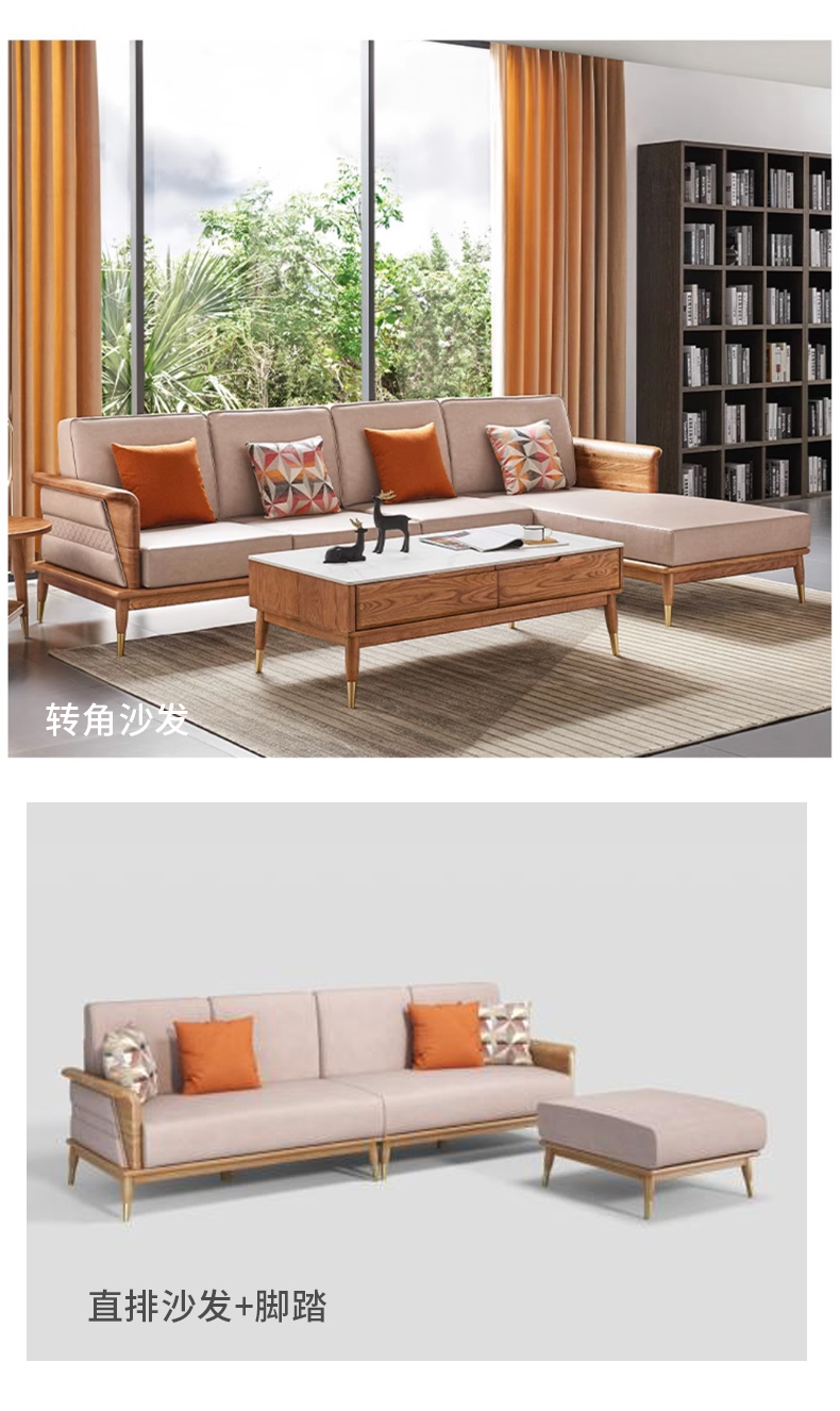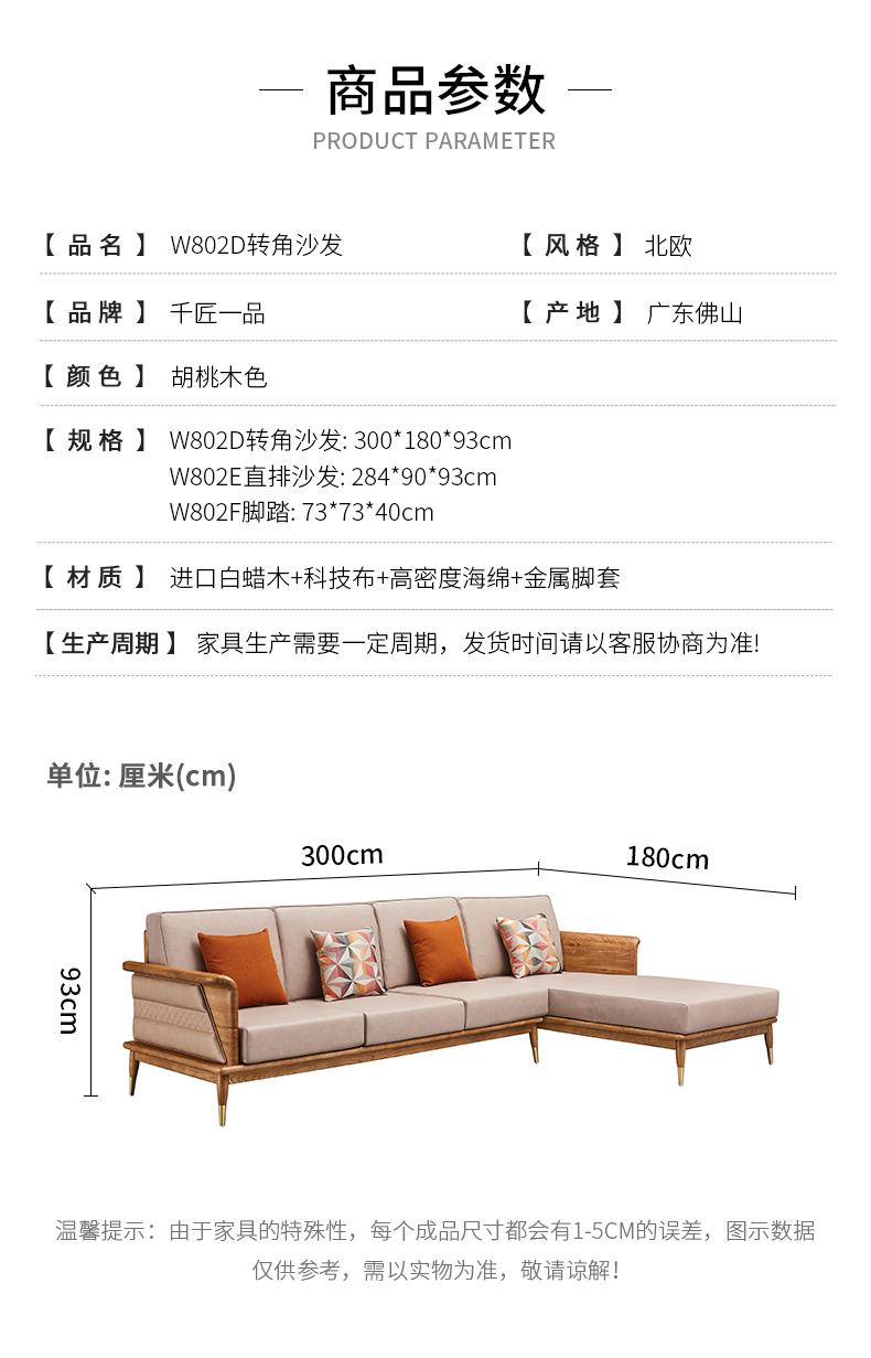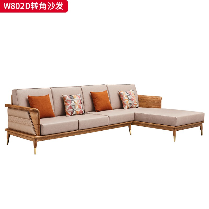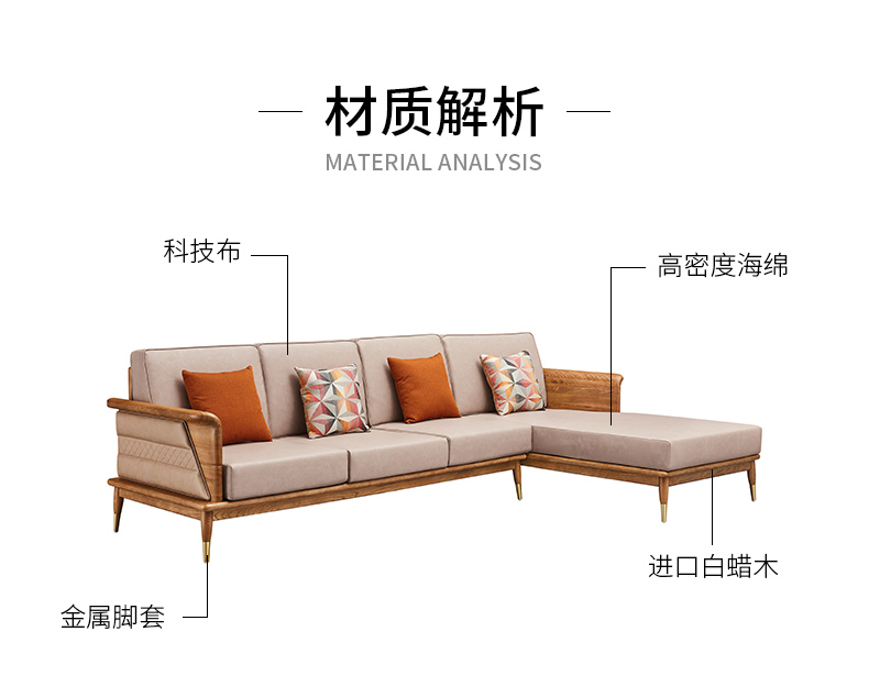 商品名称:千匠一品 北欧风格 进口白蜡木+科技布+高密度海绵+金属脚套 时尚大气转角沙发W802D-L