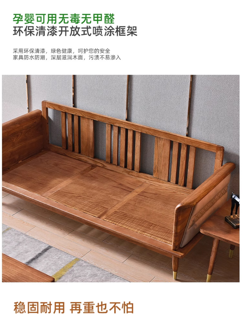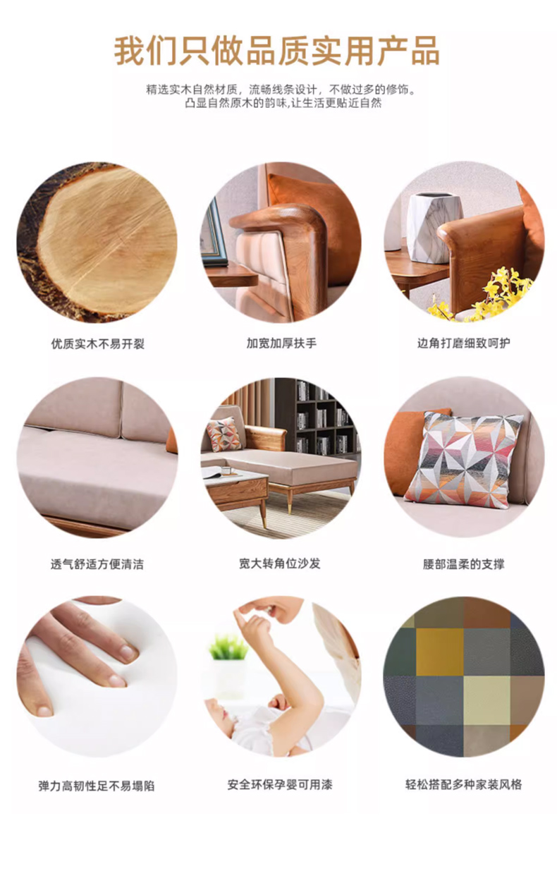 实木沙发大气好看,做工质量都很好,结实稳固,尺寸合适,没有气味