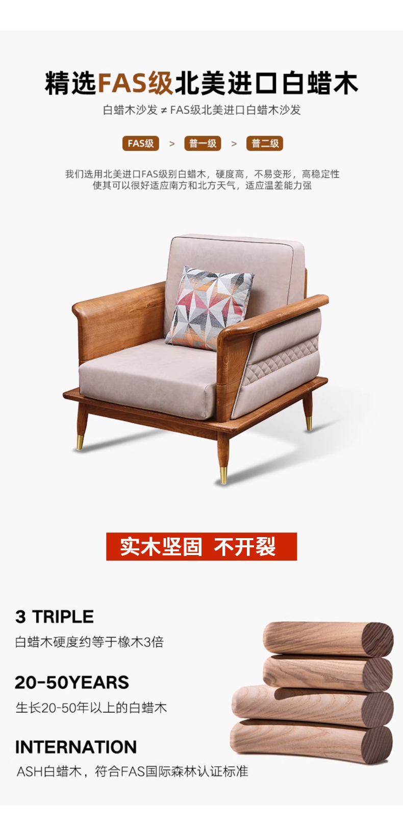 千匠一品 北欧风格 布艺面料+北美白蜡木+高密度海绵 时尚大气沙发W822-J