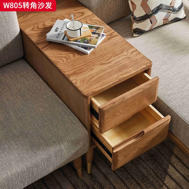 千匠一品 北欧风格 进口白蜡木+科技布+高密度海绵+金属脚套 时尚大气转角沙发W802D-L