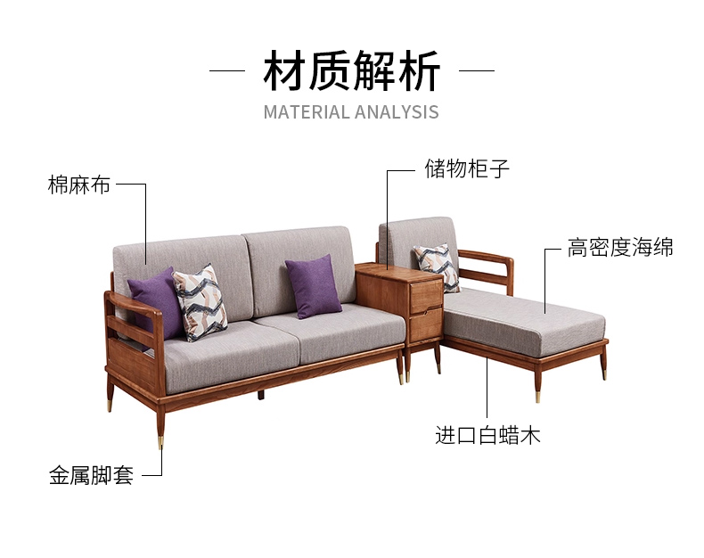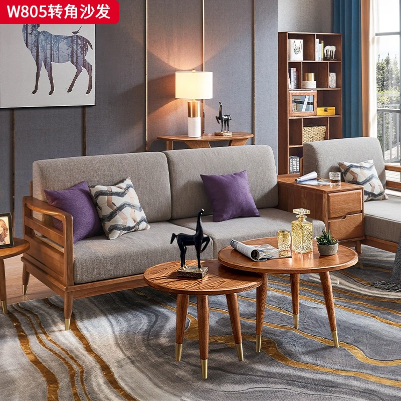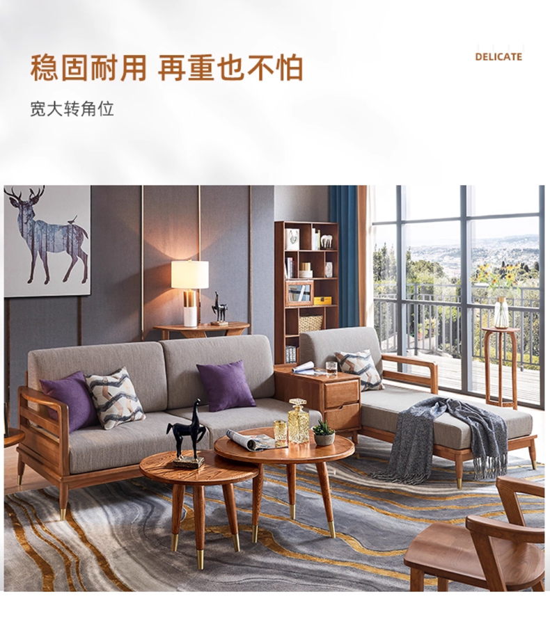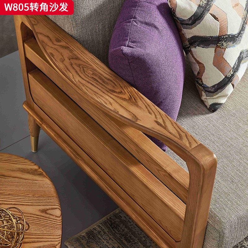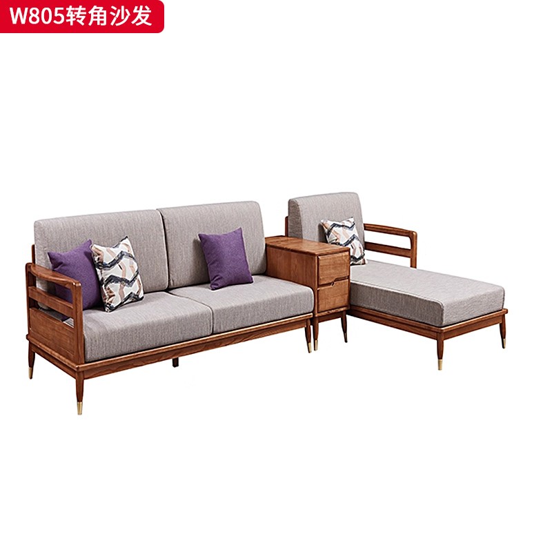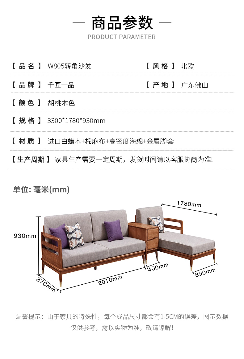 商品名称:千匠一品 北欧风格 进口白蜡木+棉麻布+高密度海绵+金属脚套 时尚大气转角沙发W805-L