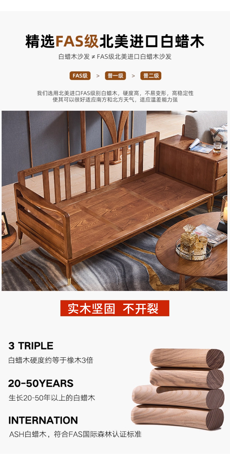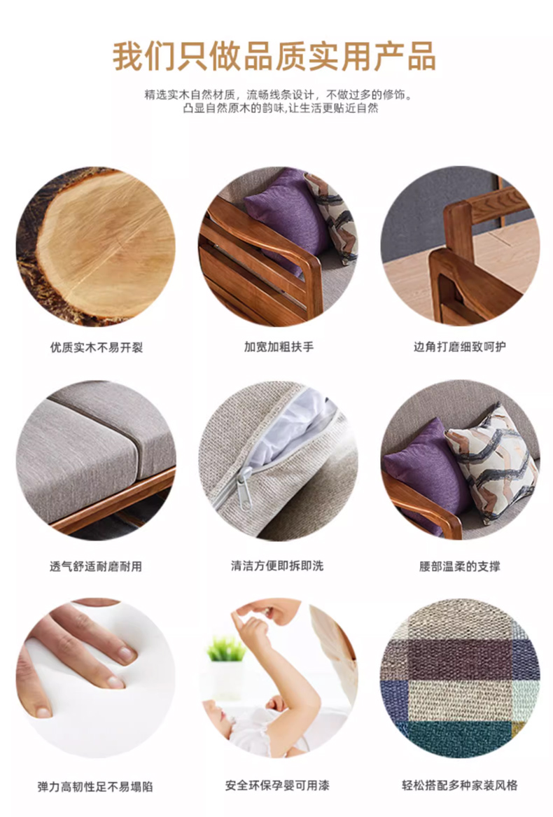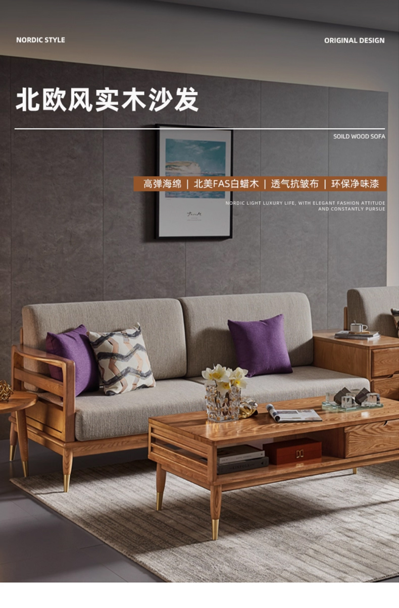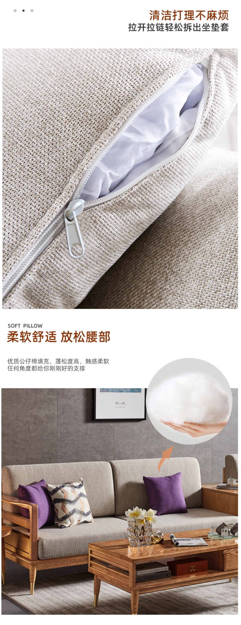 千匠一品 北欧风格 布艺面料+北美白蜡木+高密度海绵 时尚大气沙发W822-J