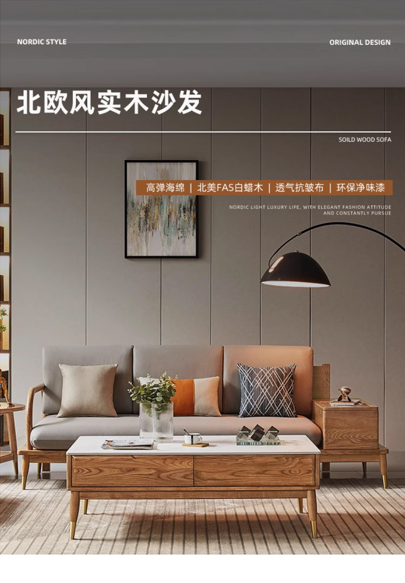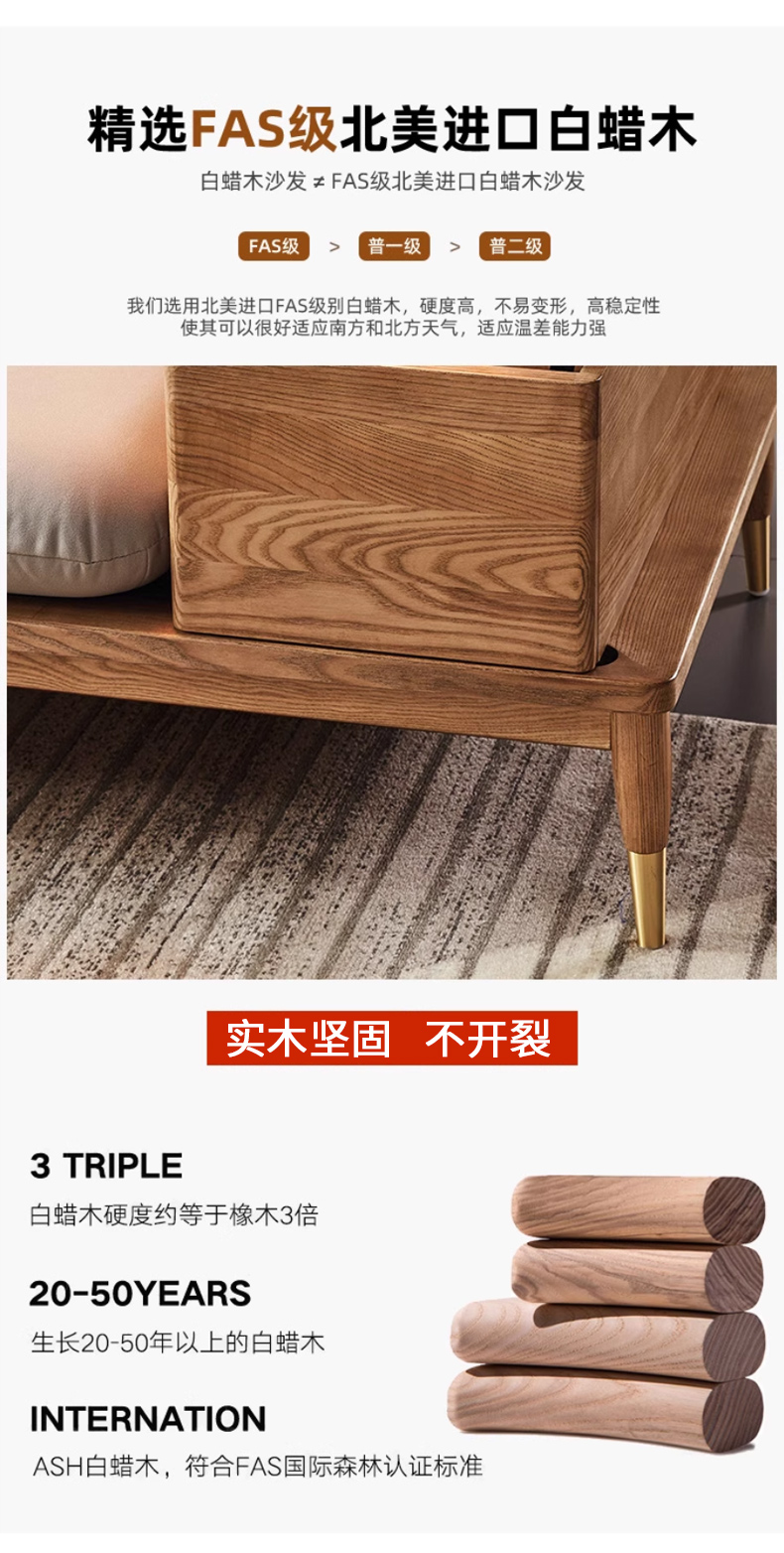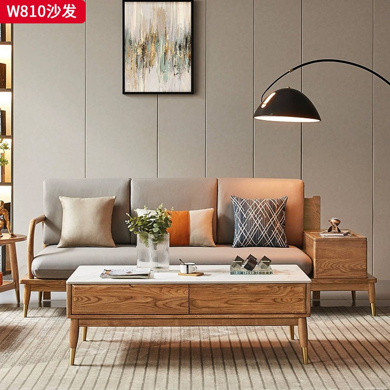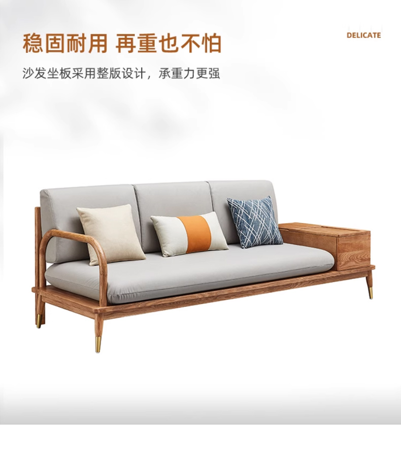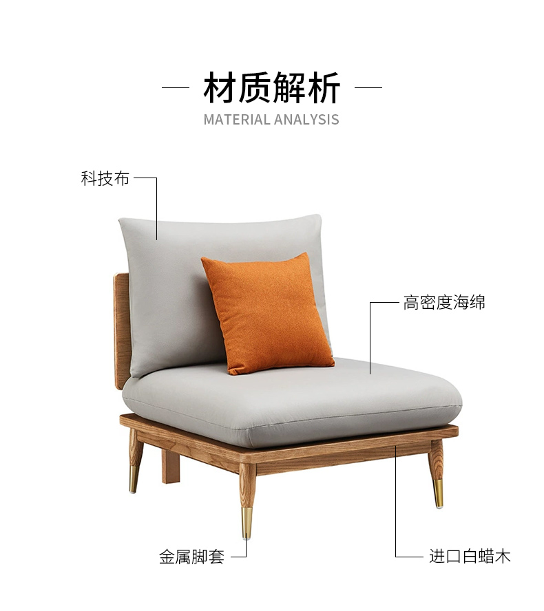 千匠一品 北欧风格 进口白蜡木+科技布+高密度海绵+金属脚套 时尚大气沙发W810-L