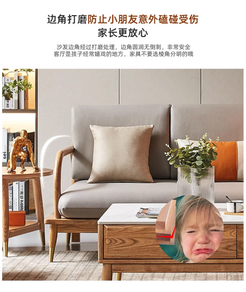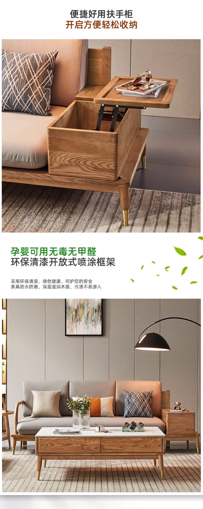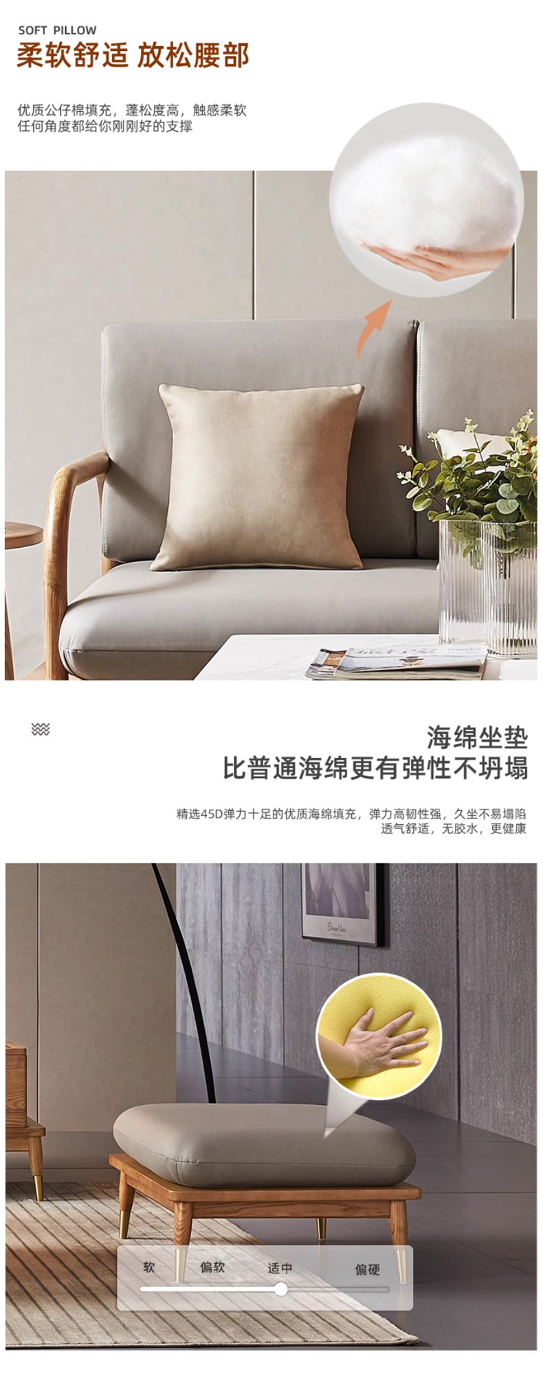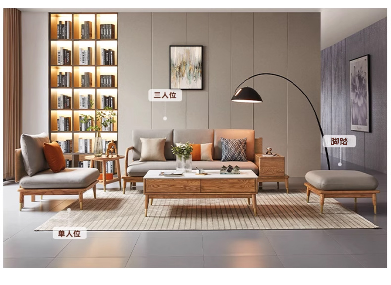 千匠一品 北欧风格 进口白蜡木+科技布+高密度海绵+金属脚套 时尚大气沙发W810-L