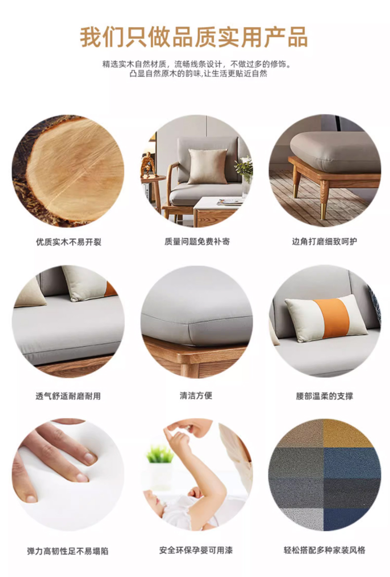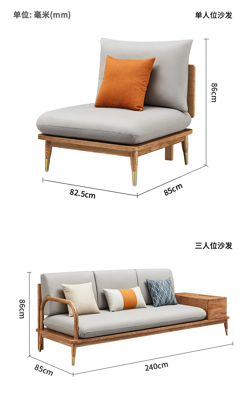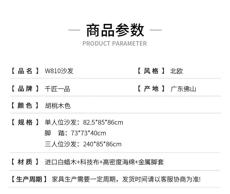商品名称:千匠一品 北欧风格 进口白蜡木+科技布+高密度海绵+金属脚套 时尚大气沙发W810-L