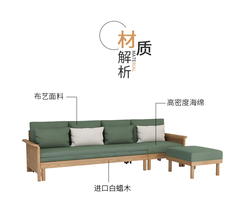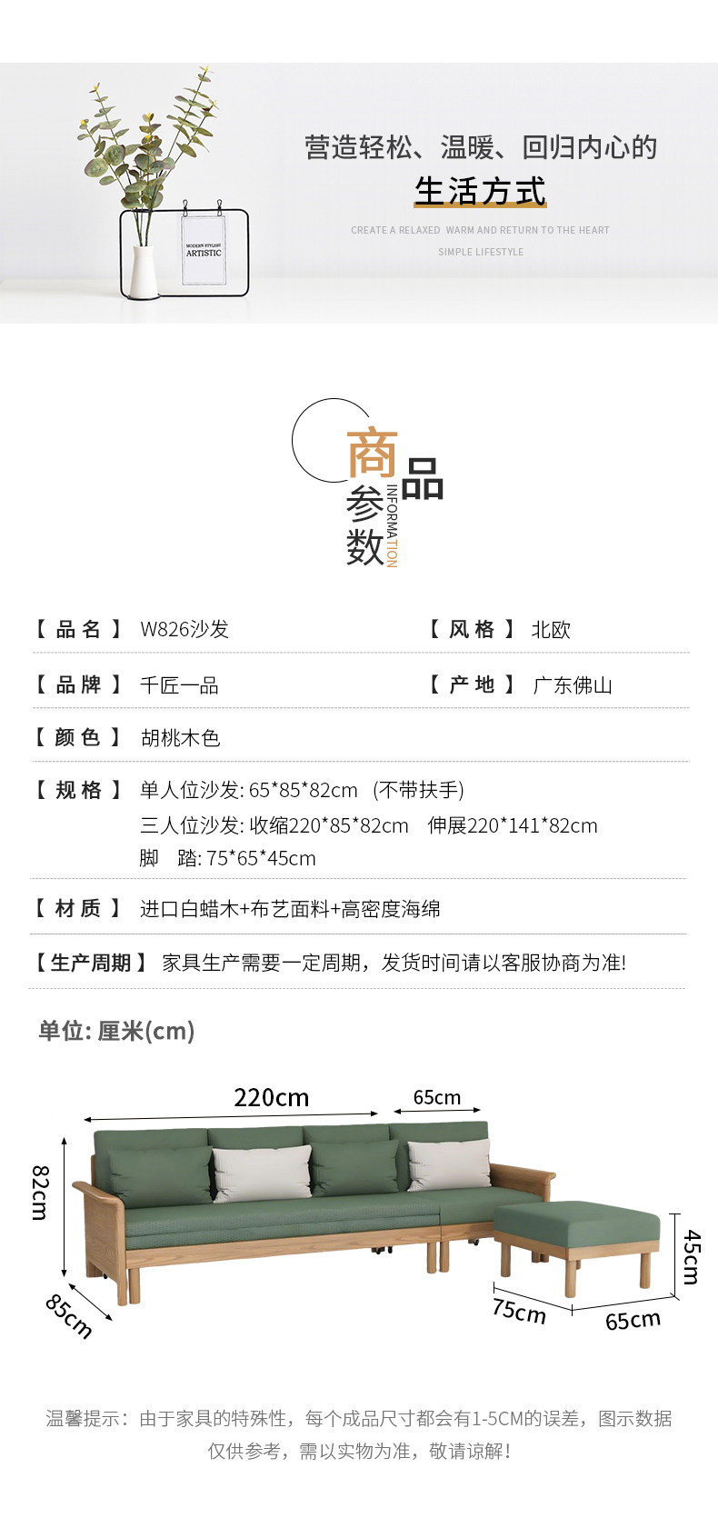 商品名称:千匠一品 北欧风格 进口白蜡木+布艺面料+高密度海绵 时尚大气沙发W826-L
