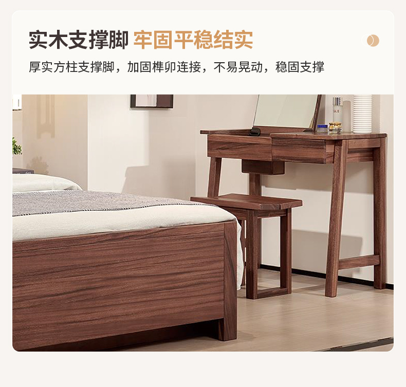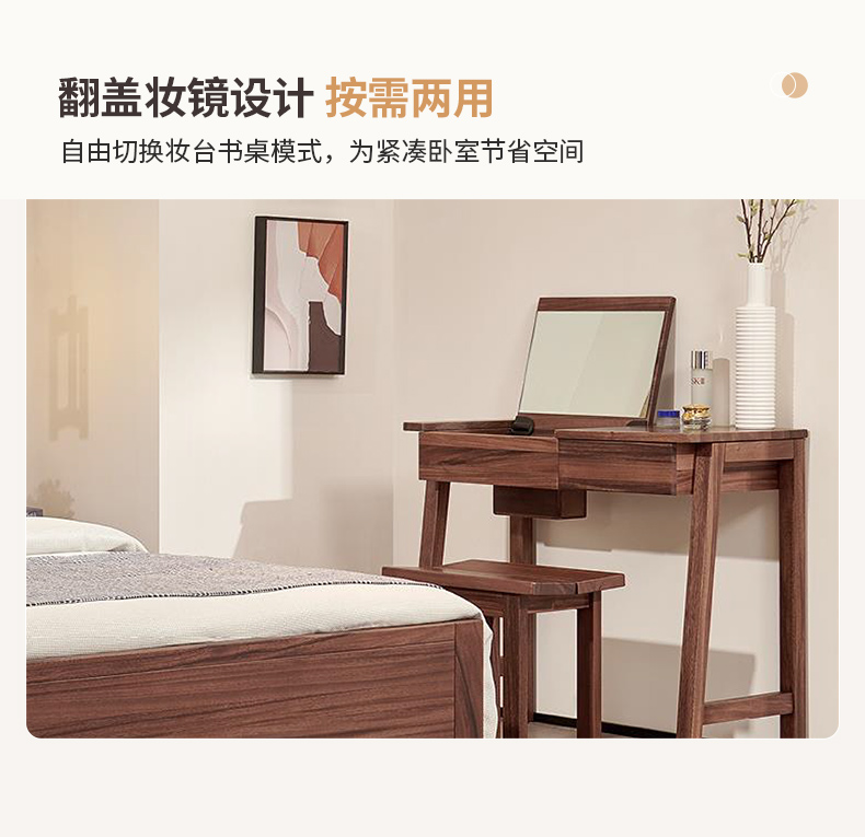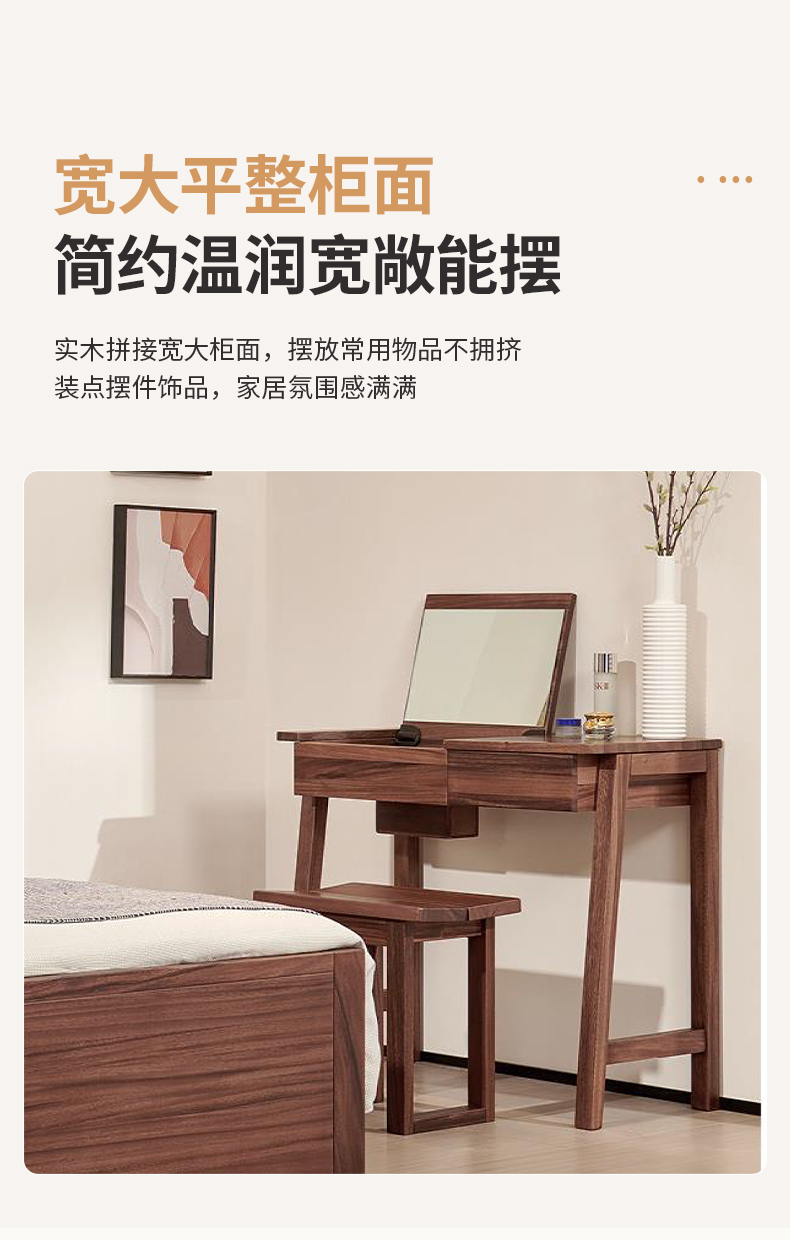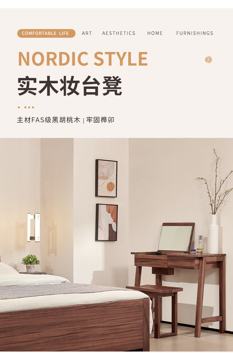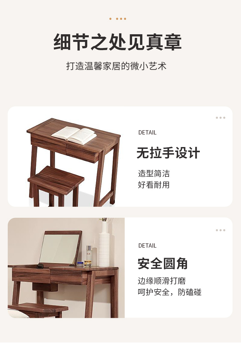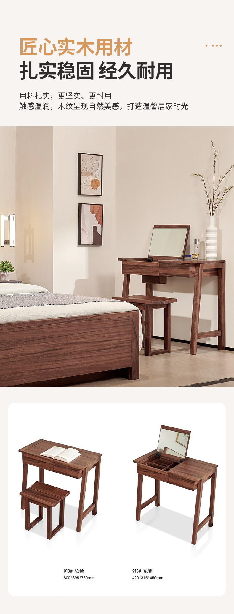 千匠一品 北欧风格 黑胡桃木实木+玻璃+优质五金配件 时尚大气妆台913 妆凳913-J