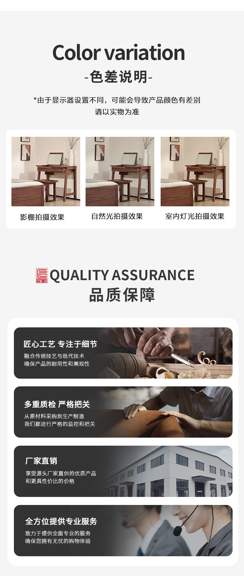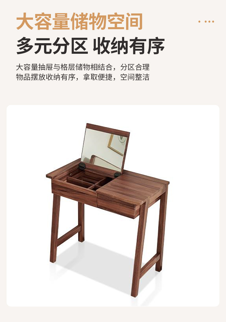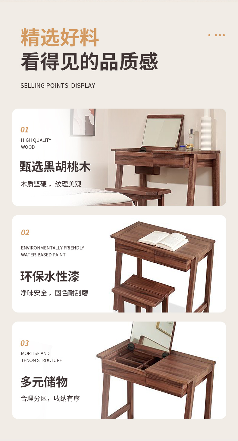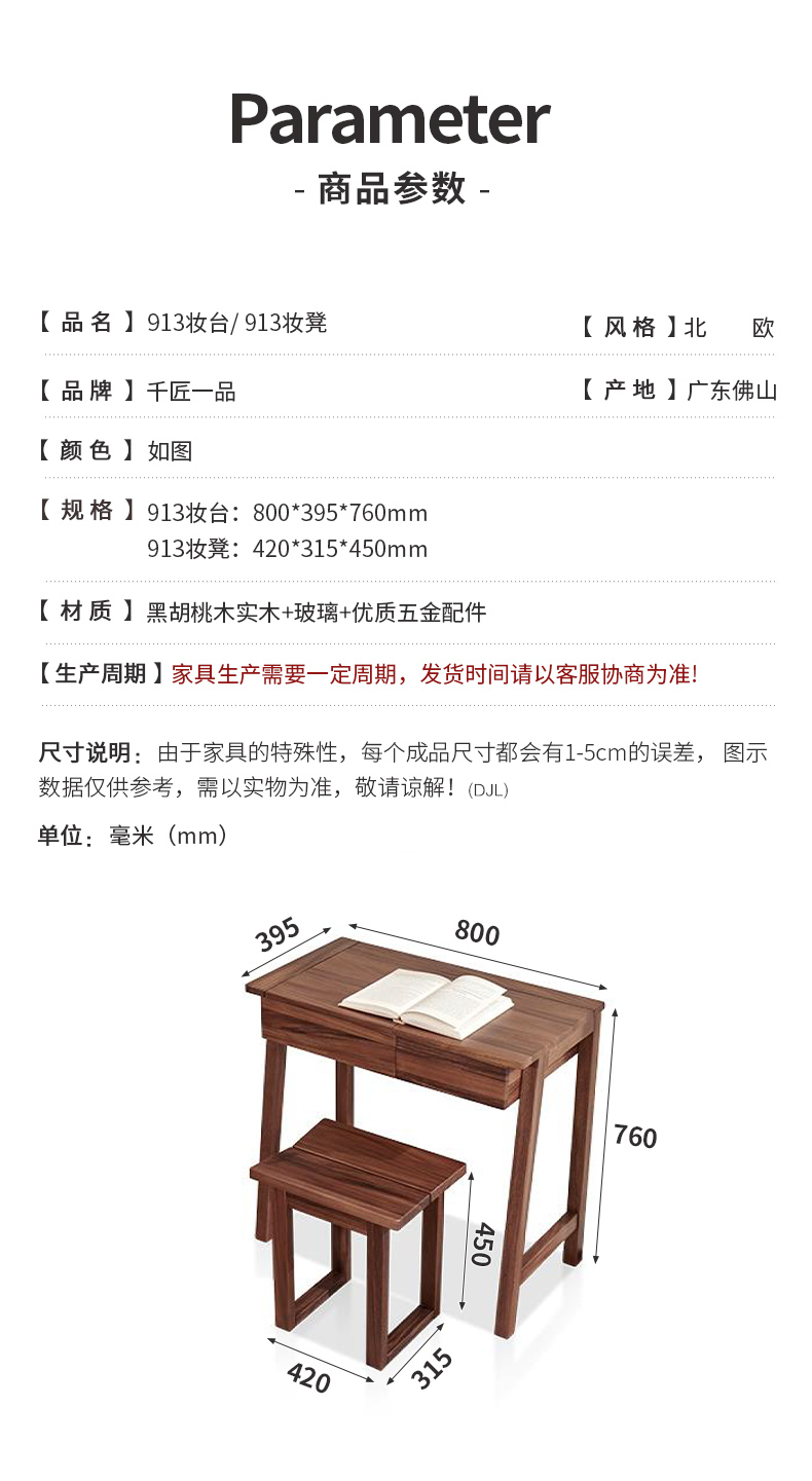 商品名称:千匠一品 北欧风格 黑胡桃木实木+玻璃+优质五金配件 时尚大气妆台913 妆凳913-J