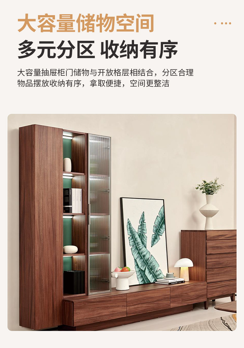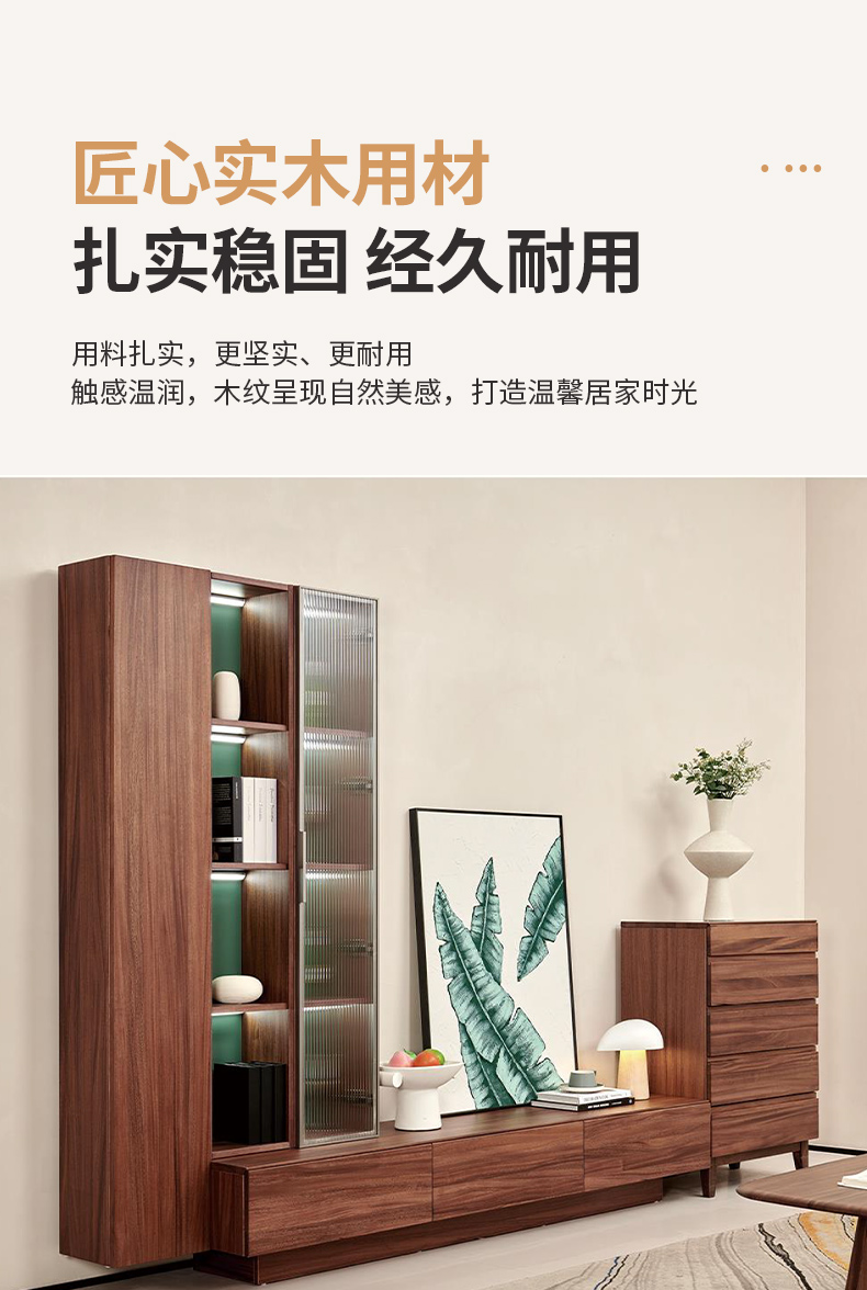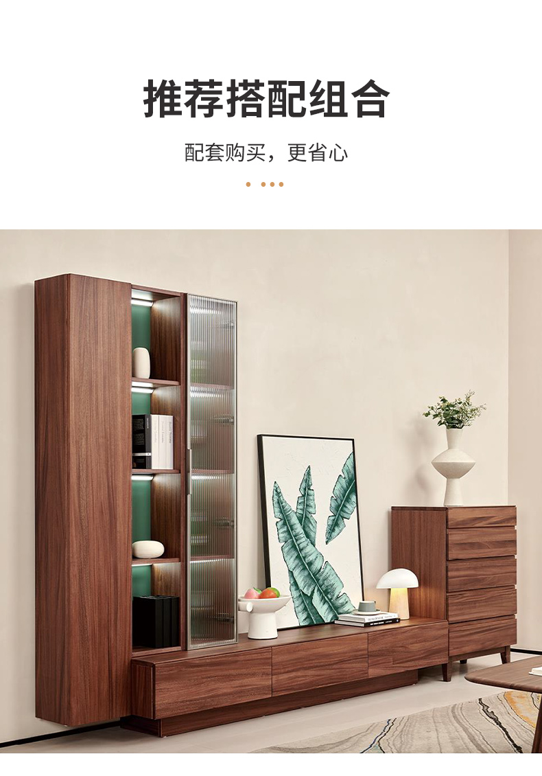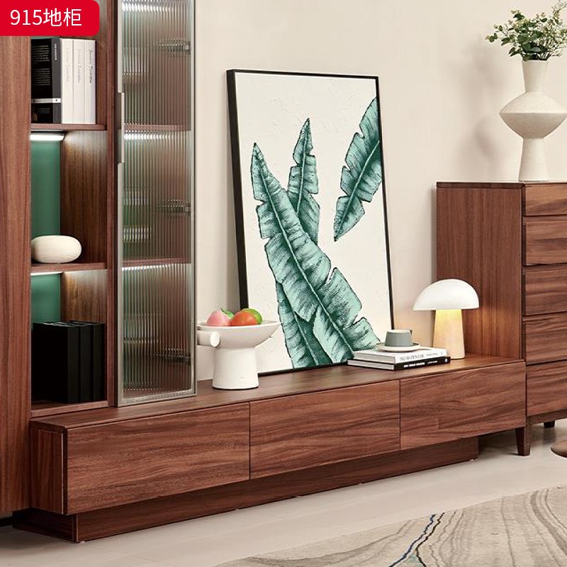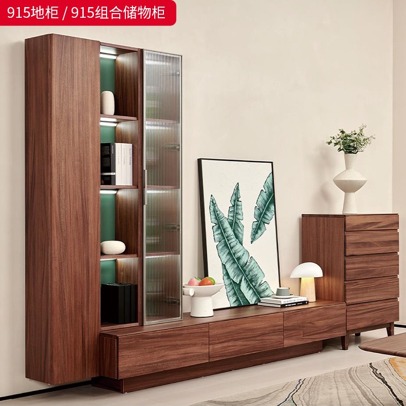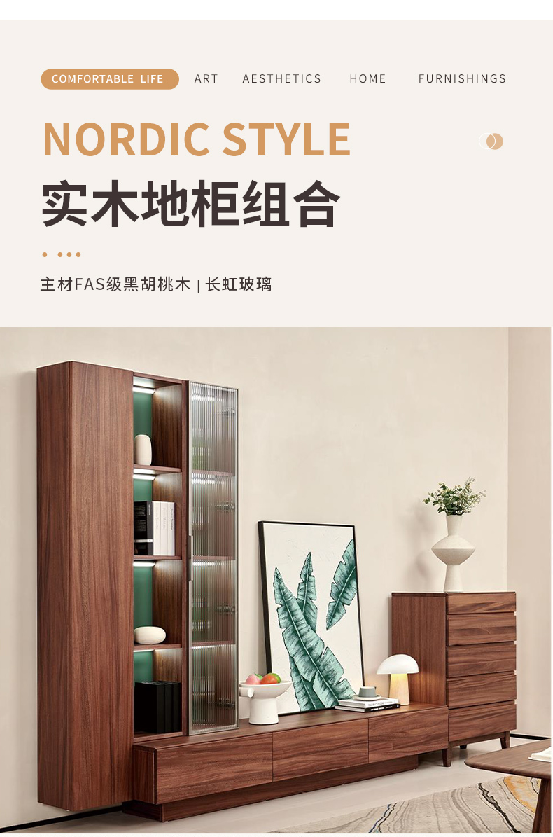 千匠一品 北欧风格 黑胡桃木实木+玻璃+优质五金配件 时尚大气地柜 组合储物柜915-J