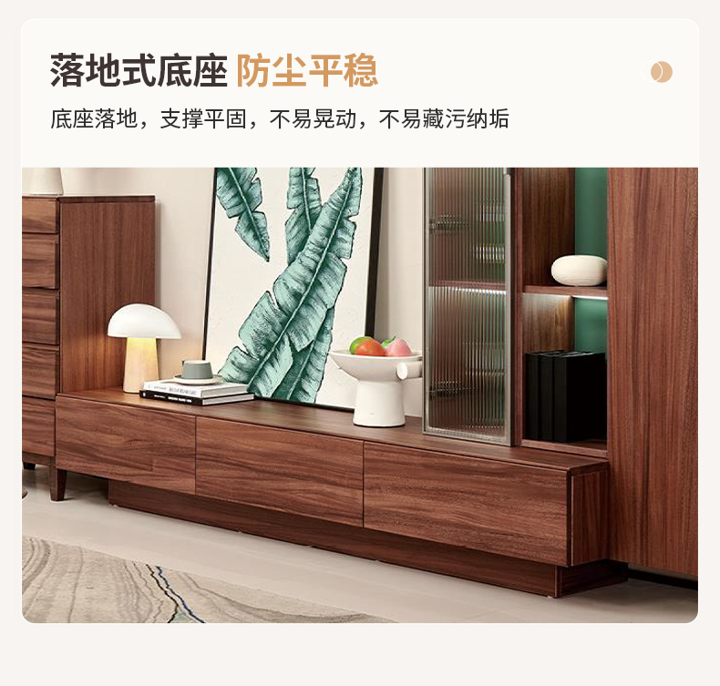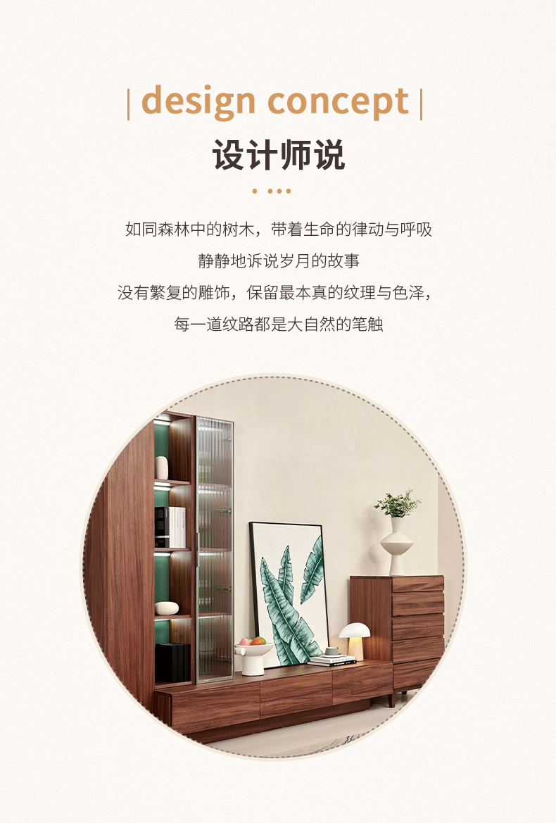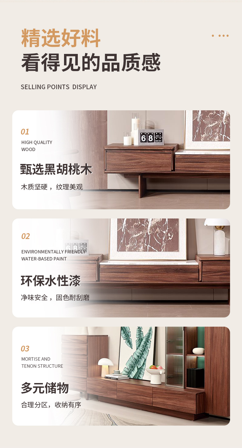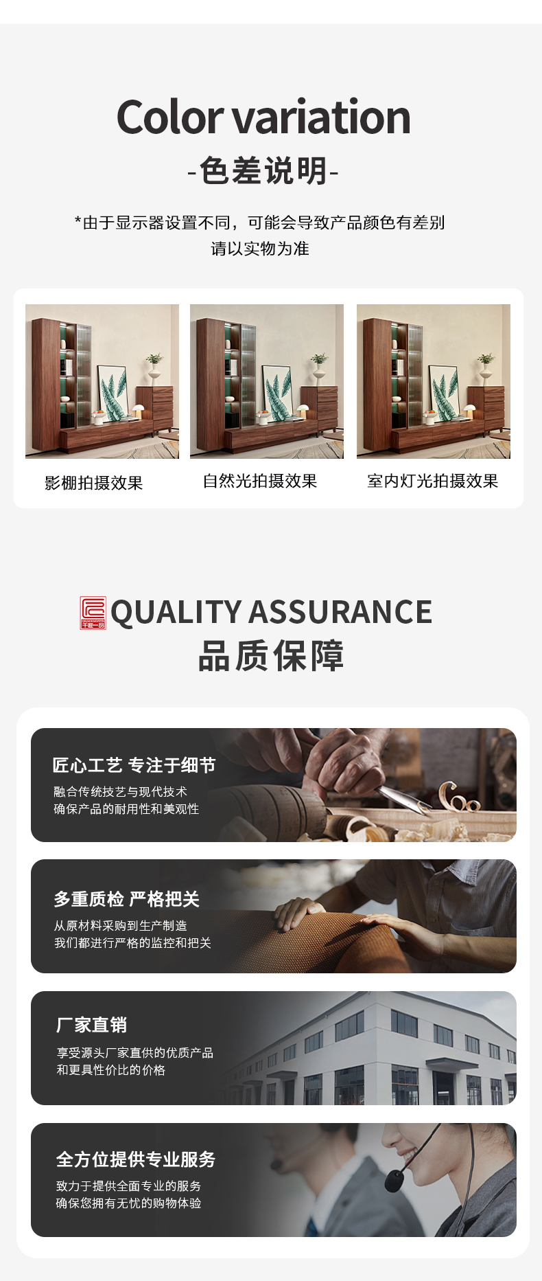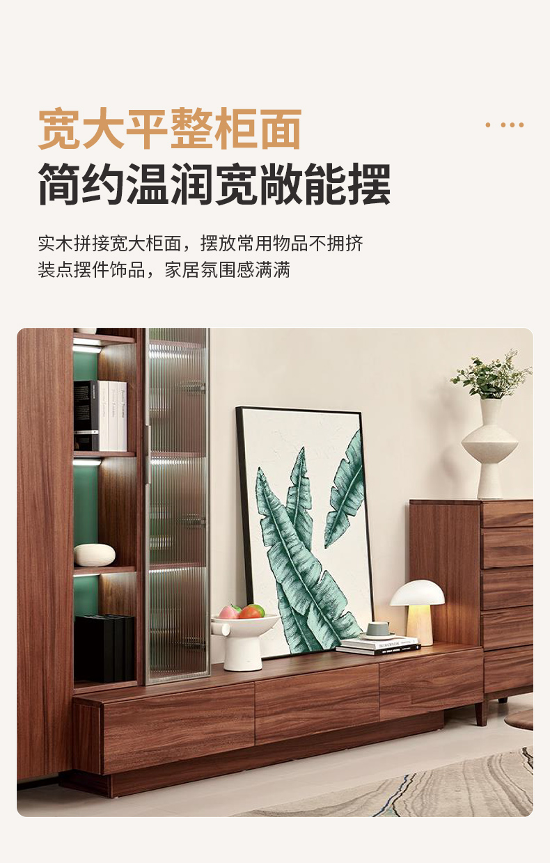 千匠一品 北欧风格 黑胡桃木实木+玻璃+优质五金配件 时尚大气地柜 组合储物柜915-J