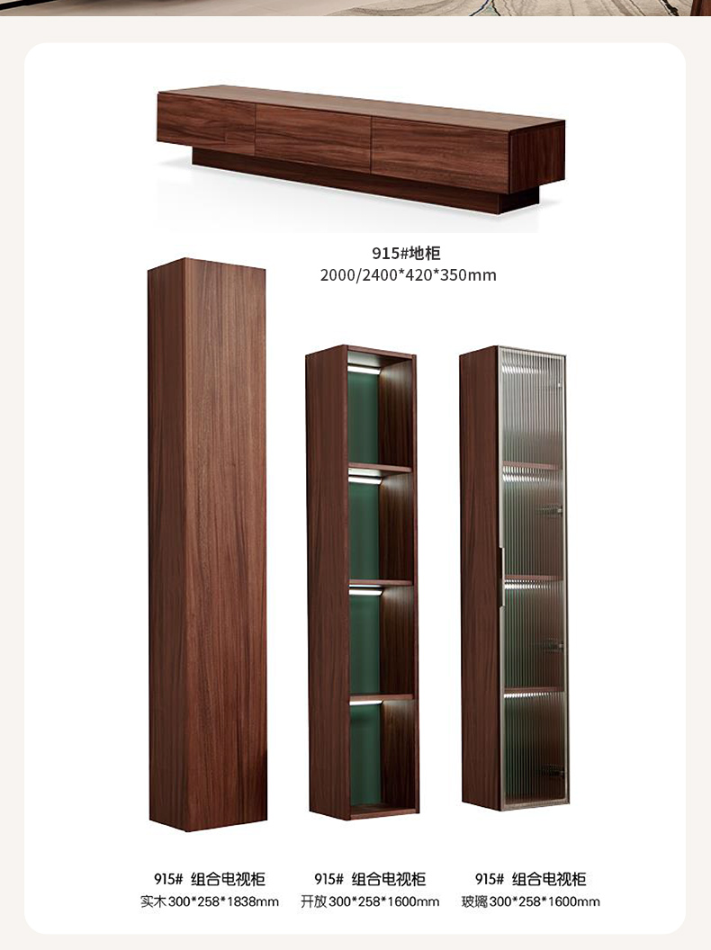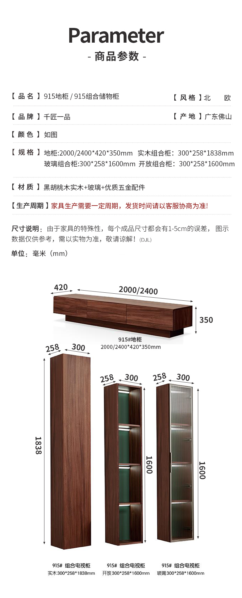 商品名称:千匠一品 北欧风格 黑胡桃木实木+玻璃+优质五金配件 时尚大气地柜 组合储物柜915-J