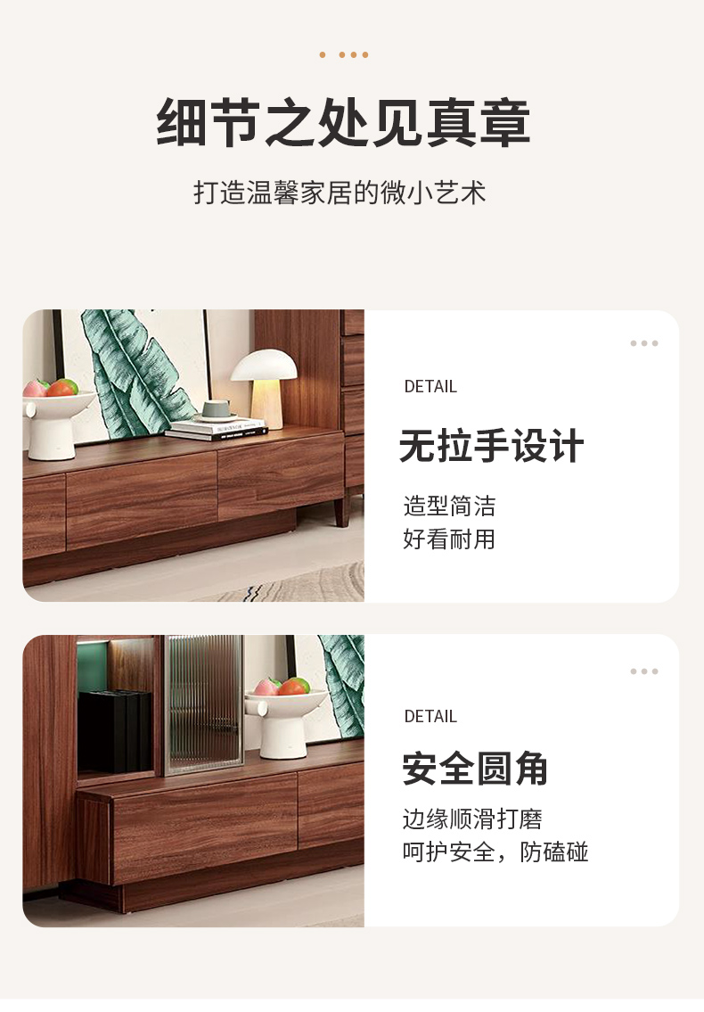 很漂亮的电视柜,做工精细,用料扎实,没有刺鼻异味,抽屉储物空间很大,好打理