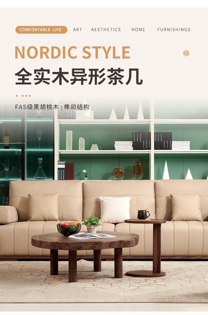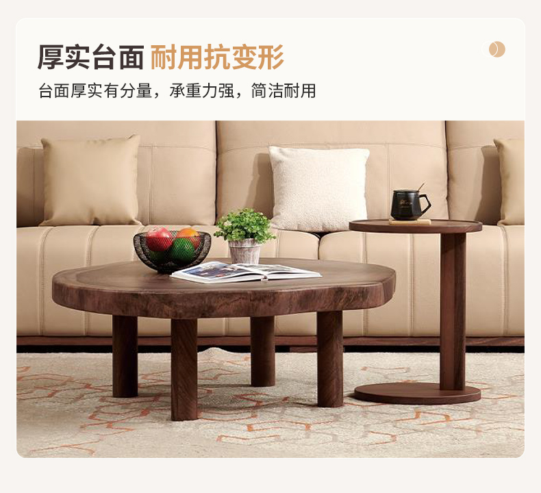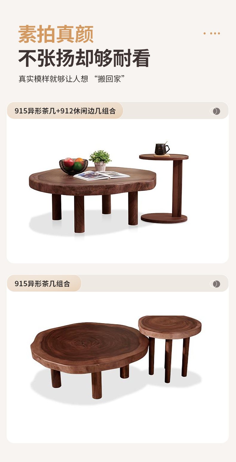 千匠一品 北欧风格 黑胡桃木实木 时尚大气异形茶几915 休闲边几 912-J