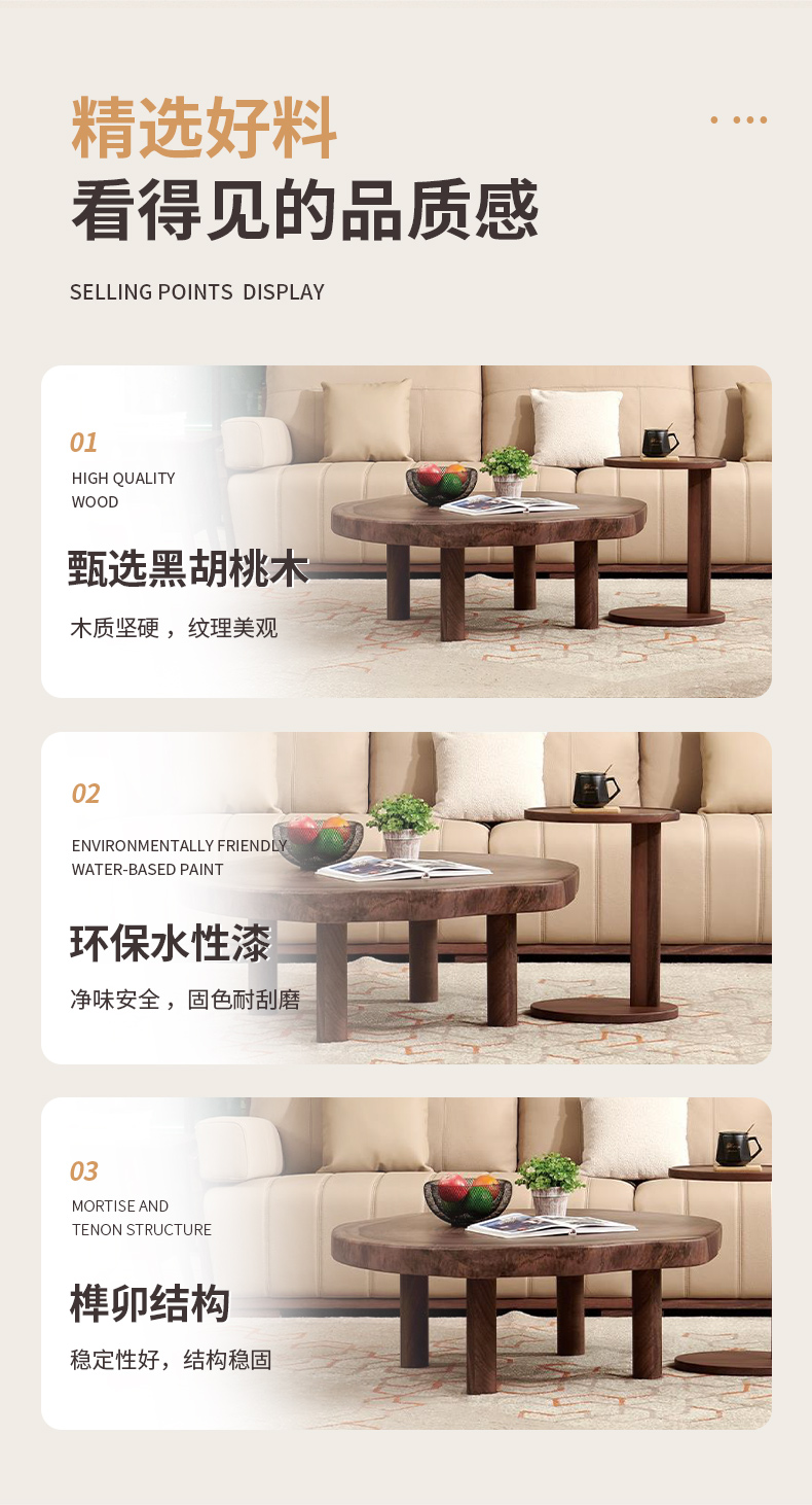 千匠一品 现代风格板木+岩板+碳素钢茶几-2202-X