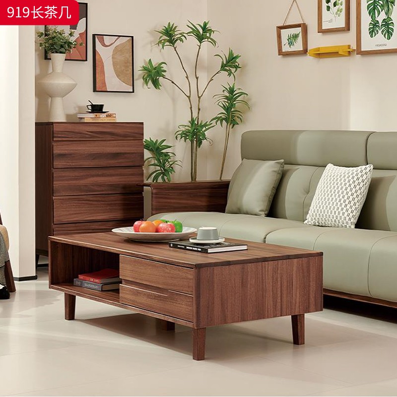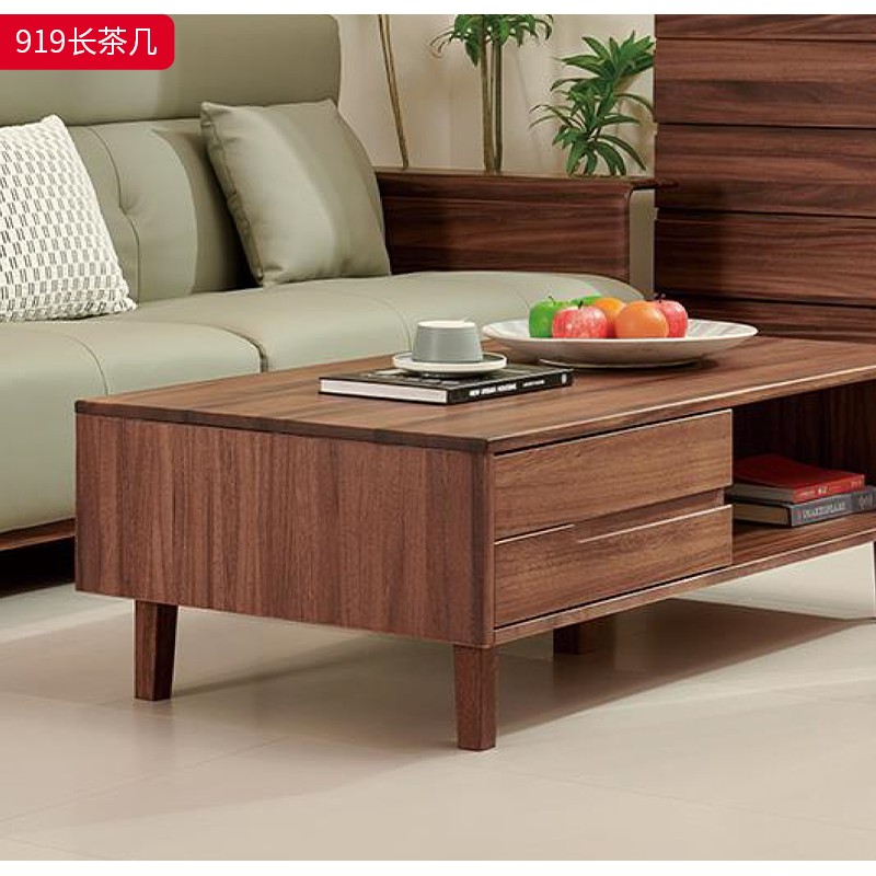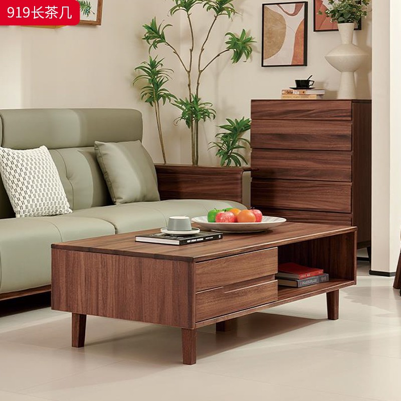千匠一品 北欧风格 黑胡桃木实木 时尚大气长茶几919-J