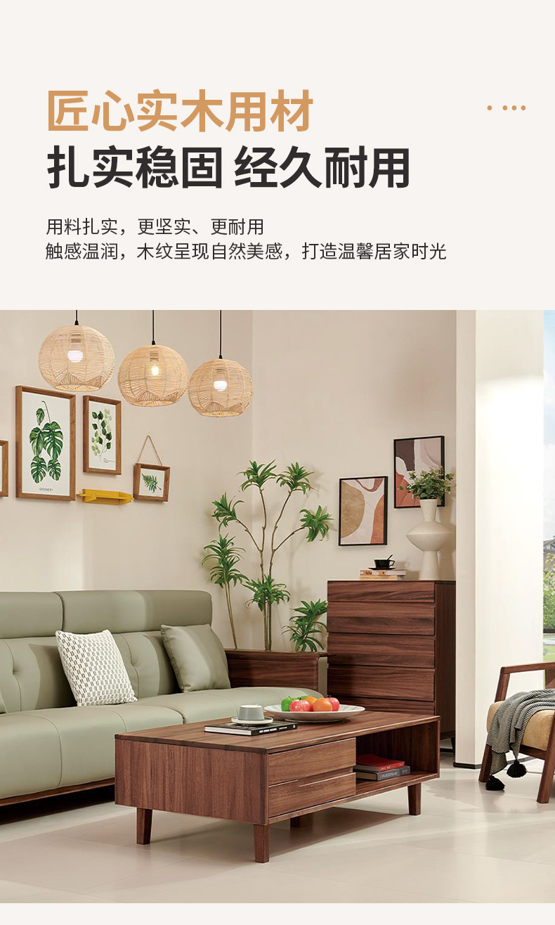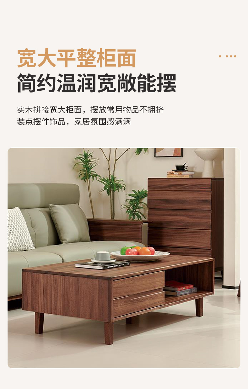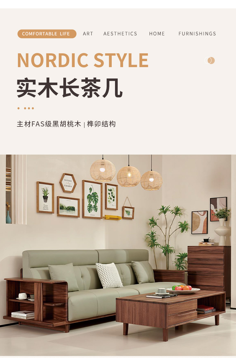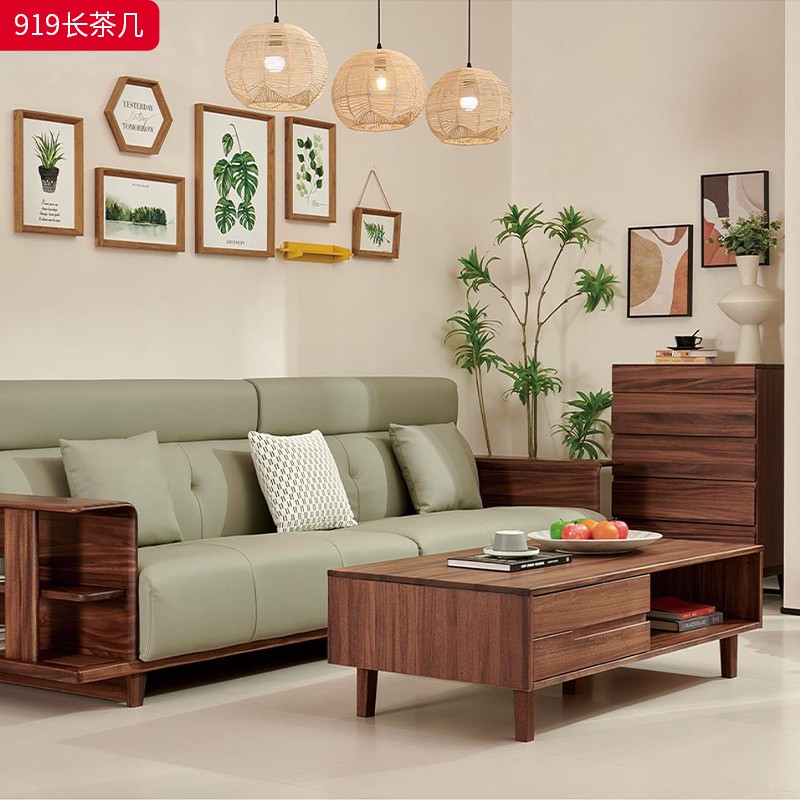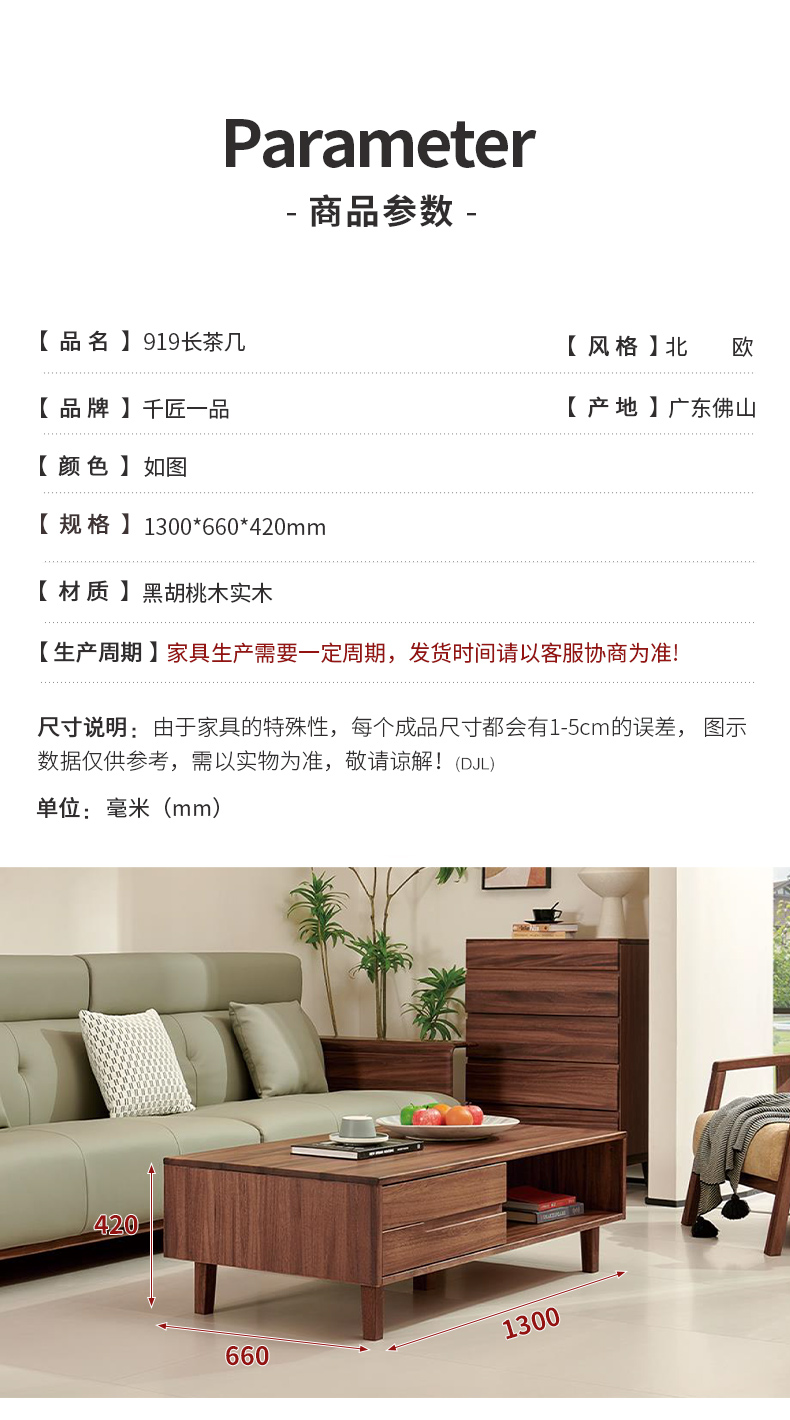 商品名称:千匠一品 北欧风格 黑胡桃木实木 时尚大气长茶几919-J