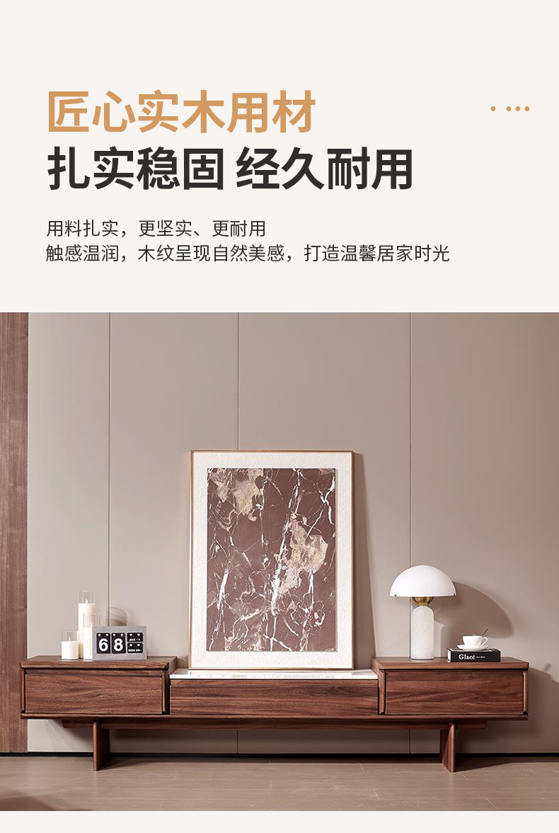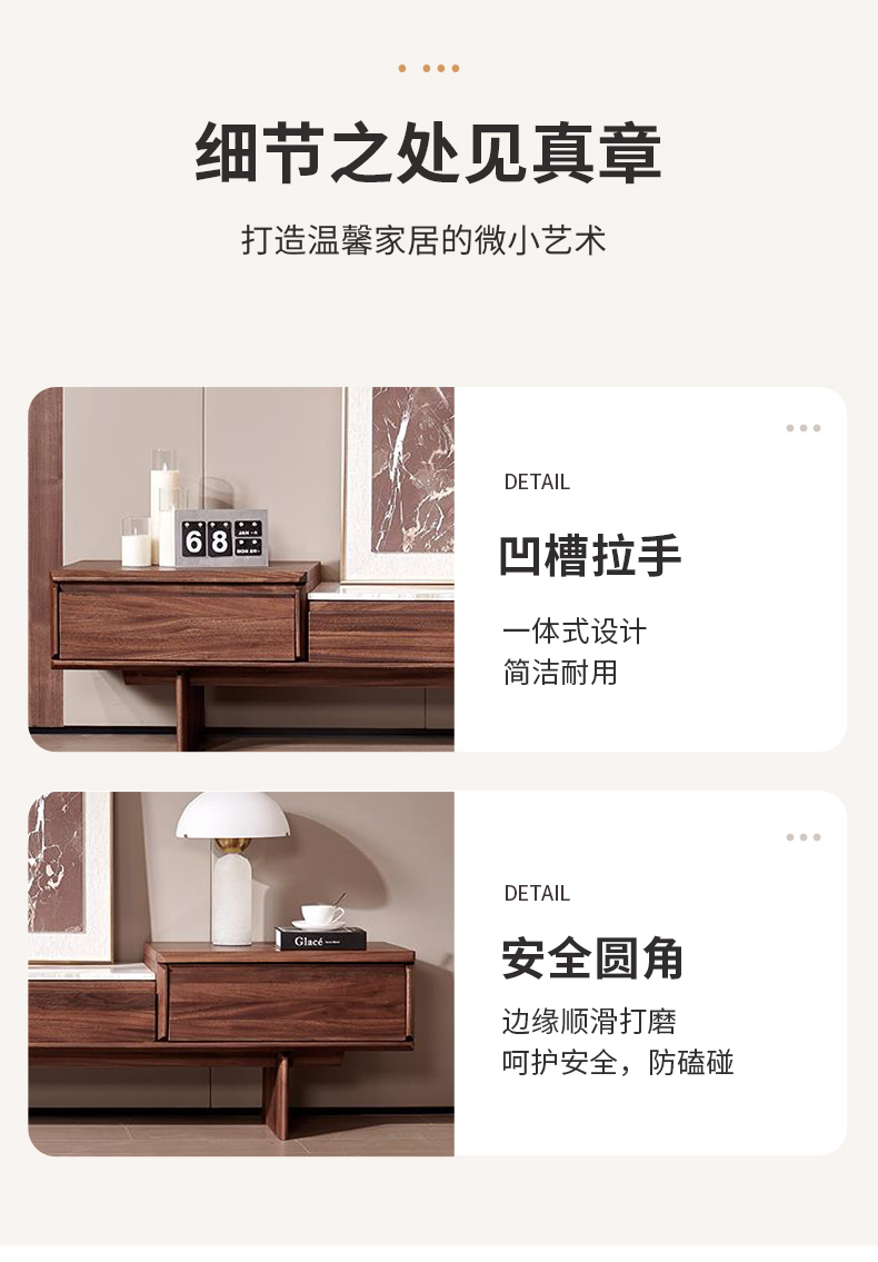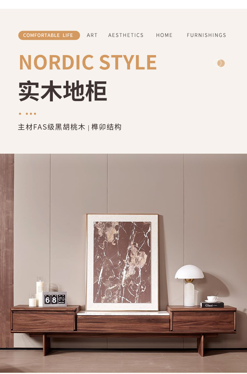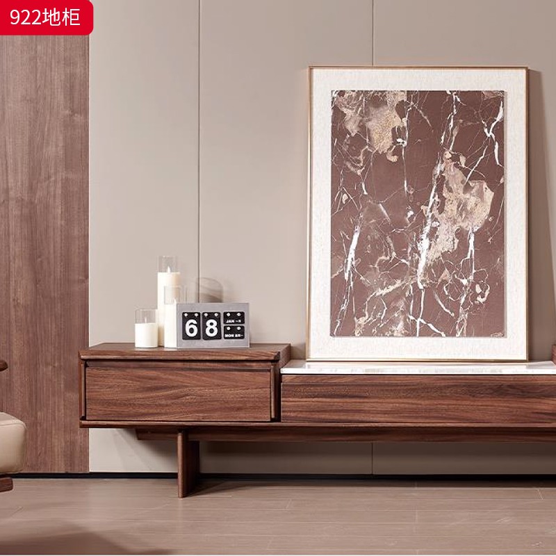 千匠一品 北欧风格 黑胡桃木实木 时尚大气地柜922-J