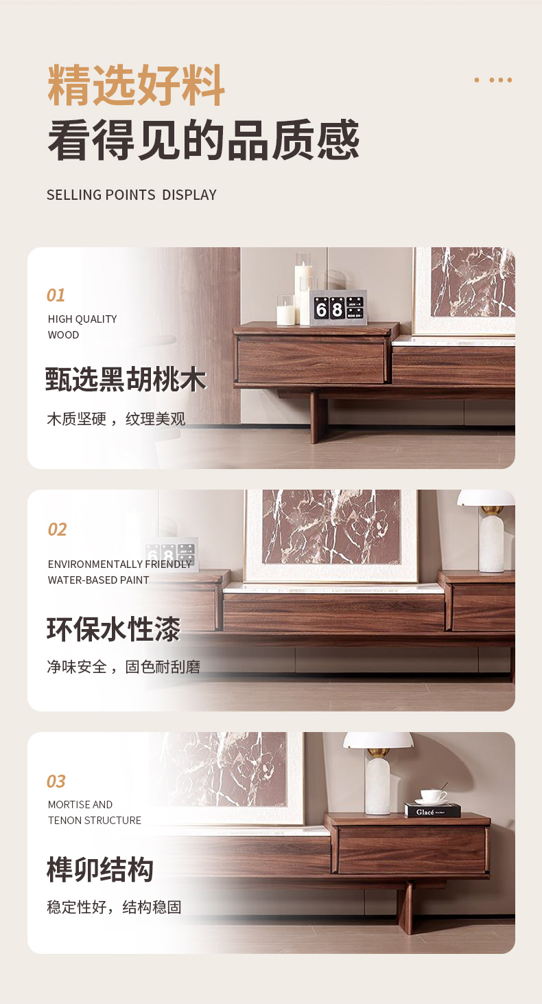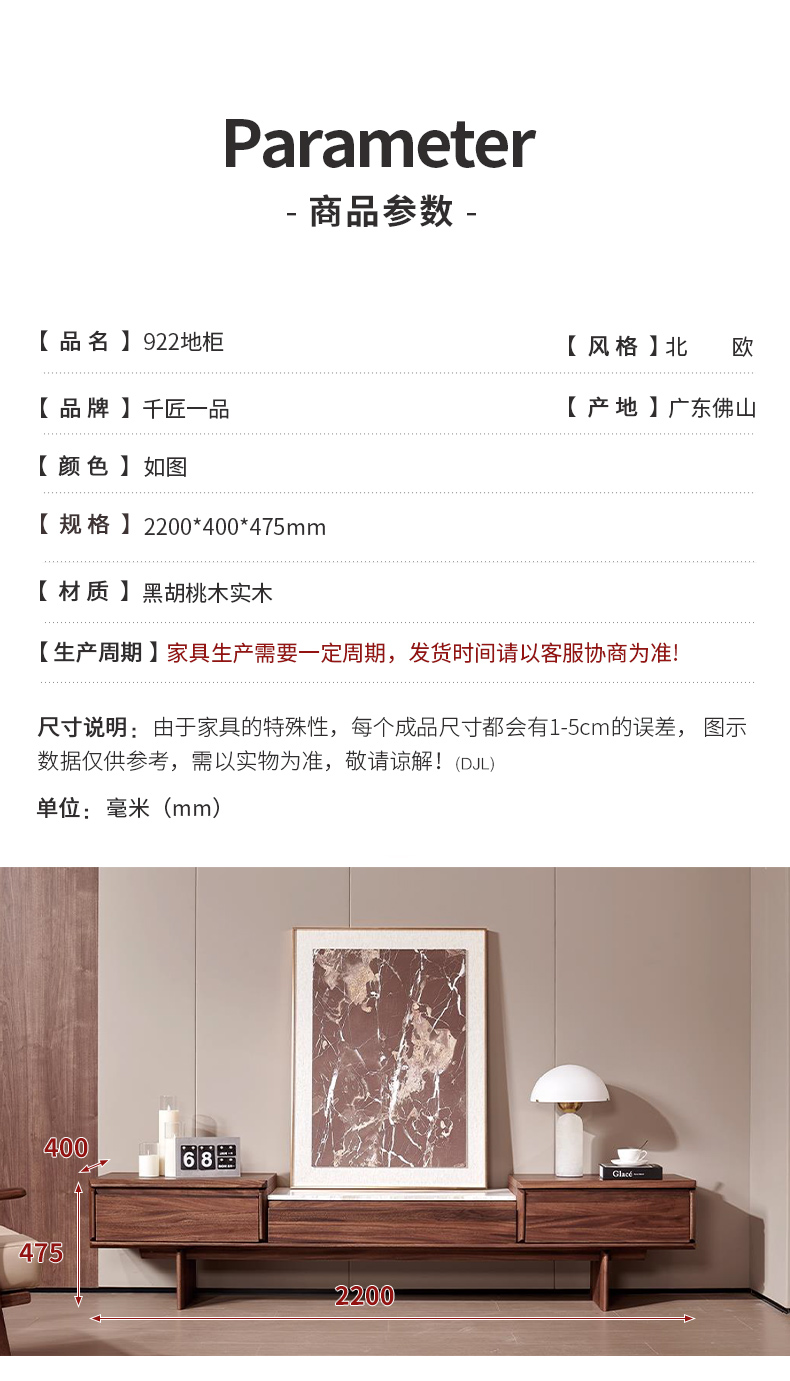 商品名称:千匠一品 北欧风格 黑胡桃木实木 时尚大气地柜922-J