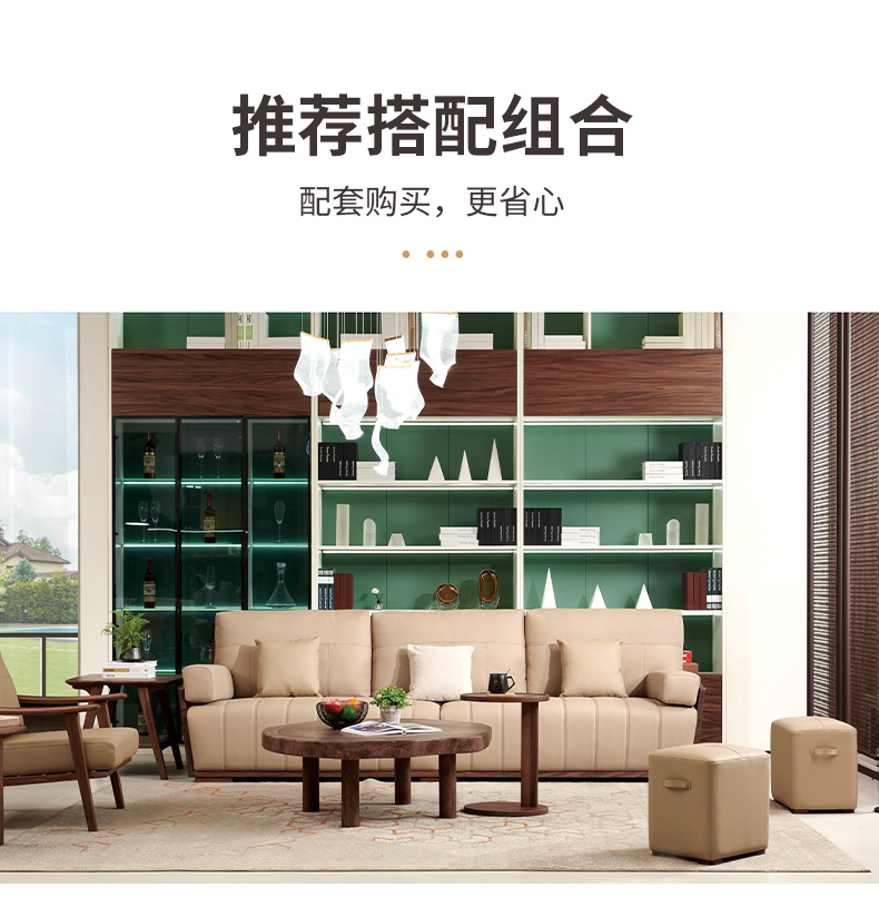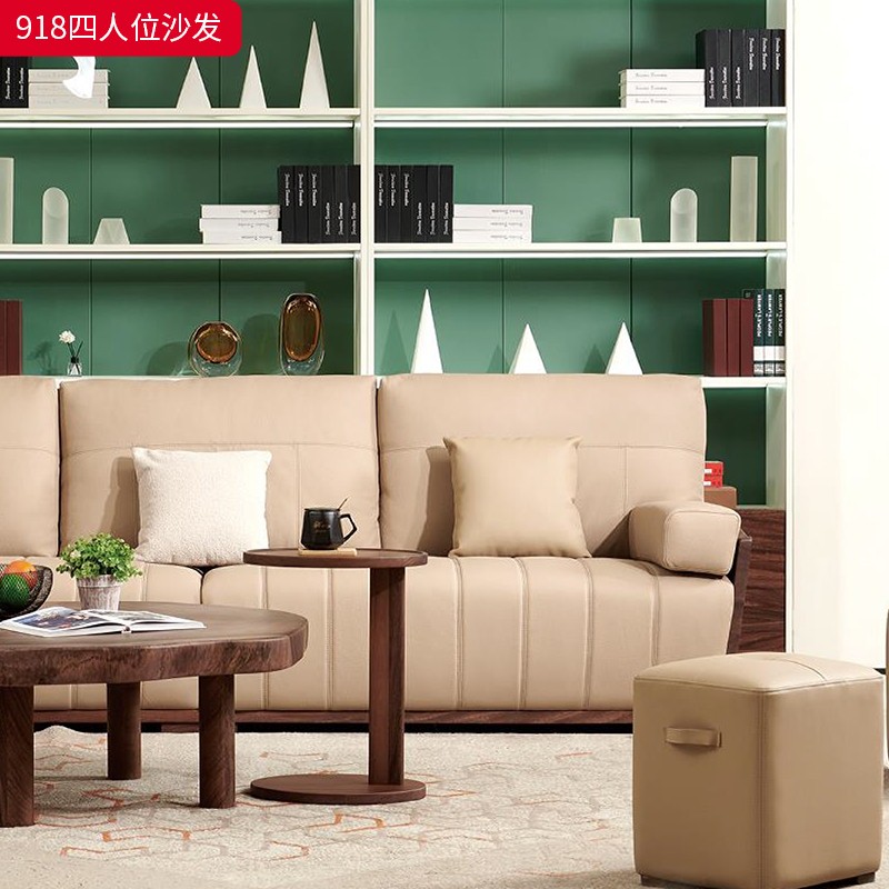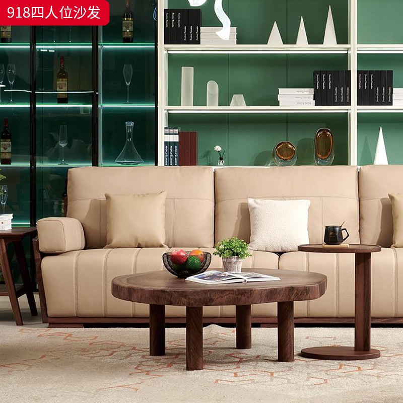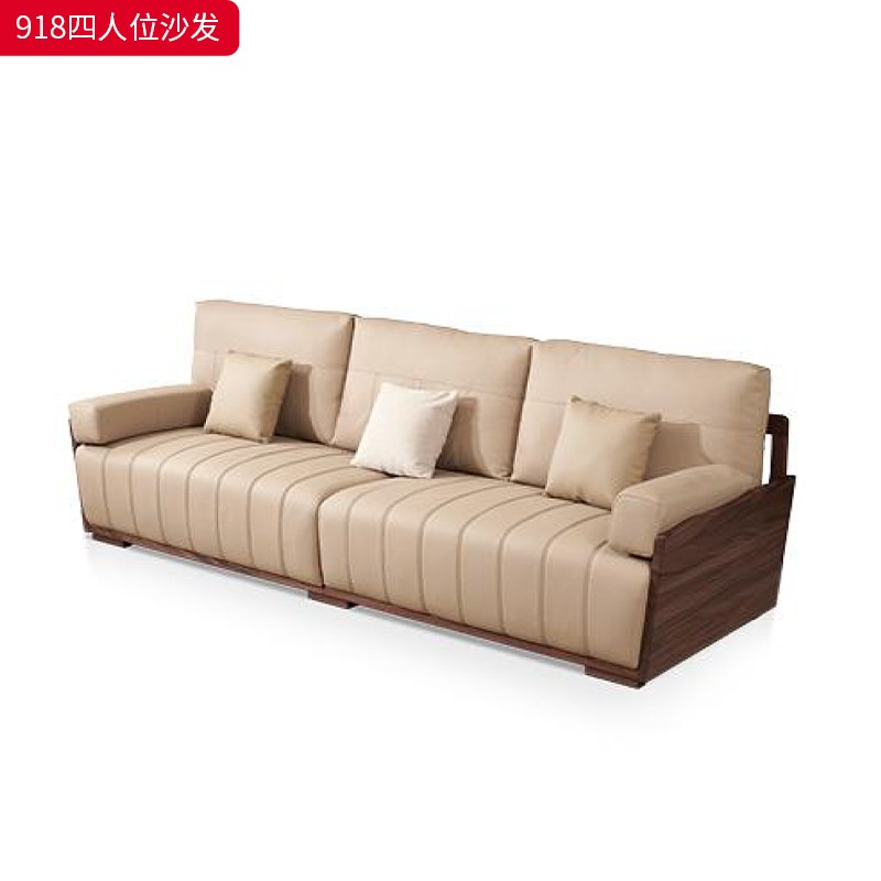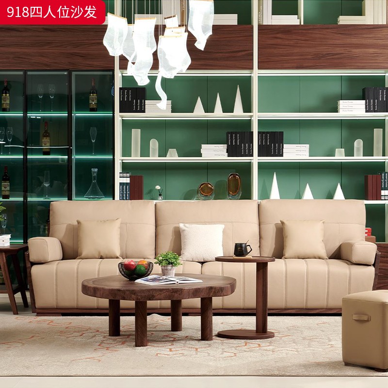 千匠一品 北欧风格 头层牛皮面料+黑胡桃木+高密度海绵+羽绒+太空棉+弹簧 时尚大气沙发918-L