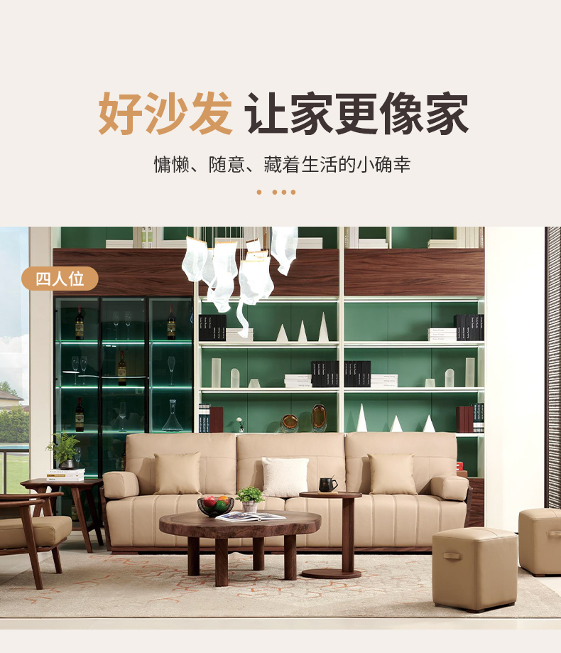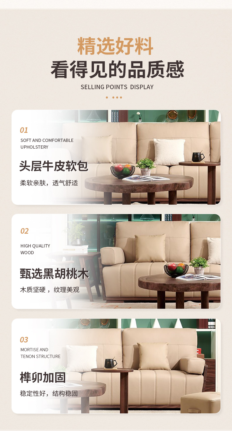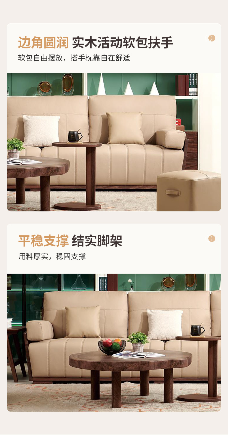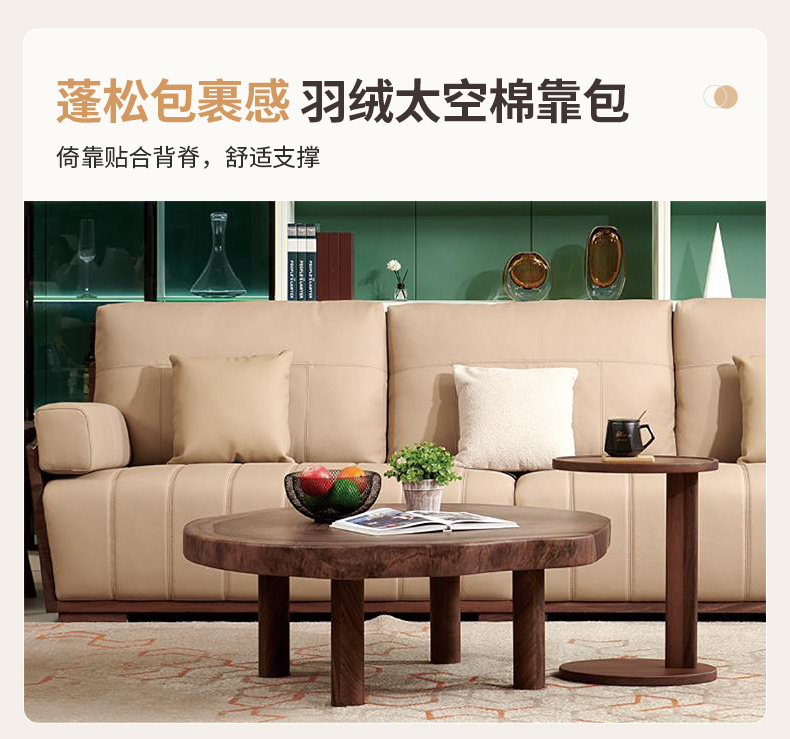 千匠一品 北欧风格 头层牛皮面料+黑胡桃木+高密度海绵+羽绒+太空棉+弹簧 时尚大气沙发918-L