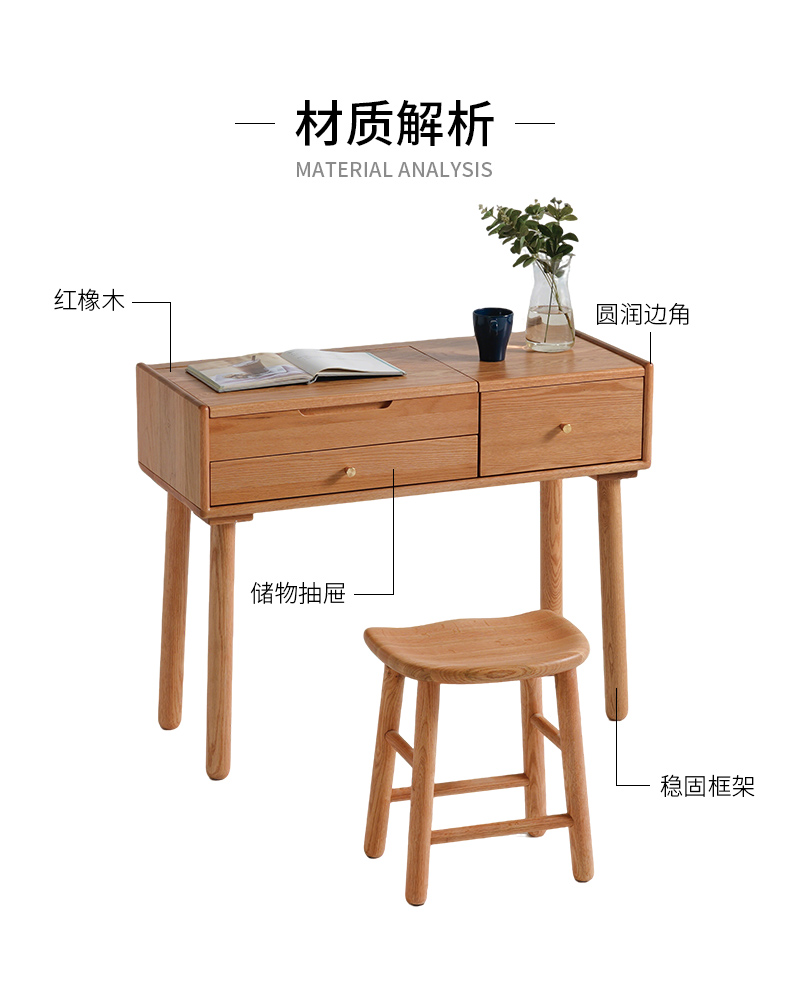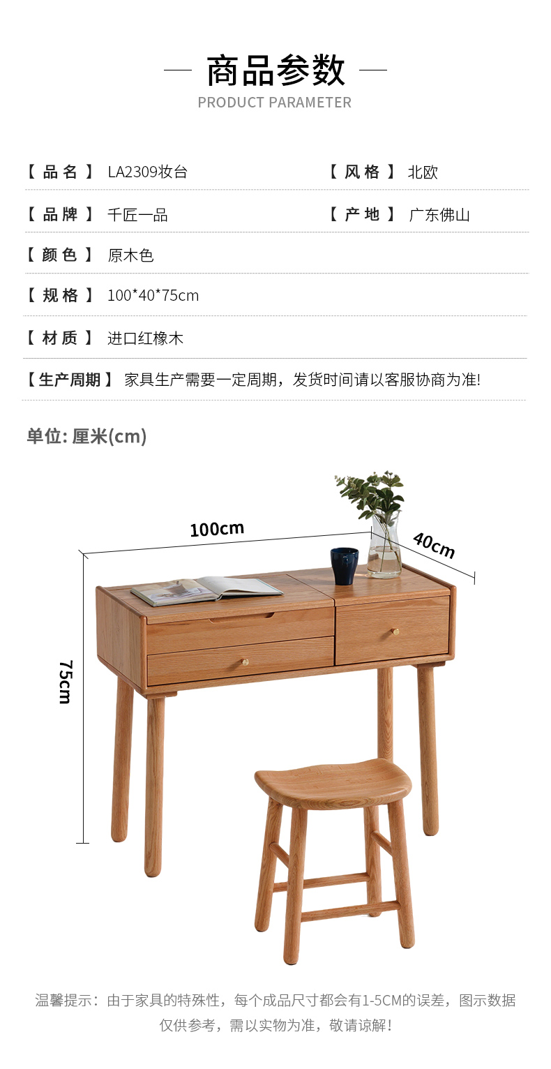 商品名称:千匠一品 北欧风格 进口红橡木 时尚大气妆台LA2309-J