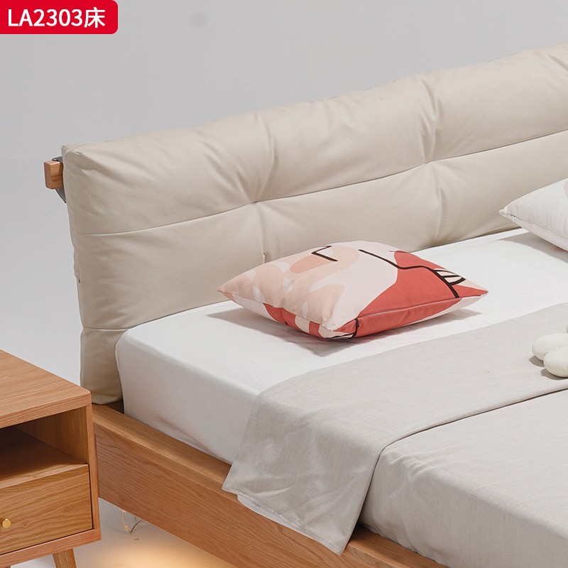 千匠一品 北欧风格 进口红橡木+皮艺面料+公仔棉羽绒软包 时尚大气床LA2303-J