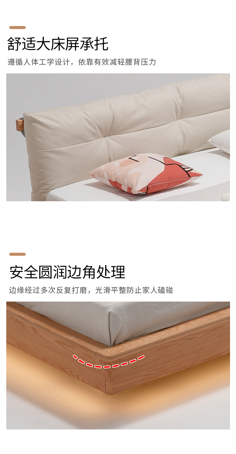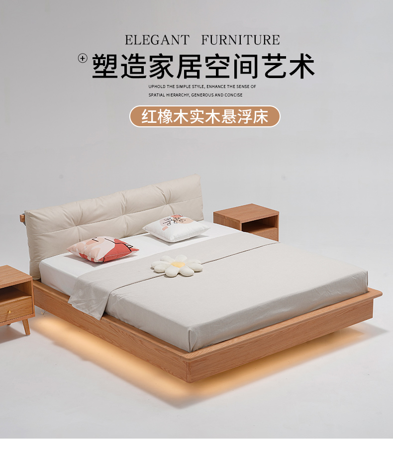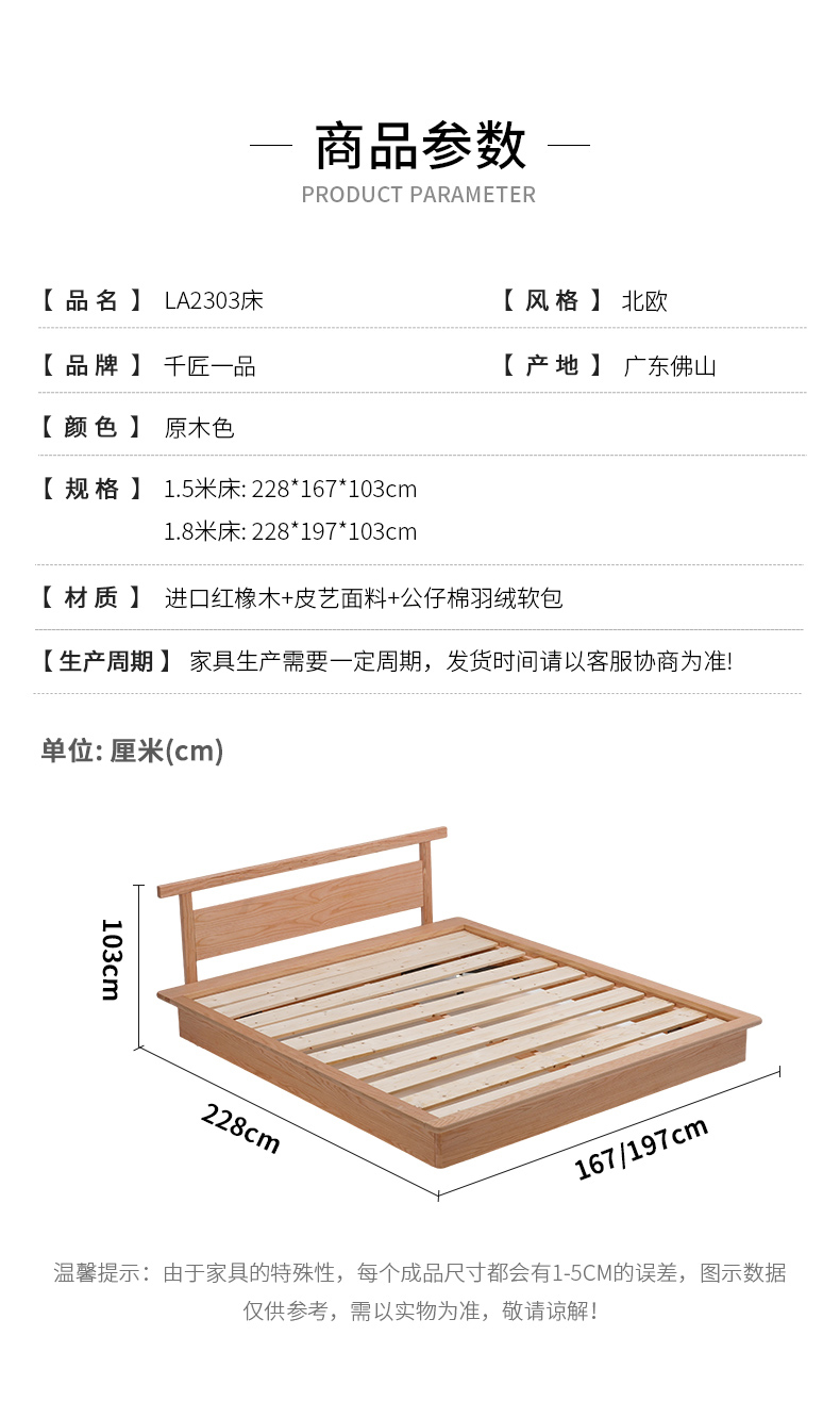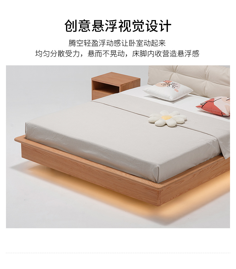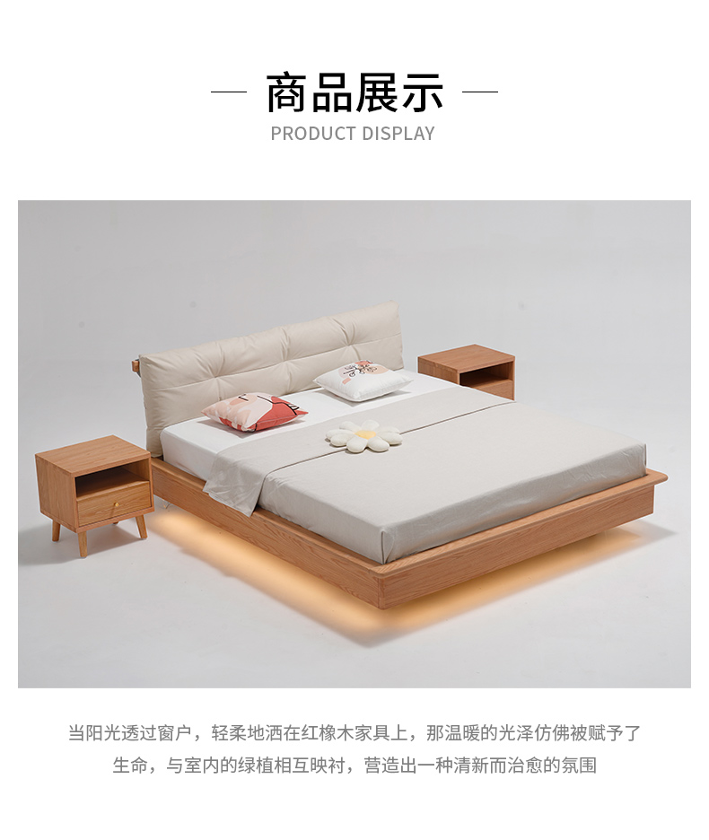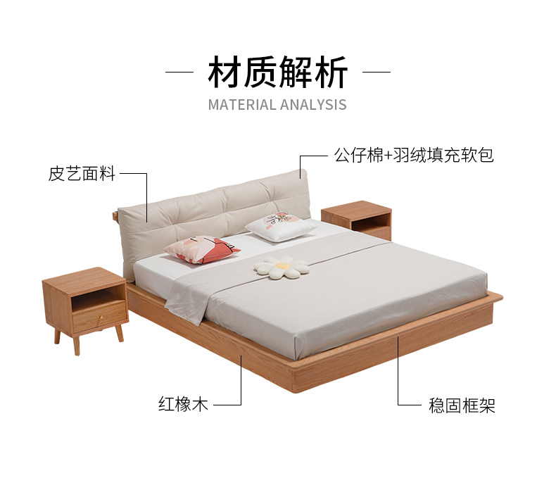 商品名称:千匠一品 北欧风格 进口红橡木+皮艺面料+公仔棉羽绒软包 时尚大气床LA2303-J