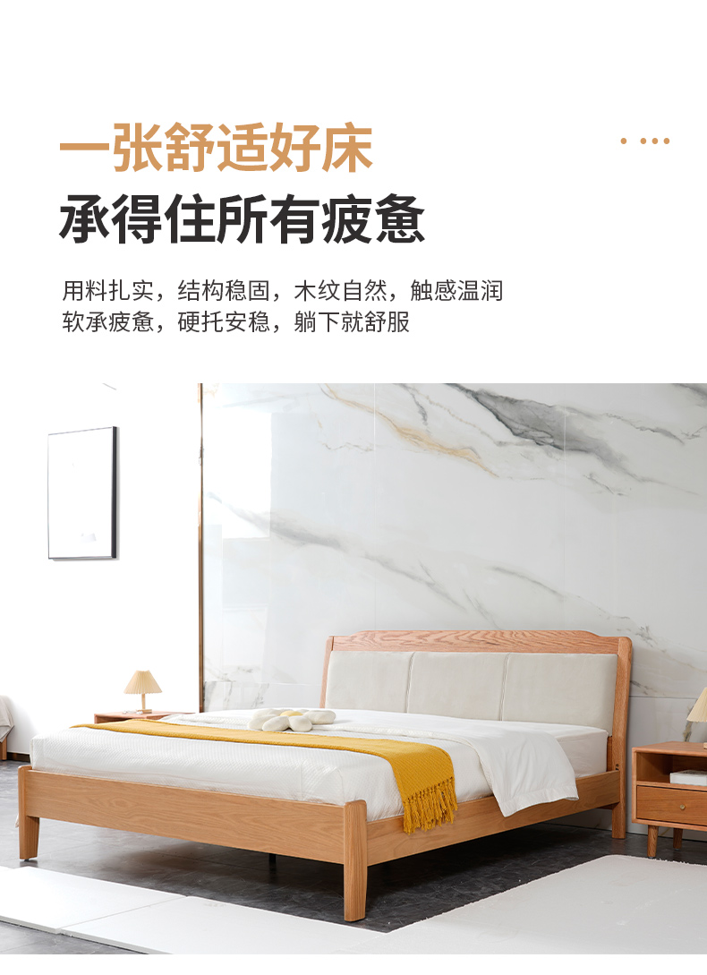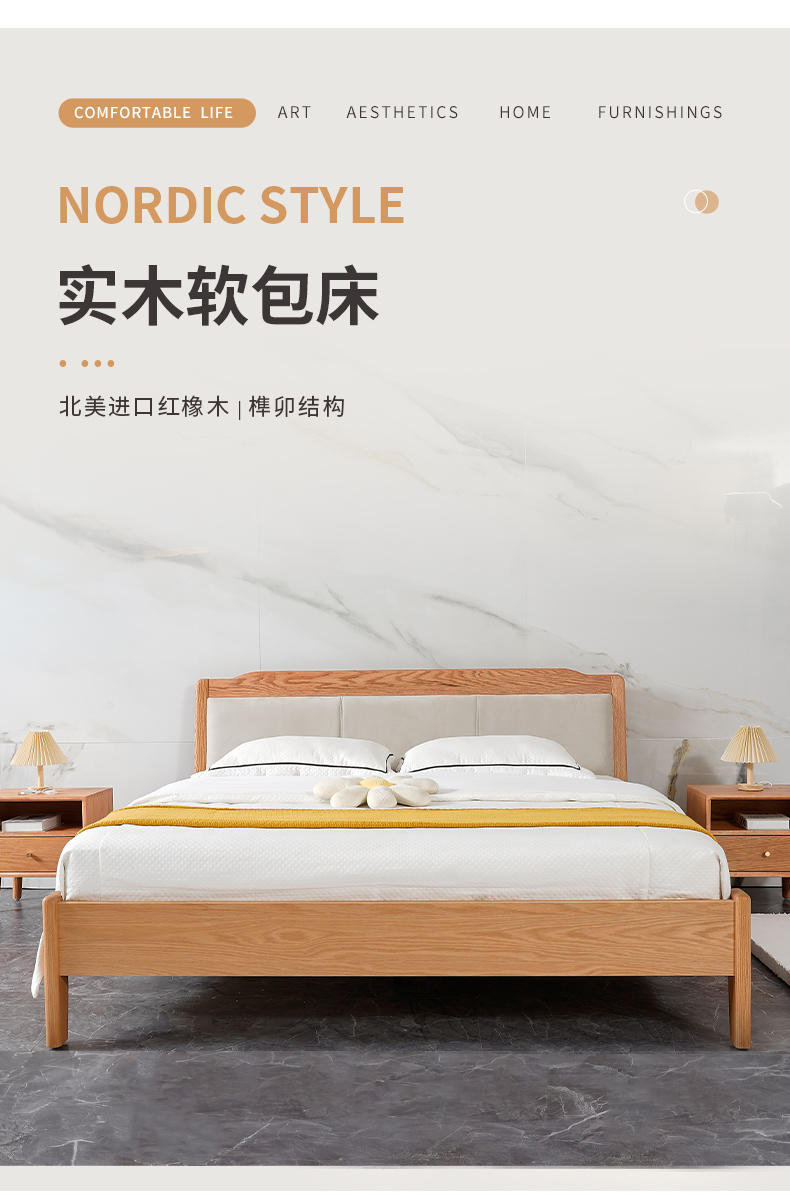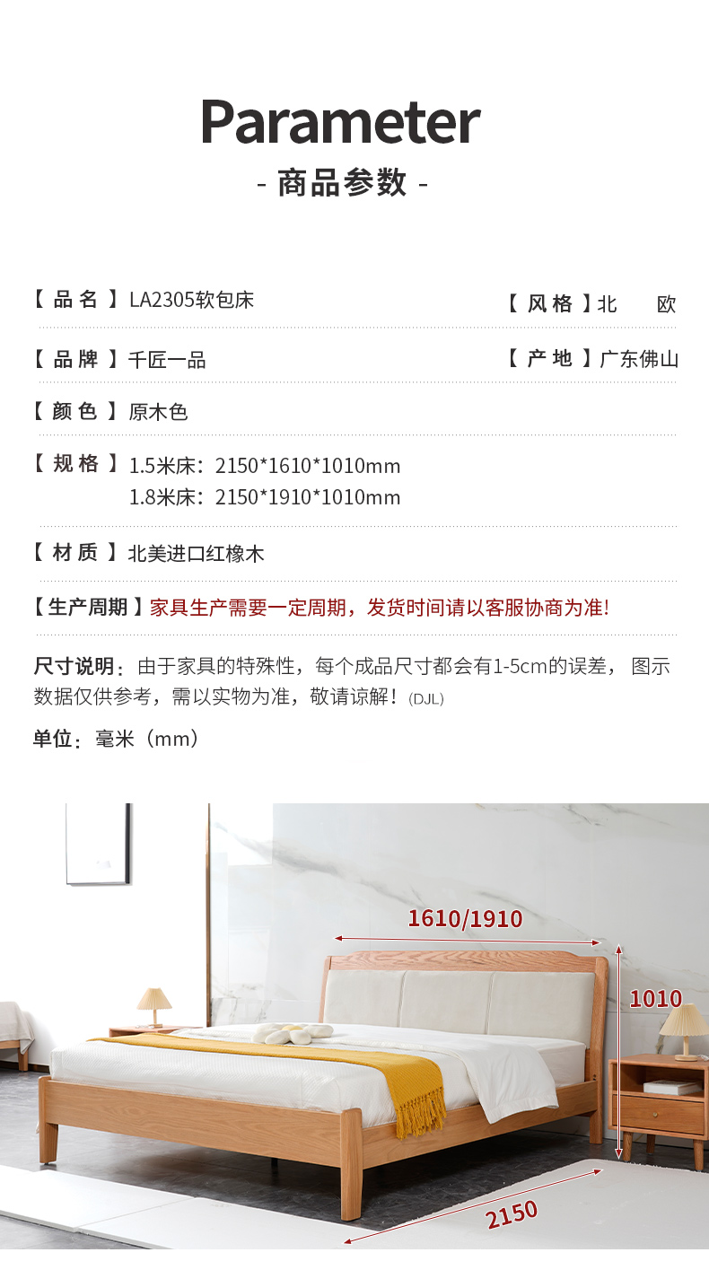 商品名称:千匠一品 北欧风格 北美进口红橡木 时尚大气软包床LA2305-J