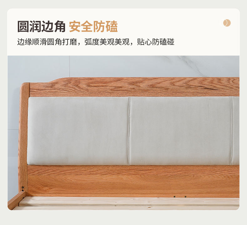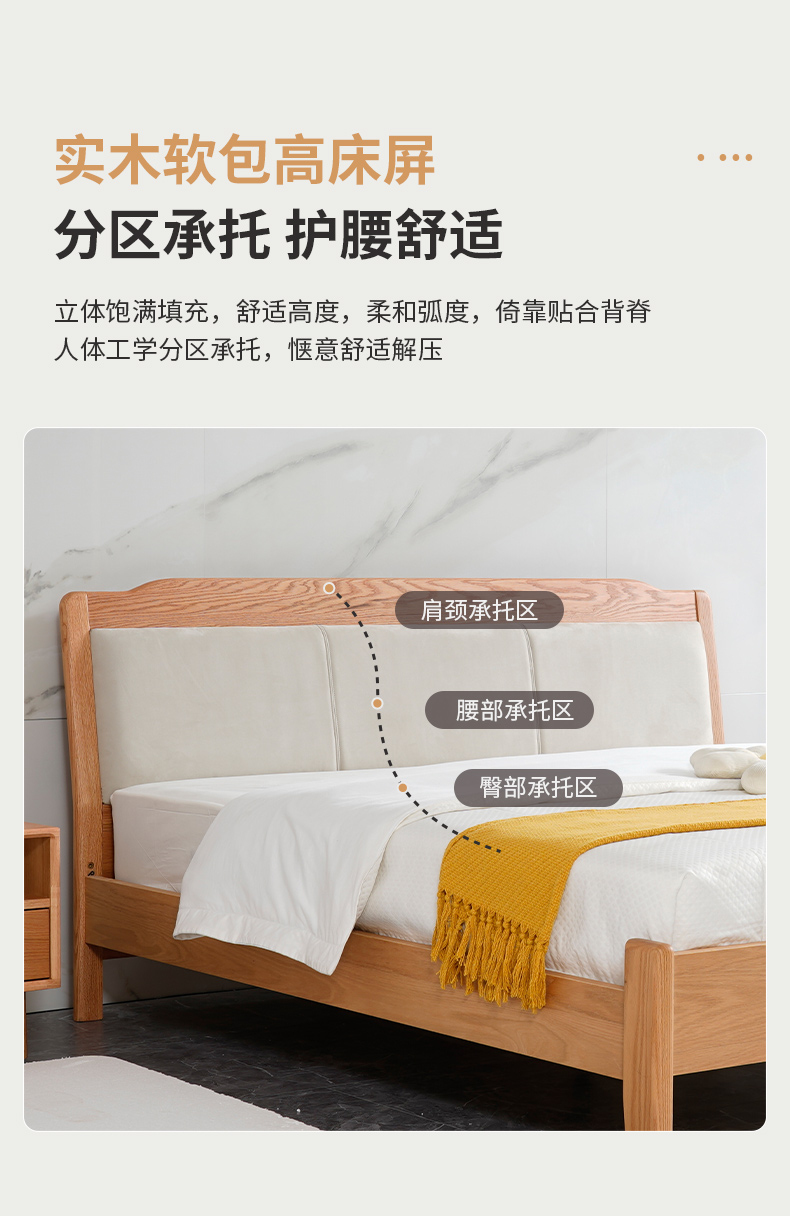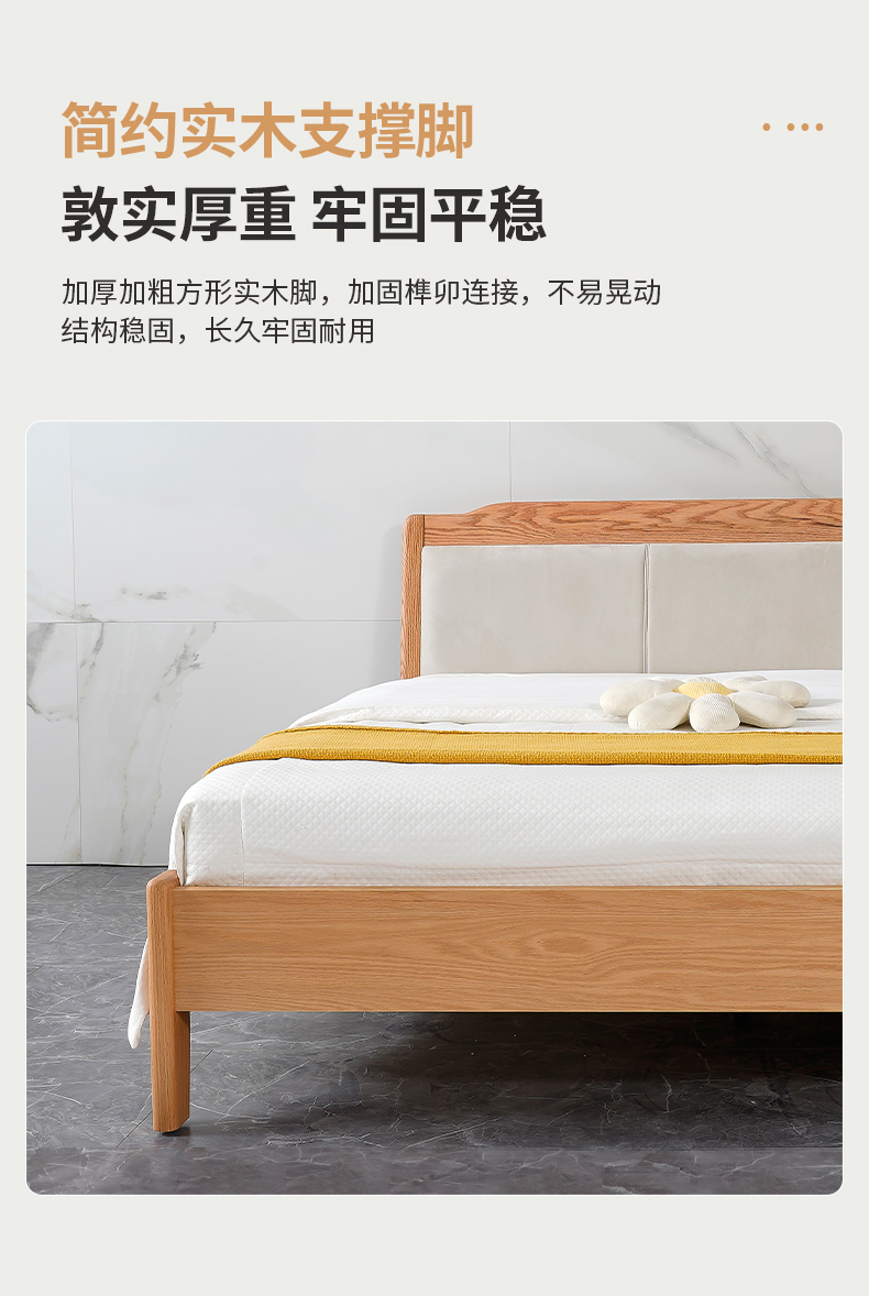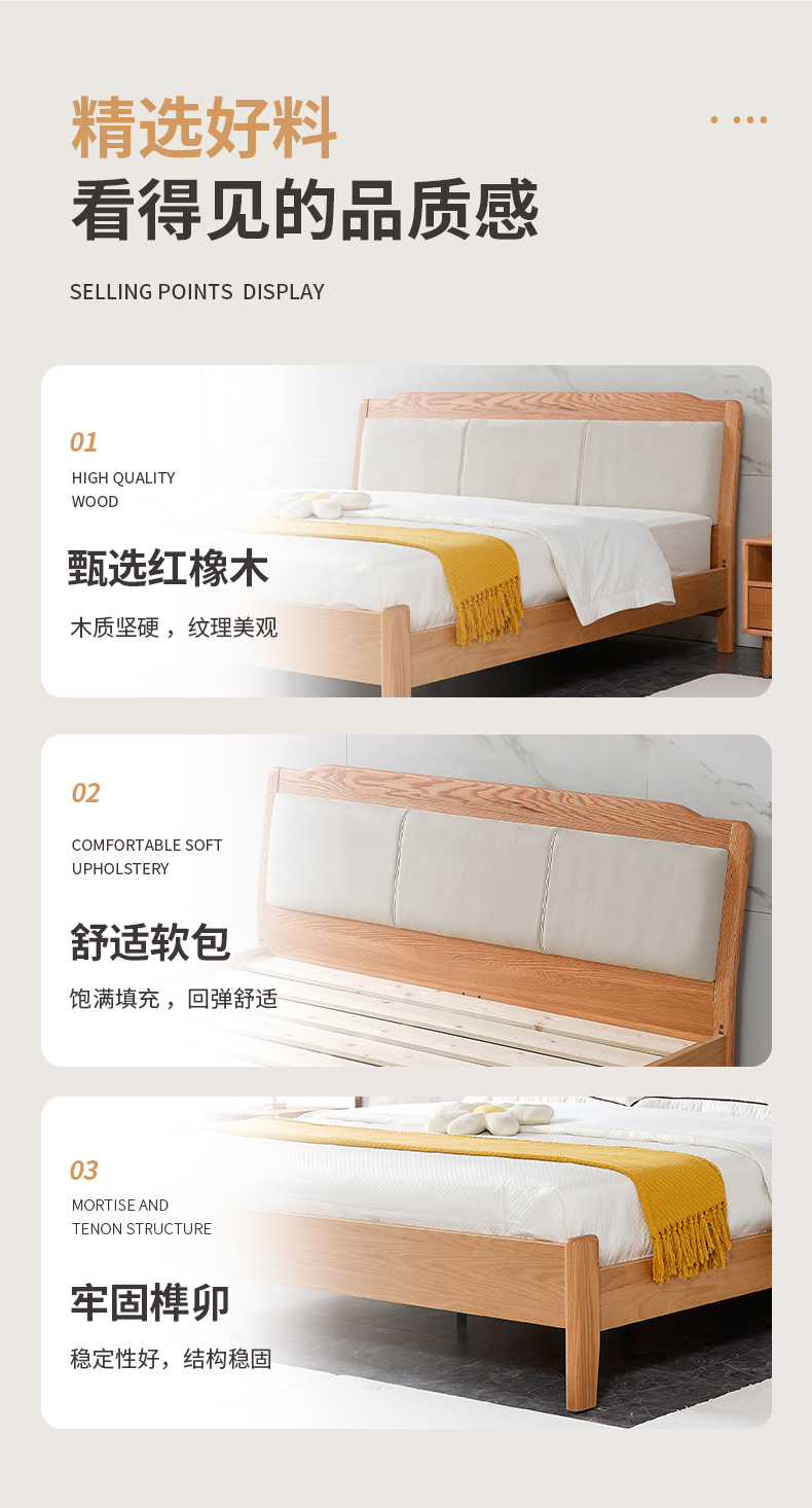 商品名称:千匠一品 北欧风格 北美进口红橡木 时尚大气软包床LA2305-J
