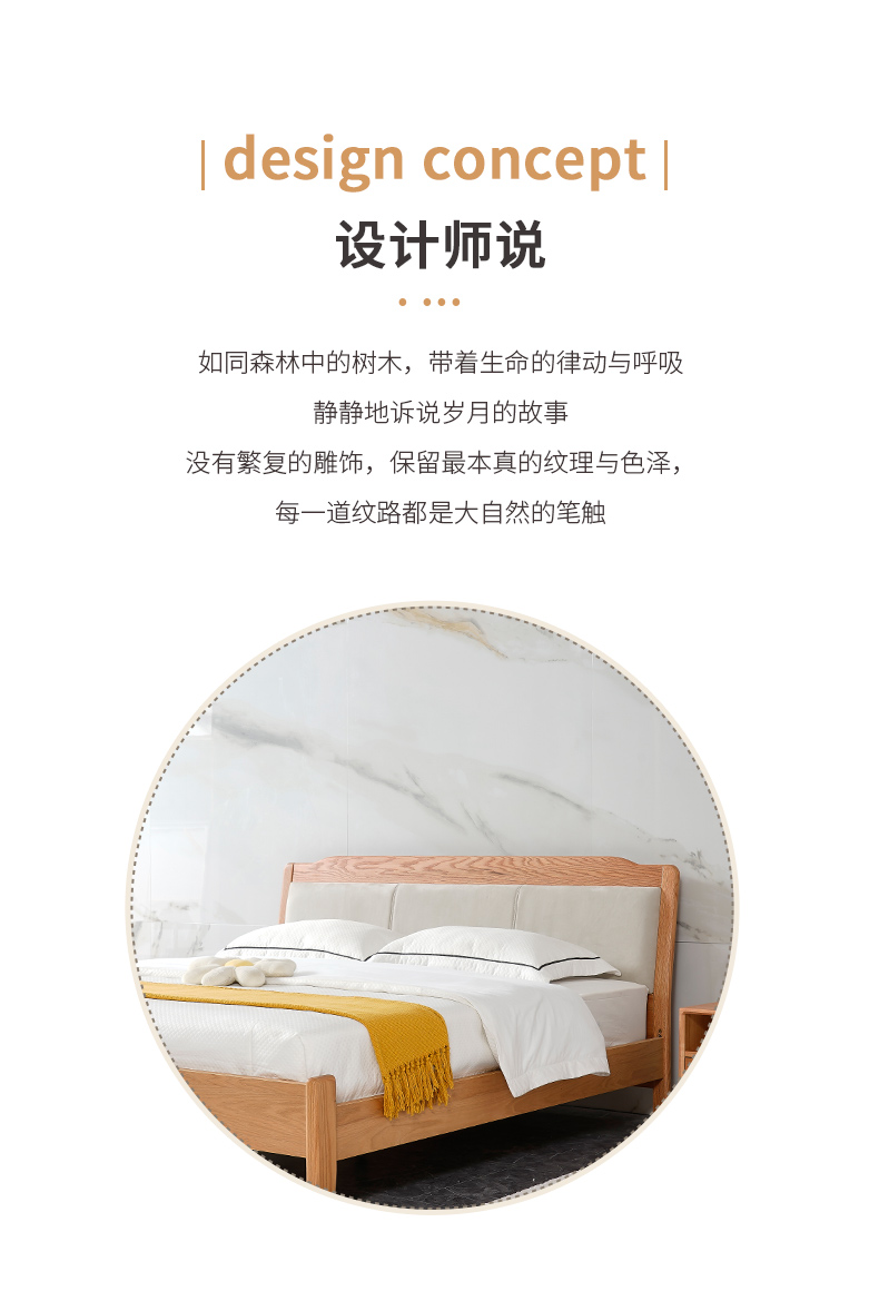 千匠一品 北欧风格 进口红橡木 时尚大气床LA2306-J