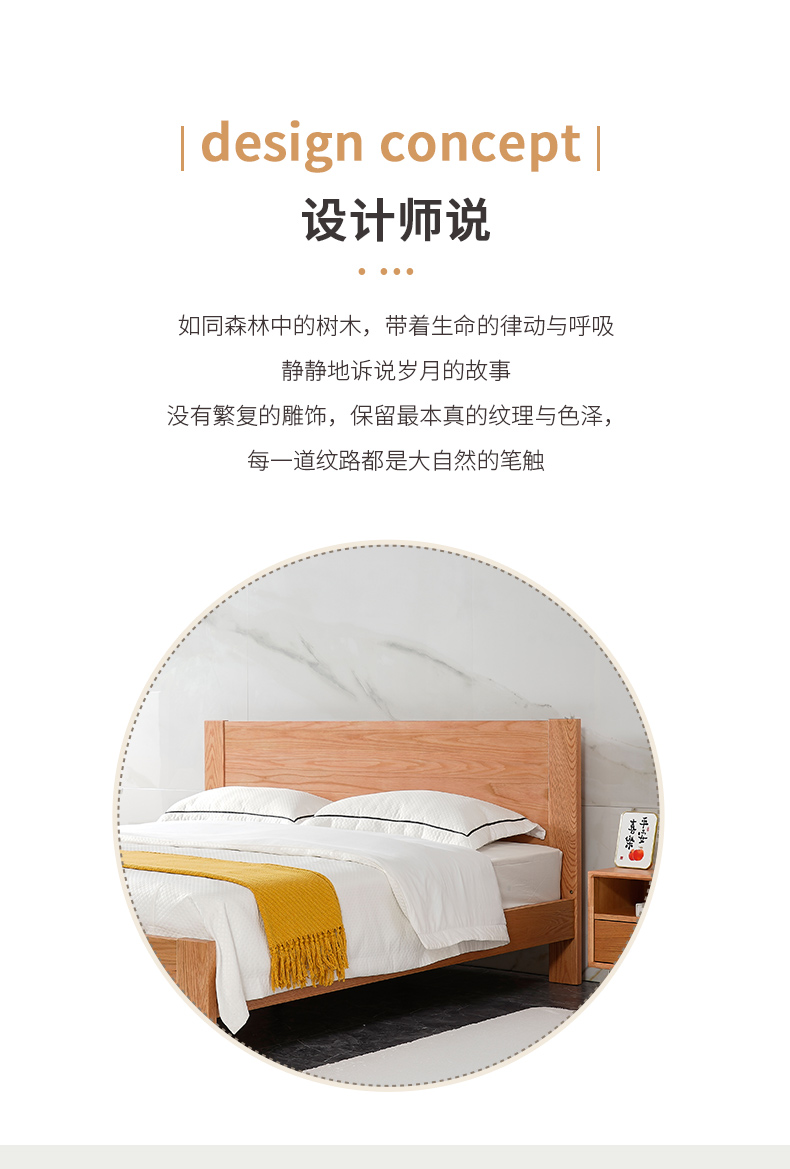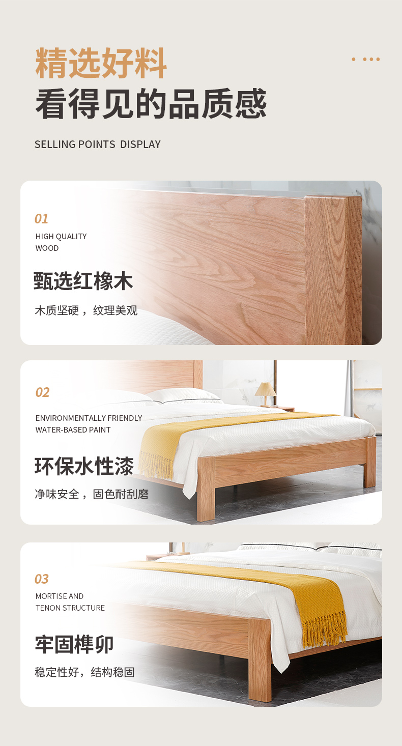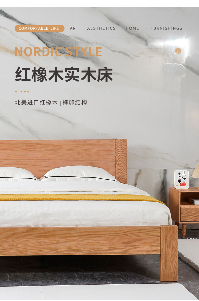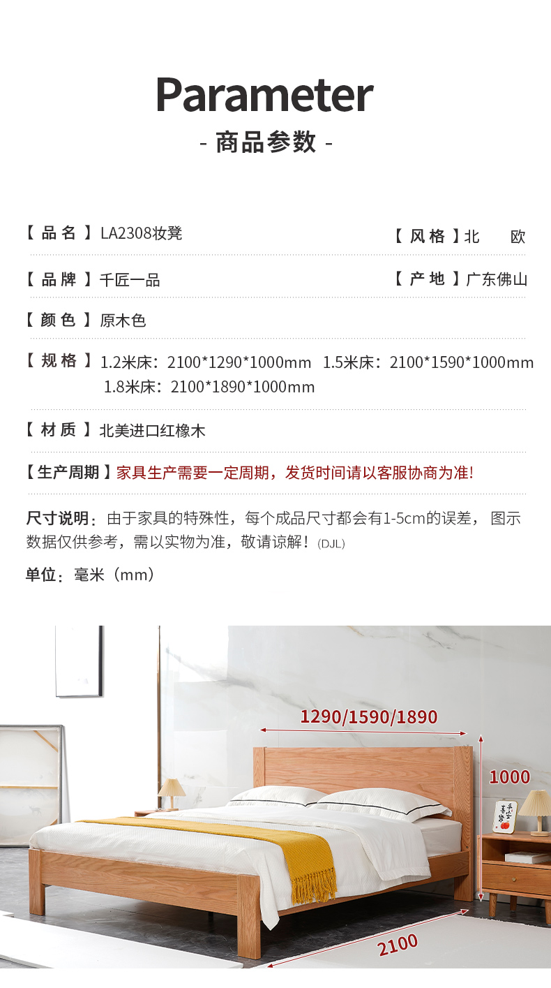 商品名称:千匠一品 北欧风格 北美进口红橡木 时尚大气床LA2308-J