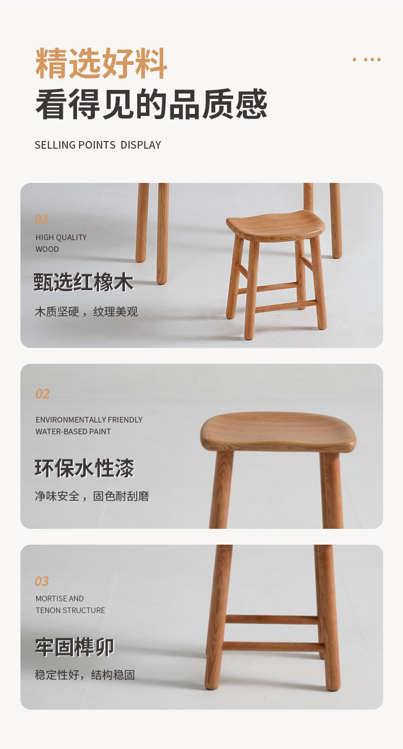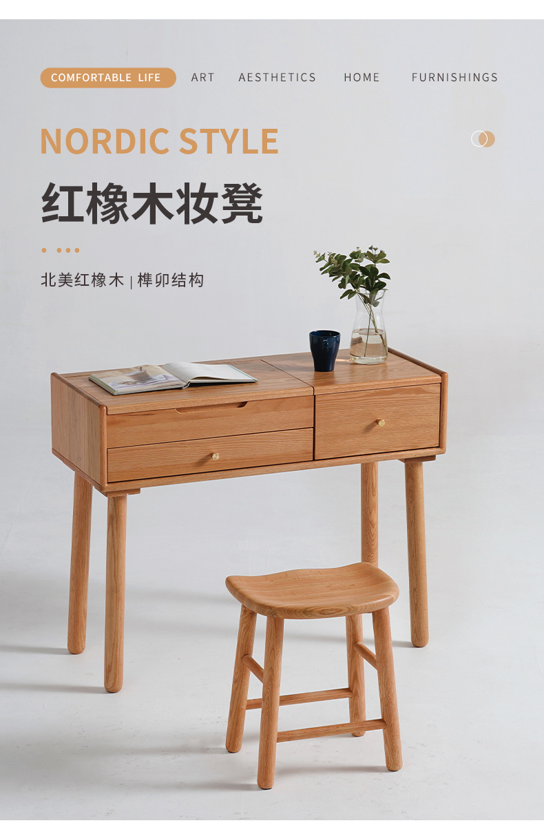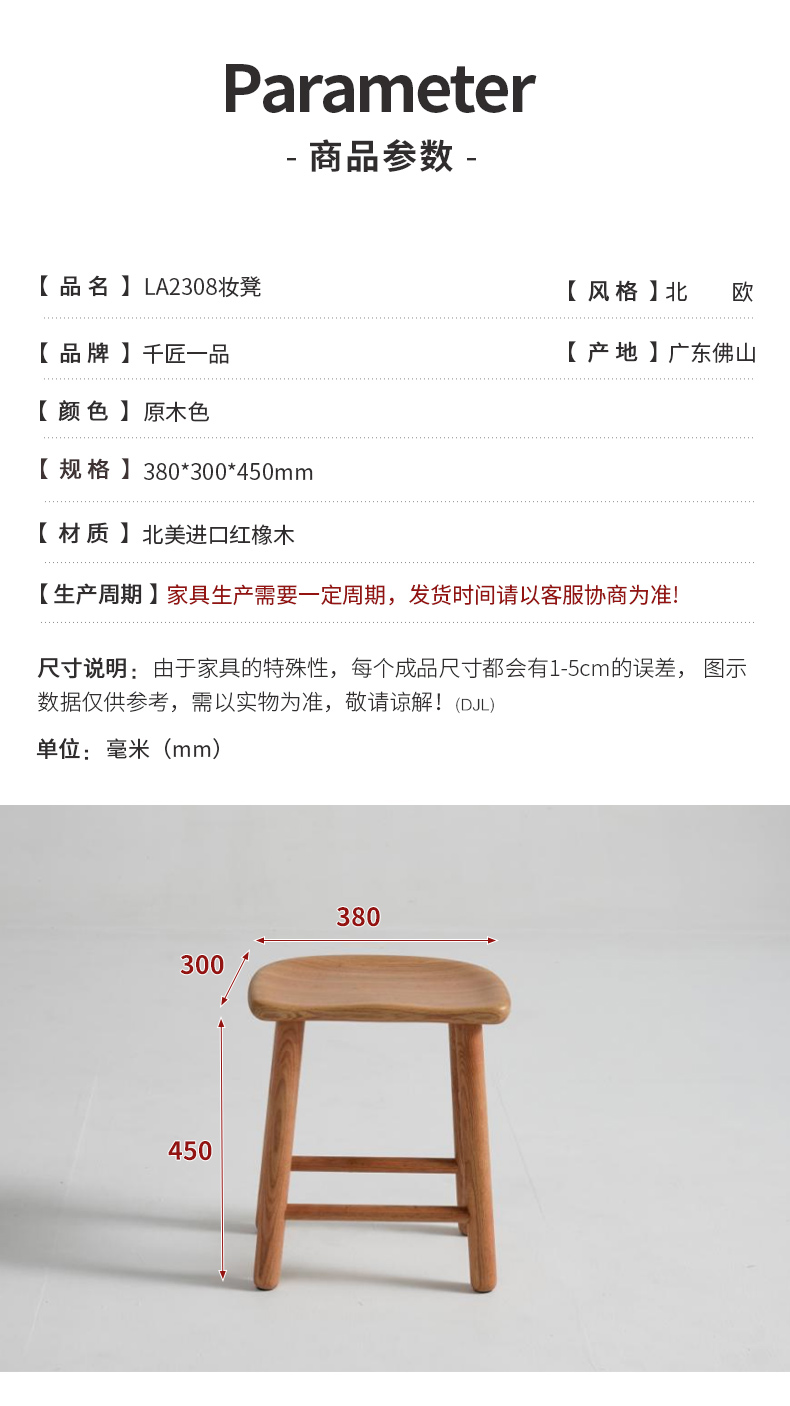 商品名称:千匠一品 北欧风格 北美进口红橡木 时尚大气妆凳LA2308-J