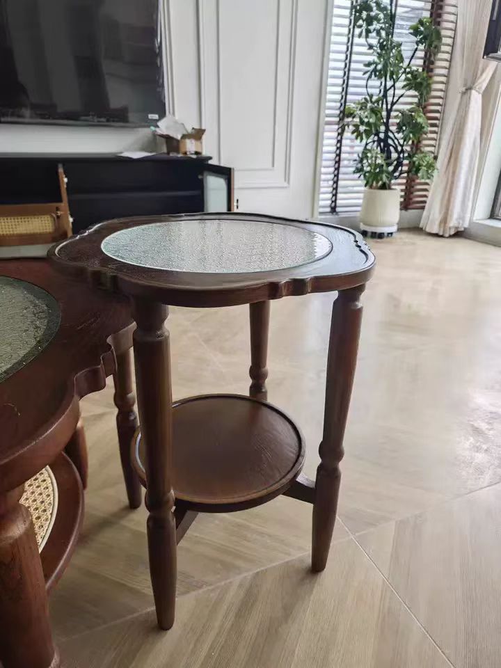 商品名称:千匠一品 中古侘寂风格 海棠玻璃+主材进口北美白蜡木+多层实木板 时尚大气小花朵茶几2024-D03-3A-J