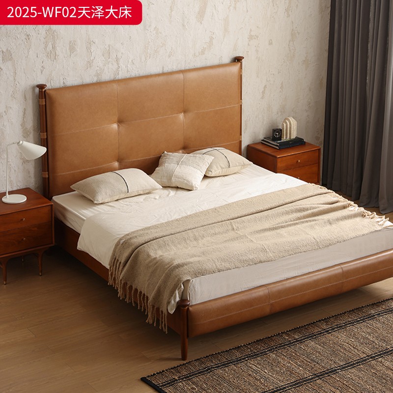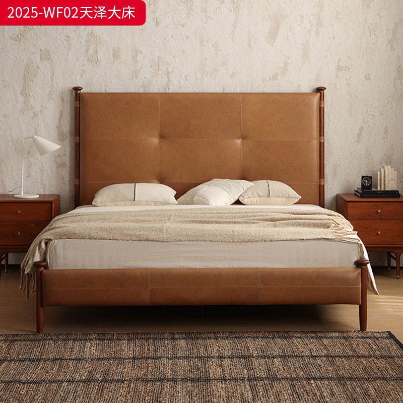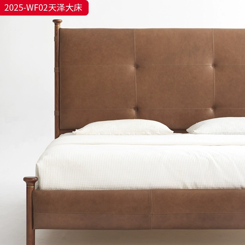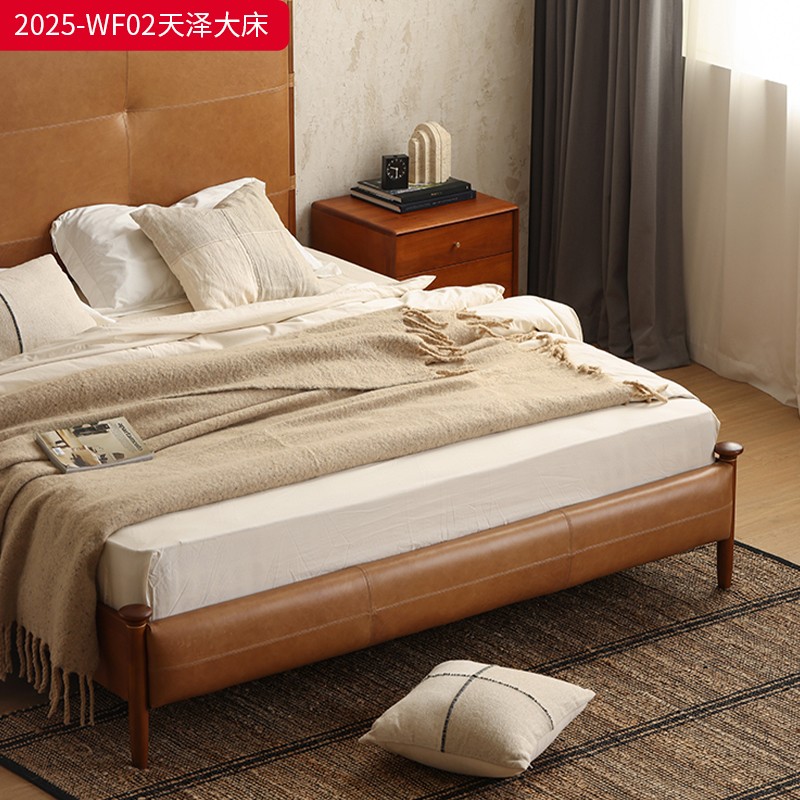 千匠一品 中古风格 油蜡全皮+白蜡木框架+实木夹板+松木床板 时尚大气床2025-WF02-L