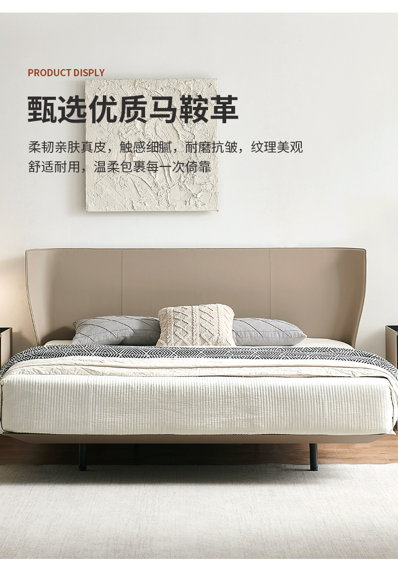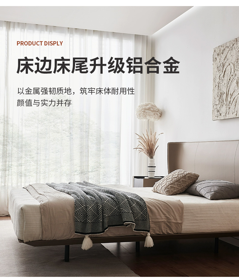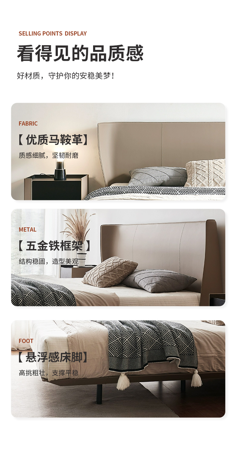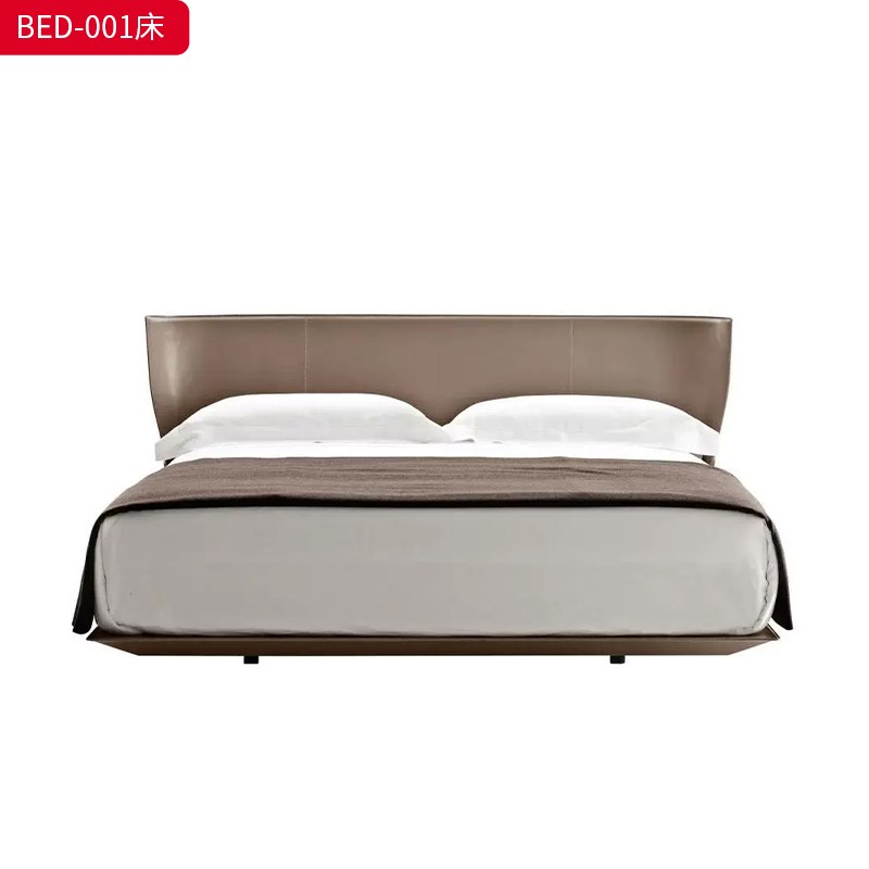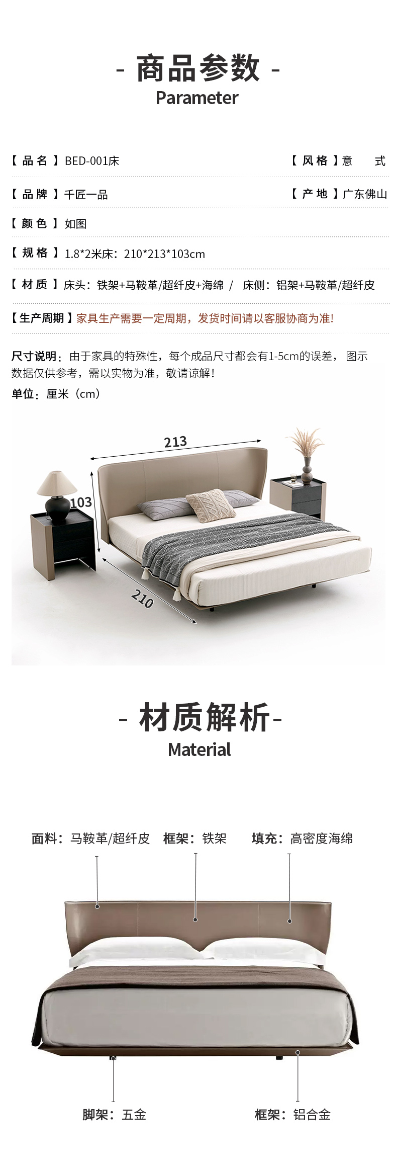 千匠一品 意式风格 床头为铁架+马鞍革或超纤皮+海绵 床侧为铝架+马鞍革或超纤皮 时尚大气床BED-001-J